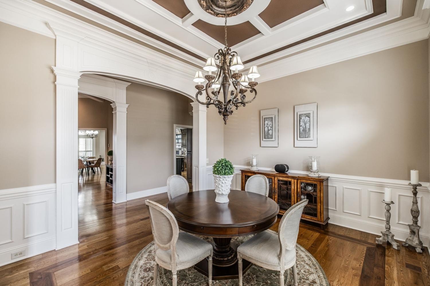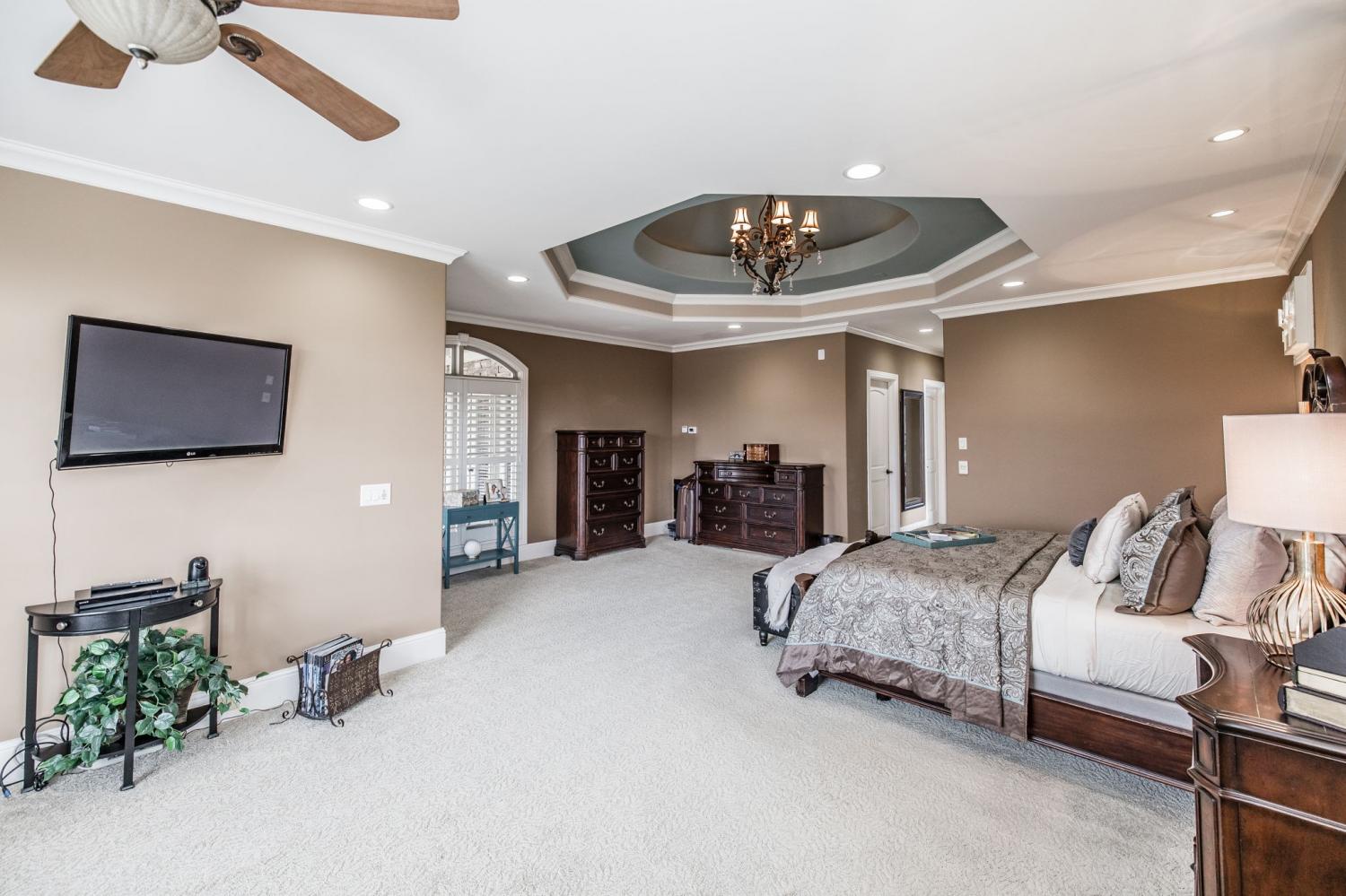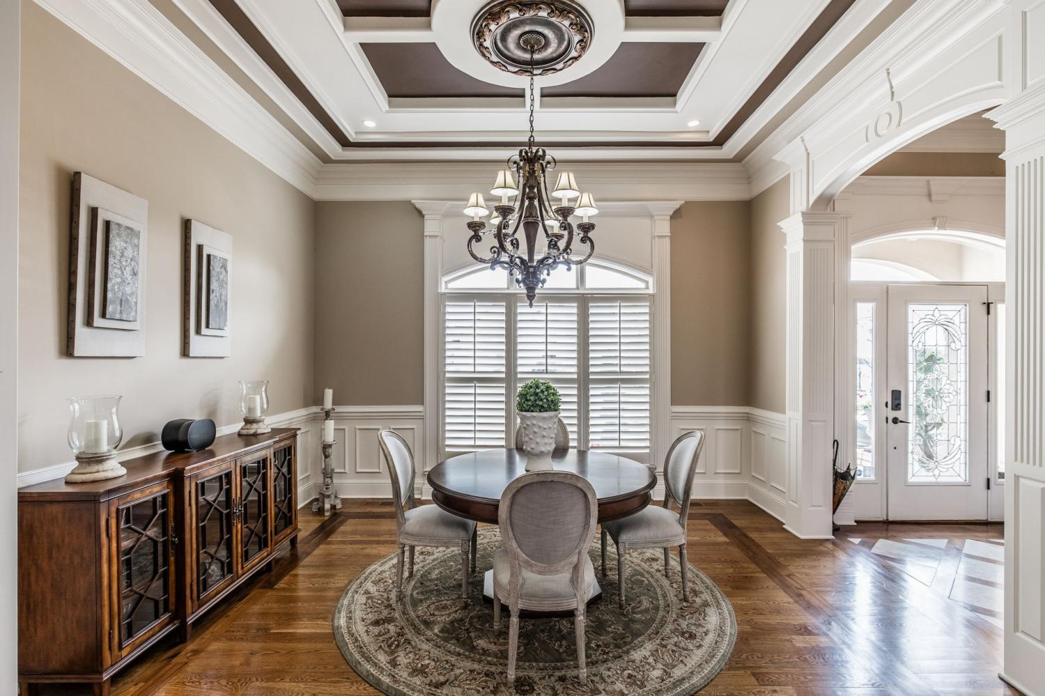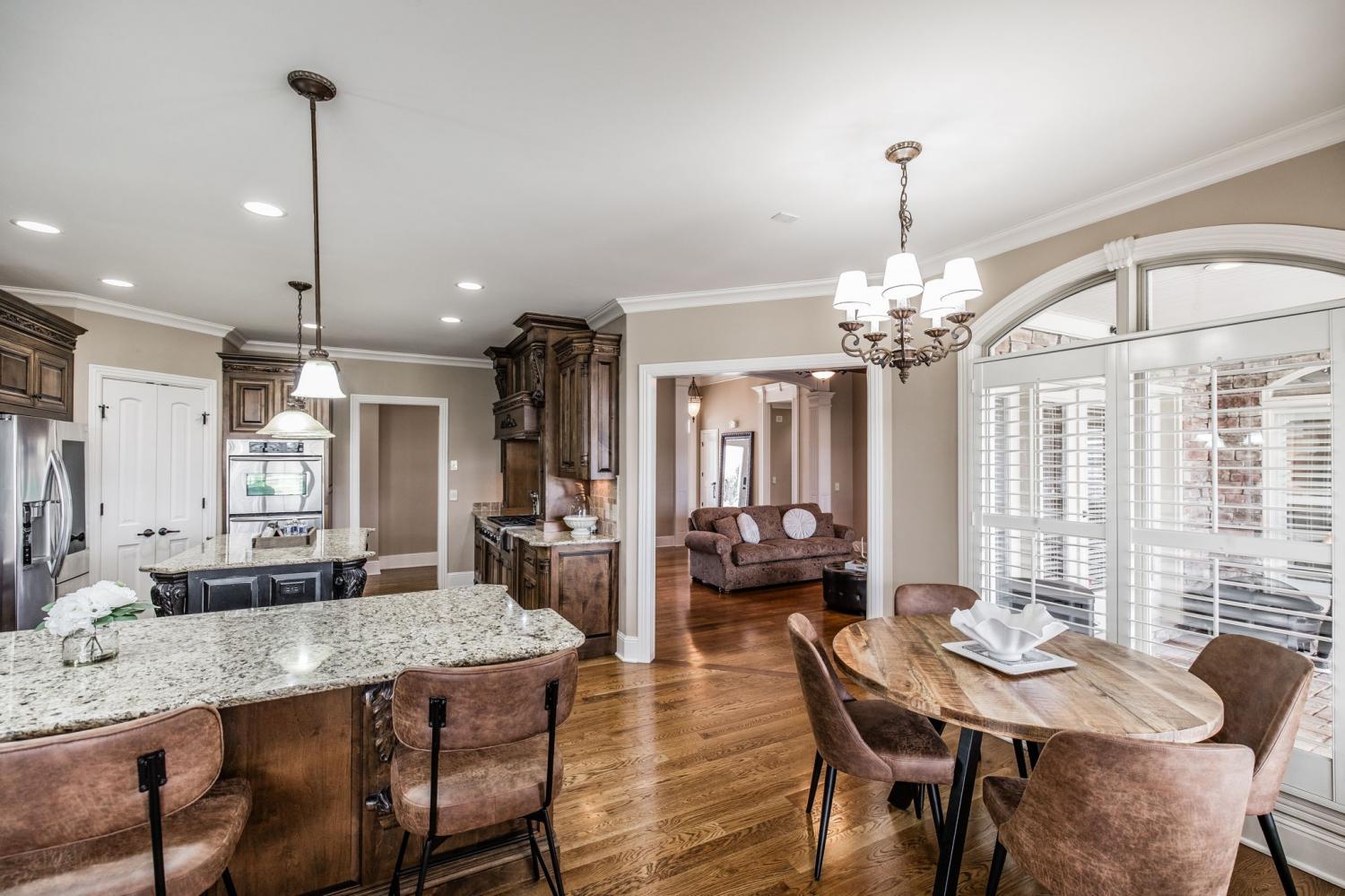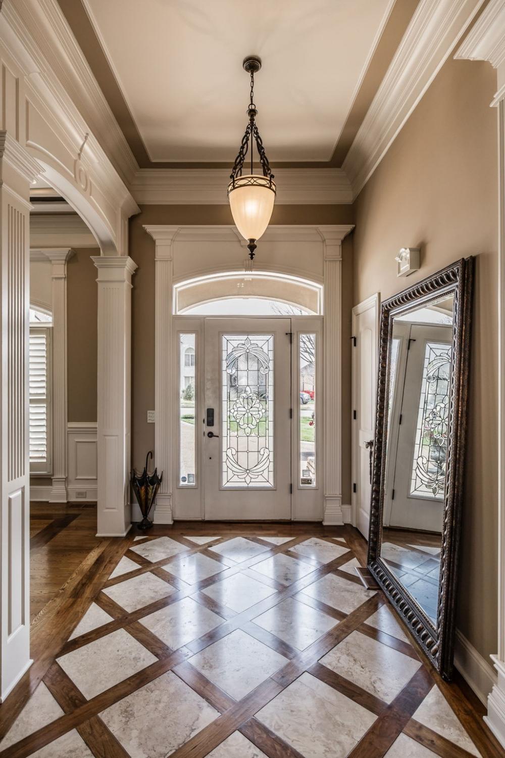 Located on the 5th hole of Tennessee Grasslands Golf and Country Club, this well-appointed home offers a combination of elegant living and scenic surroundings, with lake views located just across the street. The exterior features custom brick, stone, and stucco, complemented by mature landscaping that enhances the home’s curb appeal. A quarter-circle driveway and corner lot provide ample parking and an inviting approach. Inside, the home showcases detailed craftsmanship with custom moldings, decorative ceiling designs, and architectural features throughout. The floor plan includes five spacious bedrooms, each with a private full bathroom, along with two half baths on the main level. Two recreation rooms provide flexible space for entertaining or everyday living. One includes a retractable movie screen, projector, and wet bar. The second recreation room can serve as a game room, fitness area, or additional living space. Recent updates include a new roof (June 2023), two HVAC units (2024), and a tankless water heater installed in December 2024. The home also features a central lighting control system and humidity control system. The kitchen is equipped with a 6-burner Dacor range, double stainless steel ovens, microwave, ice maker, and custom cabinetry. A large range hood with built-in pull-out spice racks adds functionality and storage. The kitchen connects to adjacent living areas and a formal dining room, creating a practical layout for daily living and entertaining. *HOA dues do not include golf club membership.