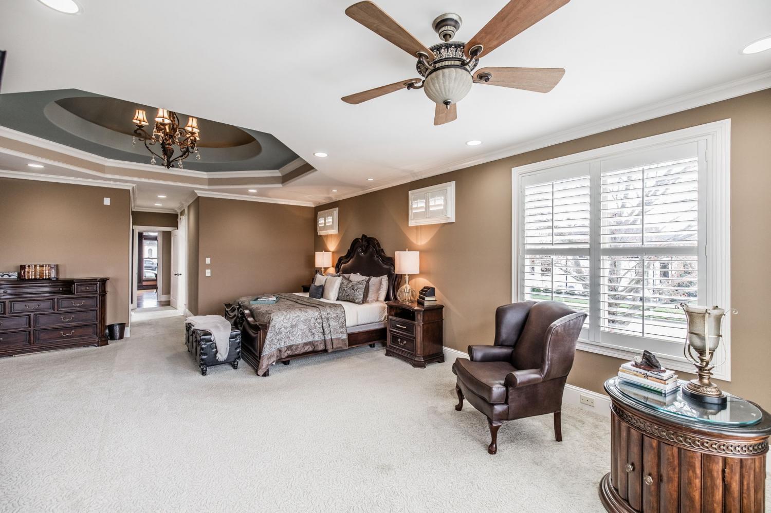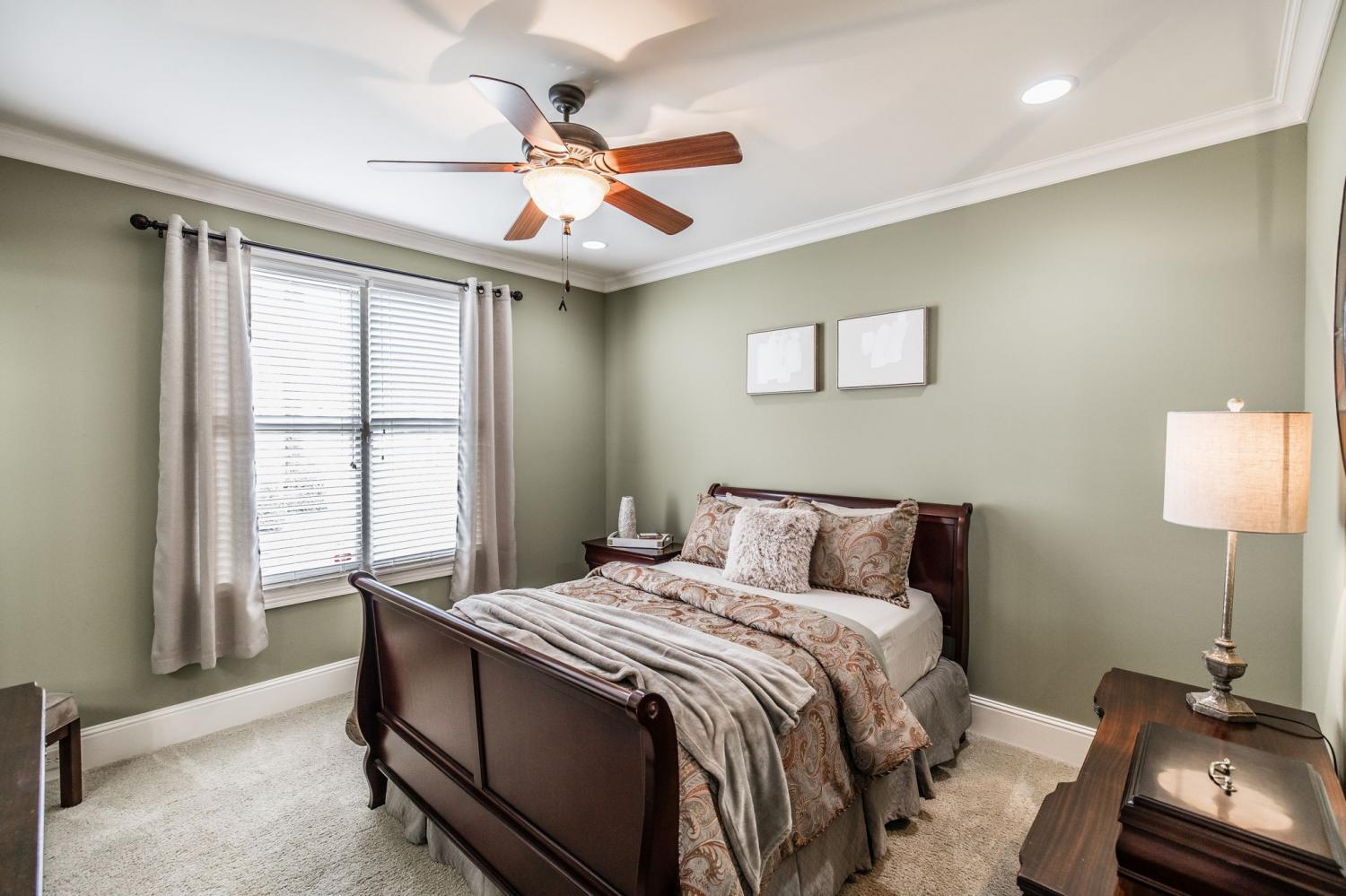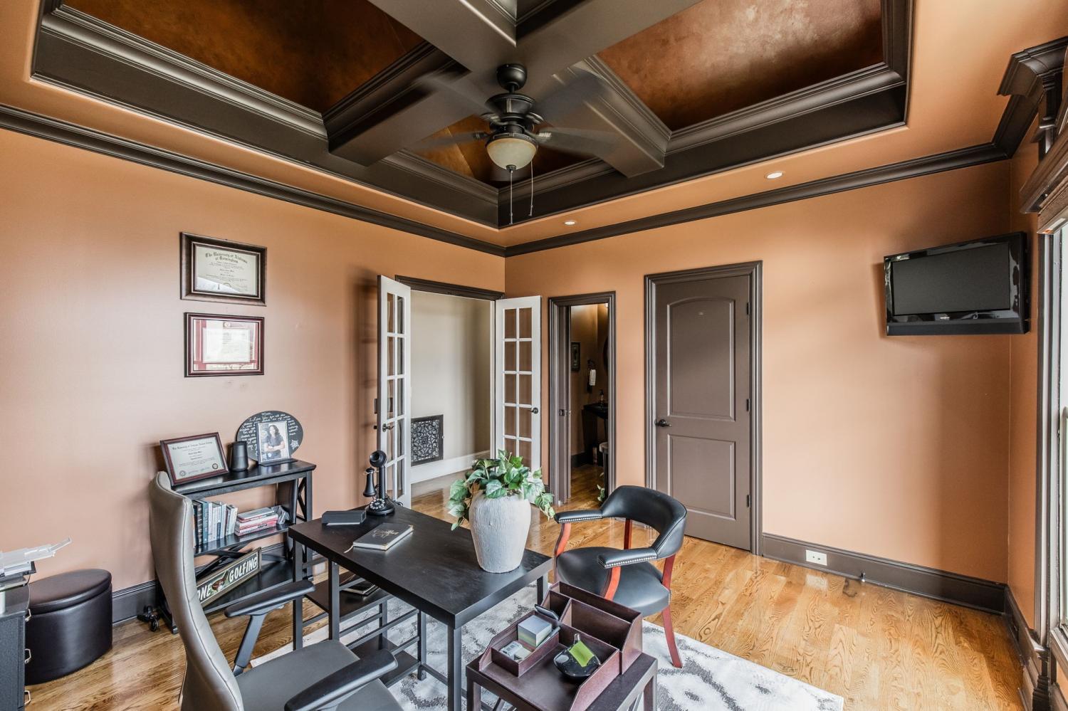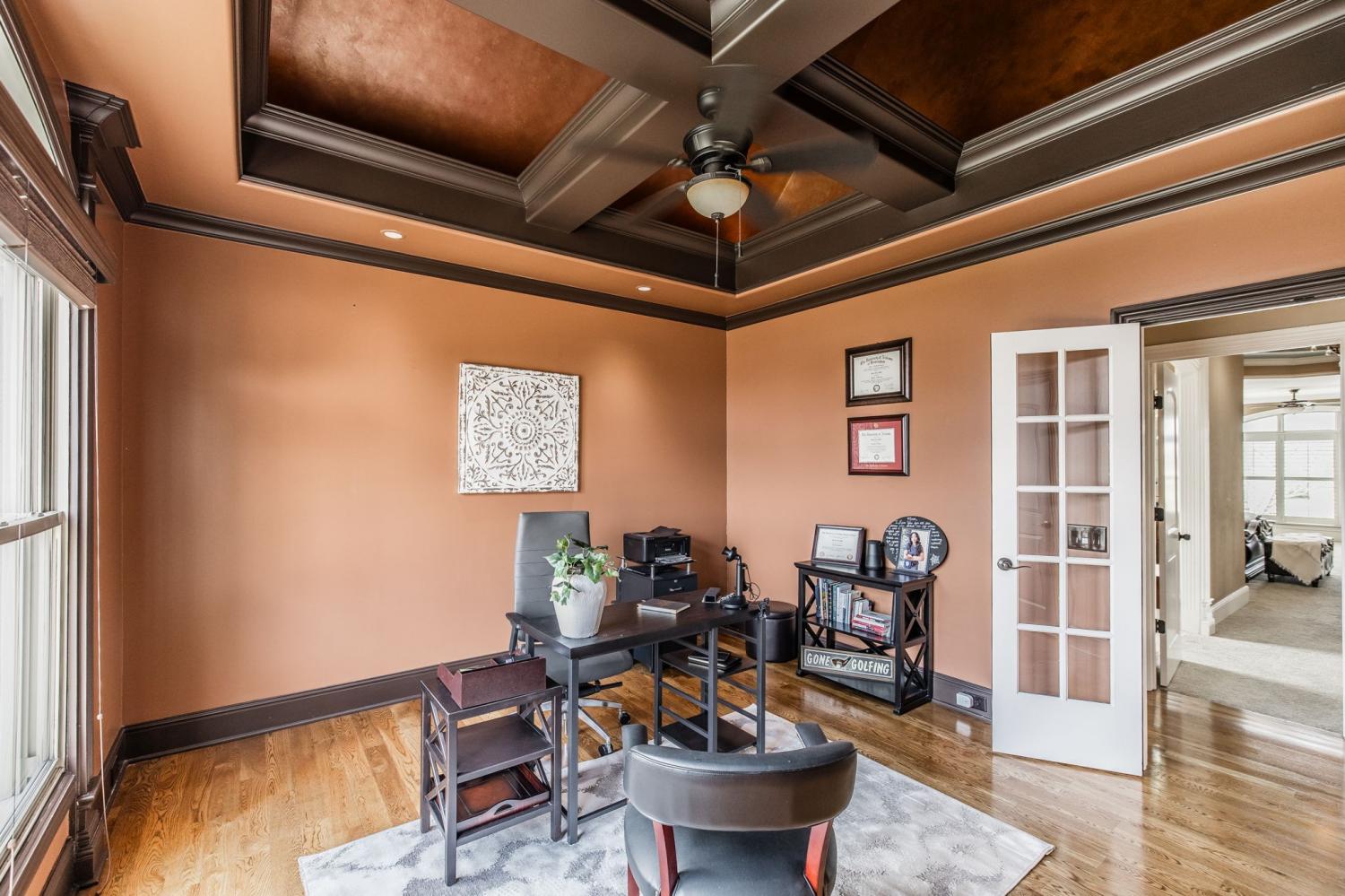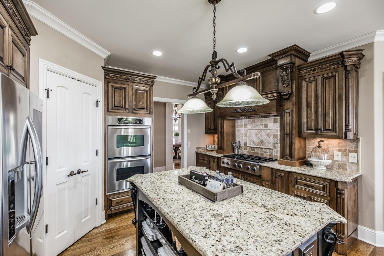 Located on the 5th hole of Tennessee Grasslands Golf and Country Club, this well-appointed home offers a combination of elegant living and scenic surroundings, with lake views located just across the street. The exterior features custom brick, stone, and stucco, complemented by mature landscaping that enhances the home’s curb appeal. A quarter-circle driveway and corner lot provide ample parking and an inviting approach. Inside, the home showcases detailed craftsmanship with custom moldings, decorative ceiling designs, and architectural features throughout. The floor plan includes five spacious bedrooms, each with a private full bathroom, along with two half baths on the main level. Two recreation rooms provide flexible space for entertaining or everyday living. One includes a retractable movie screen, projector, and wet bar. The second recreation room can serve as a game room, fitness area, or additional living space. Recent updates include a new roof (June 2023), two HVAC units (2024), and a tankless water heater installed in December 2024. The home also features a central lighting control system and humidity control system. The kitchen is equipped with a 6-burner Dacor range, double stainless steel ovens, microwave, ice maker, and custom cabinetry. A large range hood with built-in pull-out spice racks adds functionality and storage. The kitchen connects to adjacent living areas and a formal dining room, creating a practical layout for daily living and entertaining. *HOA dues do not include golf club membership.