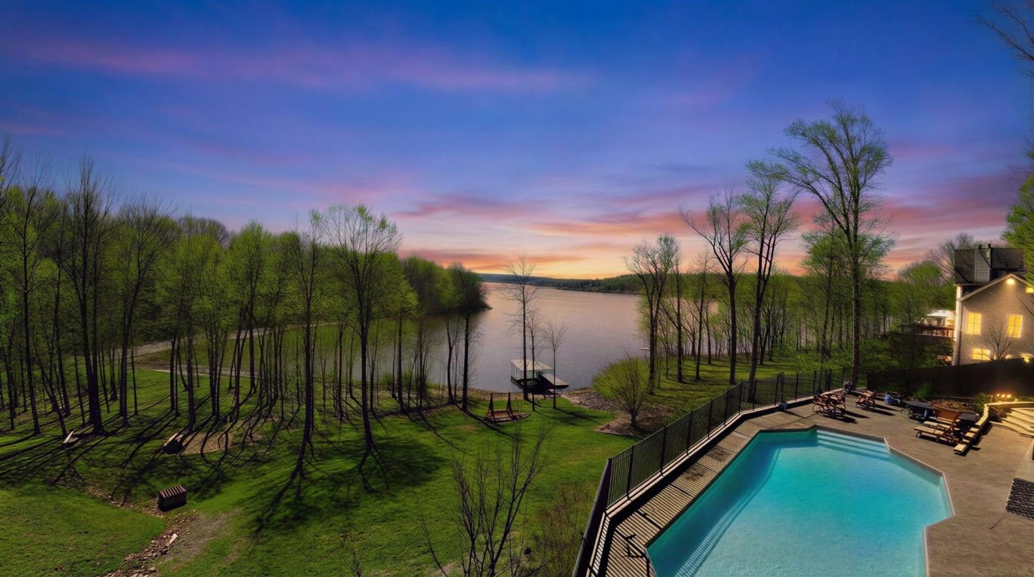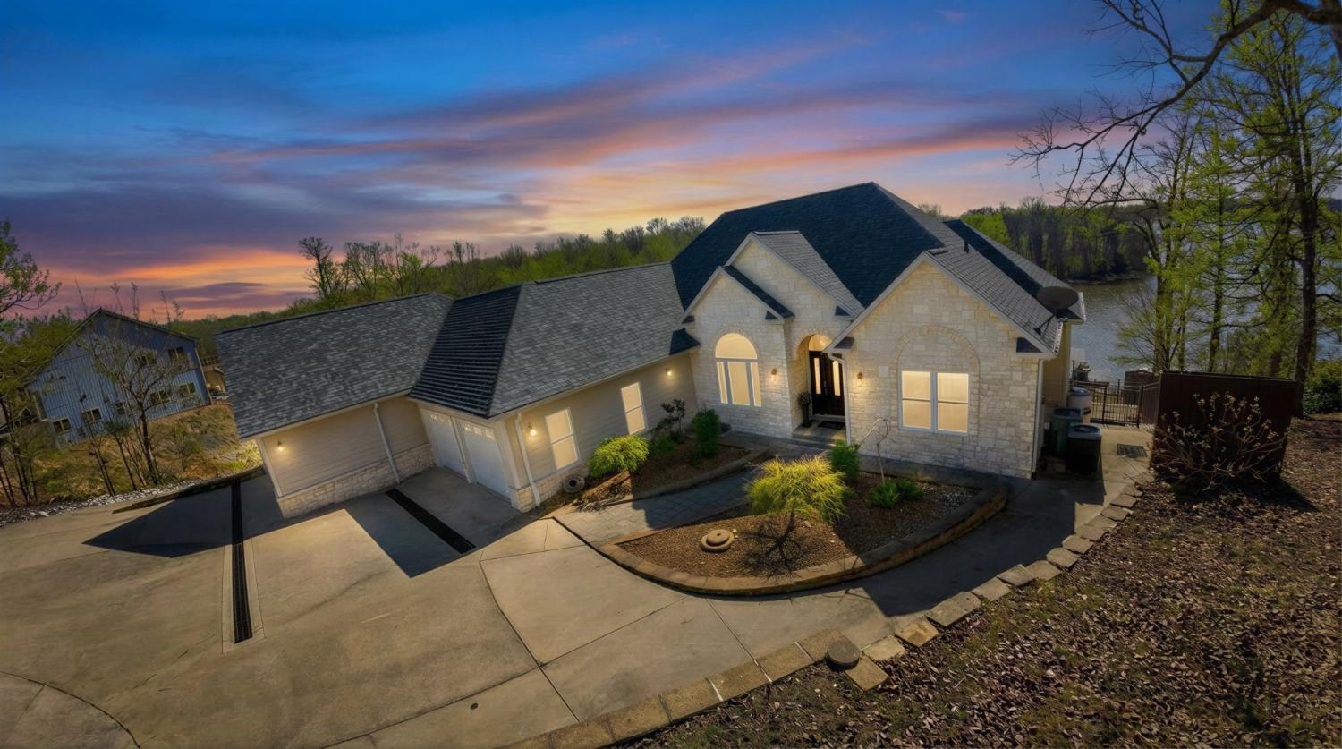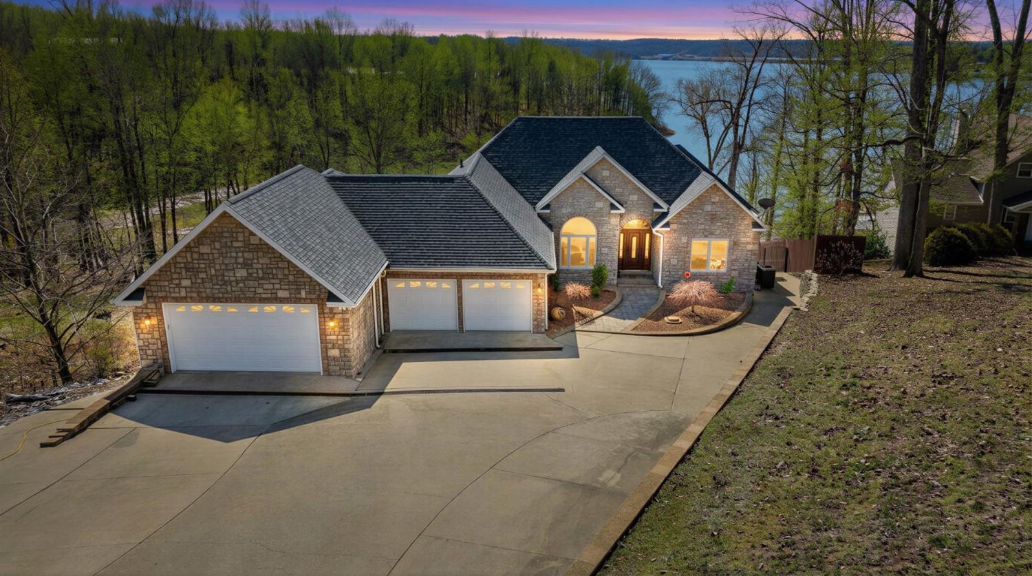 Welcome to 153 Chelsea, a luxurious waterfront oasis nestled on a 1.02-acre lot with commanding views of Lake Barkley. Built in 2008, this impressive 3,404 square foot residence boasts 5 spacious bedrooms, including 4 with lake vistas, and 3.5 baths, offering an idyllic retreat for family gatherings or vacation rentals. As you step into this stately stone exterior home, the grandeur of its open spaces will captivate you, starting with a separate dining room that sets the stage for memorable meals. Two full kitchens, one on each level, ensure effortless entertaining and the convenience of catering to guests or large family feasts. The home's design maximizes lake and pool views, allowing natural light to flood the interiors and providing an ever-present connection to the tranquil outdoors. Outside, the expansive property invites relaxation and recreation. A large lakeside pool surrounded by a spacious patio provides the perfect spot for sun-soaked days, while multiple decks on the upper level offer serene spots for morning coffees or evening cocktails. The private covered dock promises endless water activities and a secure berth for your vessel. Lake enthusiasts will appreciate the 4 car garage, and the concrete driveway adds a touch of elegance to this already majestic home. With all these amenities, 153 Chelsea is not just a home; it's a waterfront lifestyle that caters to the most discerning buyers seeking a private, picturesque escape for their family or an investment opportunity in a sought-after location. Experience lakeside living at its finest, where every day feels like a vacation.