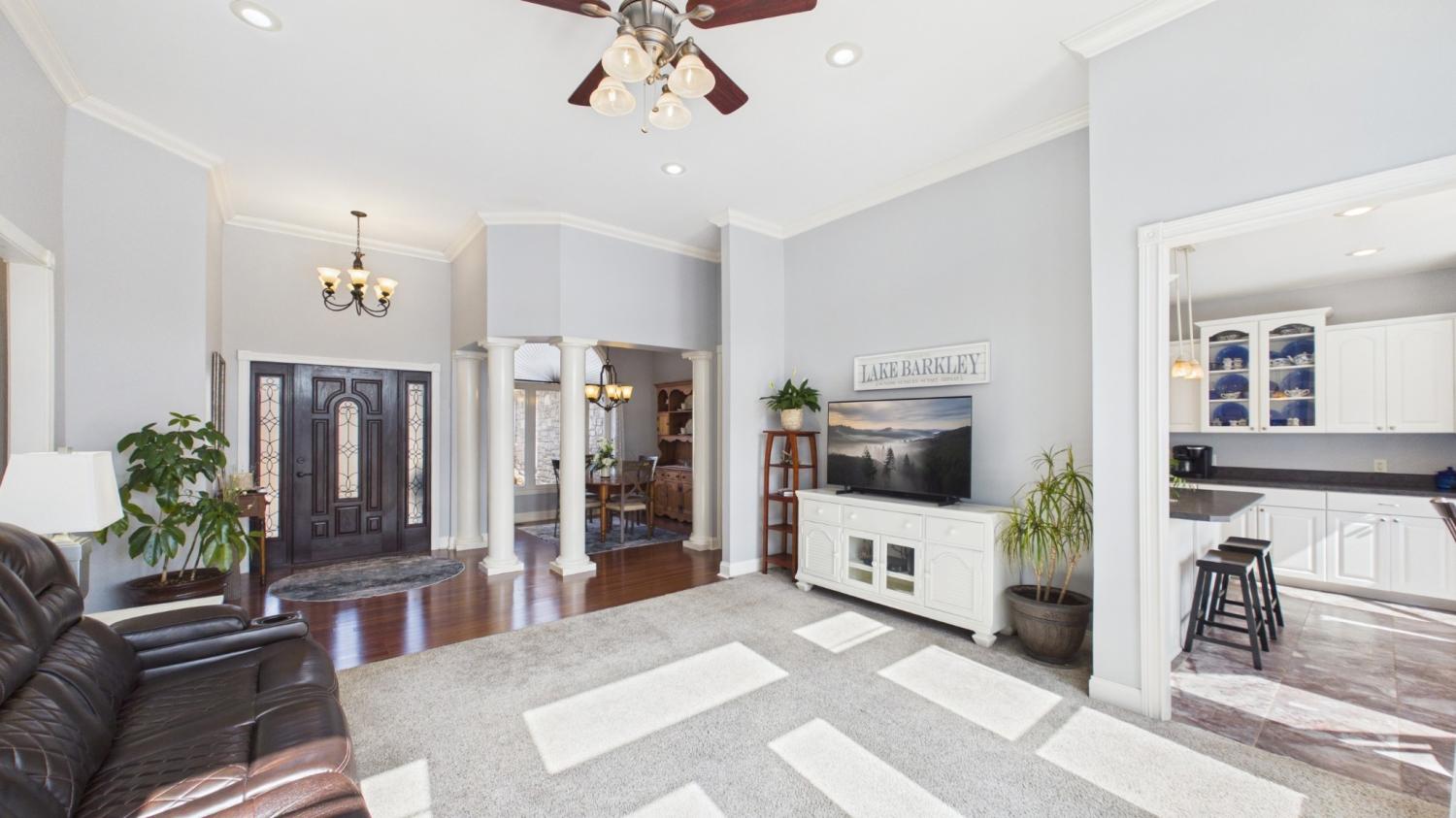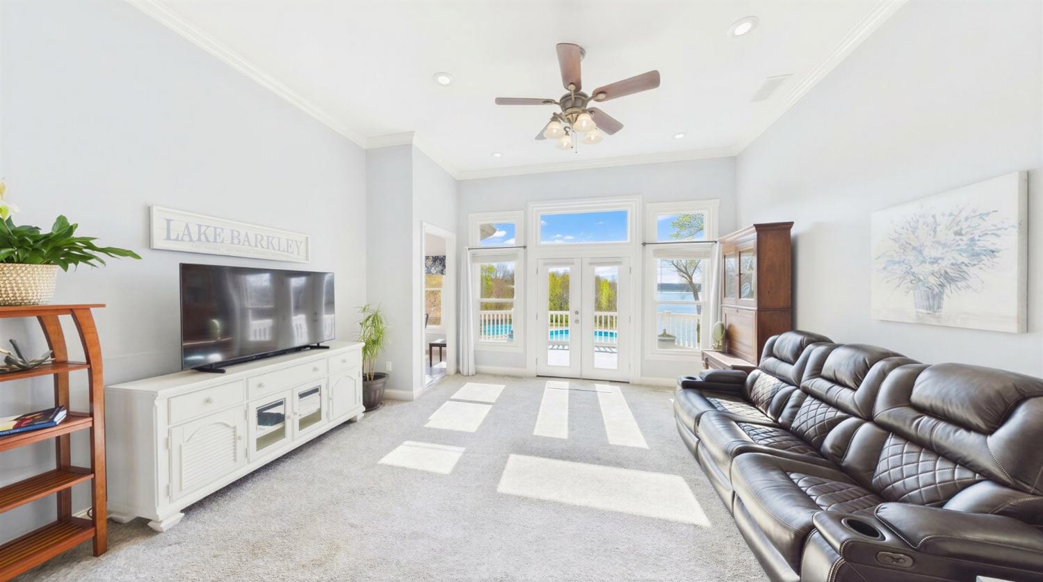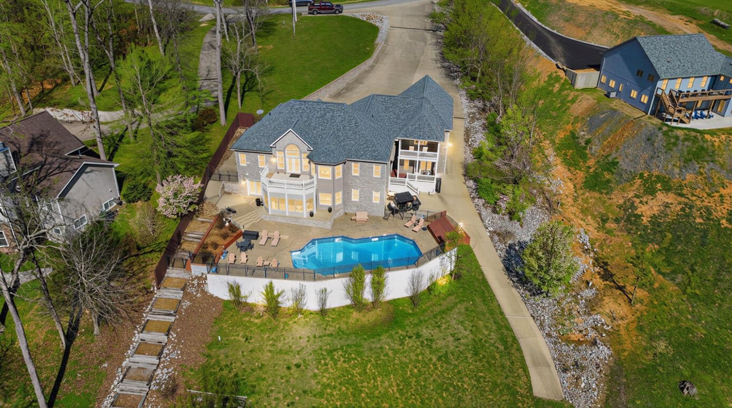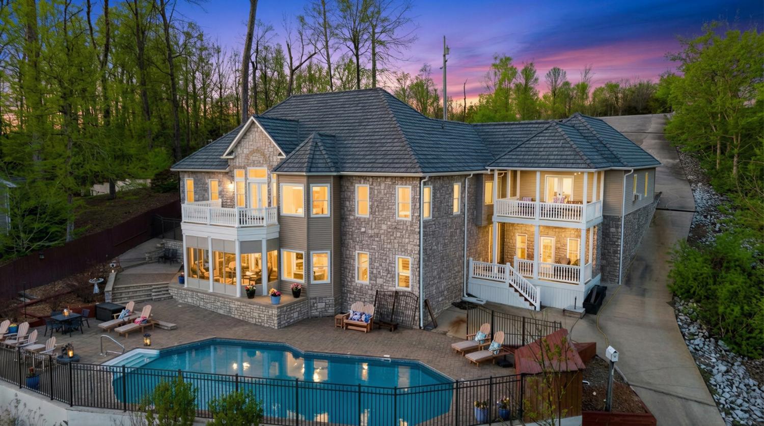 Welcome to 153 Chelsea, a luxurious waterfront oasis nestled on a 1.02-acre lot with commanding views of Lake Barkley. Built in 2008, this impressive 3,404 square foot residence boasts 5 spacious bedrooms, including 4 with lake vistas, and 3.5 baths, offering an idyllic retreat for family gatherings or vacation rentals. As you step into this stately stone exterior home, the grandeur of its open spaces will captivate you, starting with a separate dining room that sets the stage for memorable meals. Two full kitchens, one on each level, ensure effortless entertaining and the convenience of catering to guests or large family feasts. The home's design maximizes lake and pool views, allowing natural light to flood the interiors and providing an ever-present connection to the tranquil outdoors. Outside, the expansive property invites relaxation and recreation. A large lakeside pool surrounded by a spacious patio provides the perfect spot for sun-soaked days, while multiple decks on the upper level offer serene spots for morning coffees or evening cocktails. The private covered dock promises endless water activities and a secure berth for your vessel. Lake enthusiasts will appreciate the 4 car garage, and the concrete driveway adds a touch of elegance to this already majestic home. With all these amenities, 153 Chelsea is not just a home; it's a waterfront lifestyle that caters to the most discerning buyers seeking a private, picturesque escape for their family or an investment opportunity in a sought-after location. Experience lakeside living at its finest, where every day feels like a vacation.
