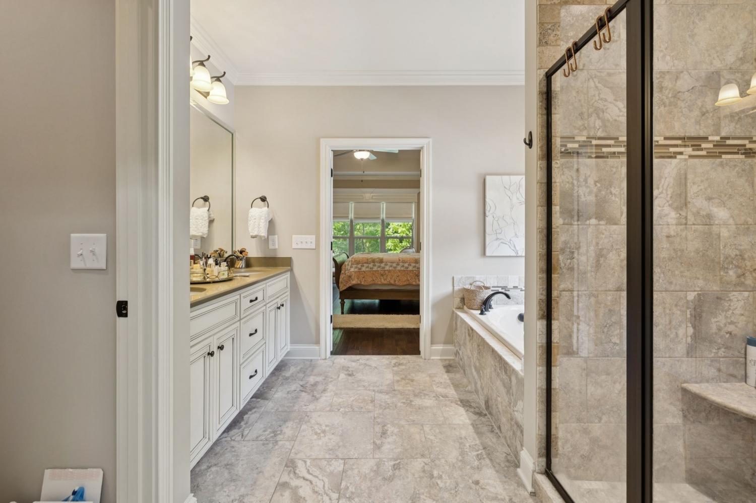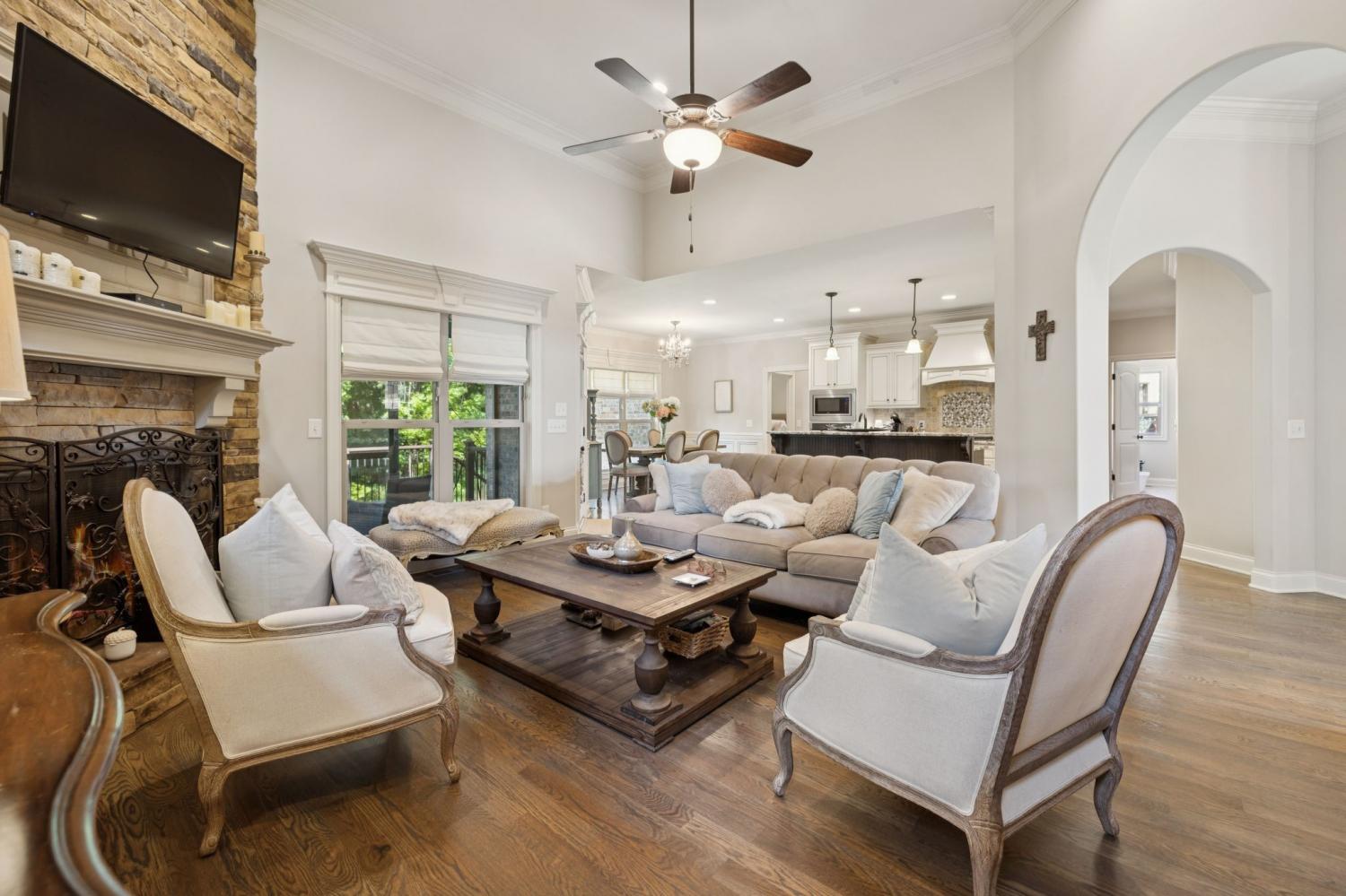 Tucked away on a quiet cul de sac and backing to a private wooded setting, this home offers the kind of peace, space, and outdoor living buyers are searching for while still enjoying the convenience of an established neighborhood. Mornings start slower here with coffee on the screened back deck overlooking the trees, and evenings often end gathered around the courtyard style patio with friends and family. Inside, the main level flows effortlessly for both everyday living and entertaining with warm hardwood floors, detailed trim work, and a striking stone gas fireplace that anchors the living space. The kitchen is designed for connection and functionality, featuring granite countertops, tile backsplash, gas cooktop, and under cabinet lighting while opening seamlessly into the living area so no one feels separated from the moment. The main level also offers a peaceful primary suite retreat along with hardwood floors throughout and a stunning spa like bathroom. A flexible second bedroom that works beautifully for a home office. Upstairs, the spacious bonus room creates the perfect setting for movie nights, game days, or a playroom, while two additional bedrooms provide comfortable space for family or visitors. Outdoor living truly shines with a covered and screened deck overlooking the tree lined backyard, a fully irrigated lawn that keeps the property lush and green with minimal effort, and a courtyard style patio just off the garage that creates the perfect space for grilling, gathering, and enjoying Tennessee evenings. Located in a sidewalk lined neighborhood with golf cart access to Five Oaks Country Club and just minutes from shopping, restraunts, parks, lake access, and interstate convenience, this home offers the rare balance of cul de sac privacy, wooded surroundings, and everyday accessibility. Homes offering all of this rarely become available in this area, making this a special opportunity for you to enjoy.