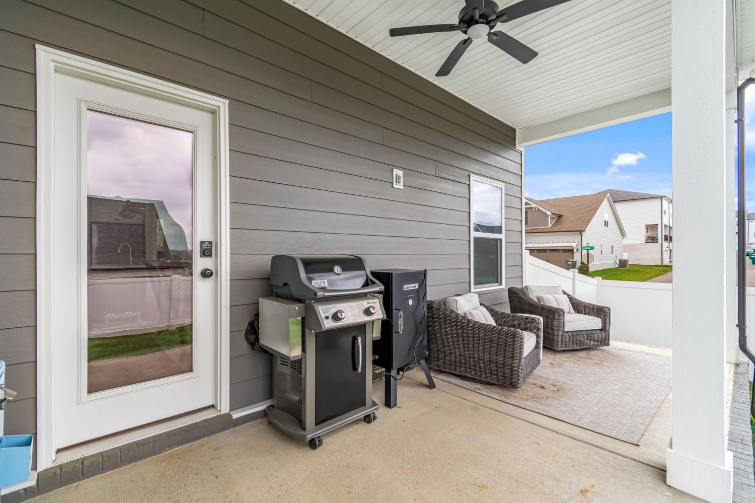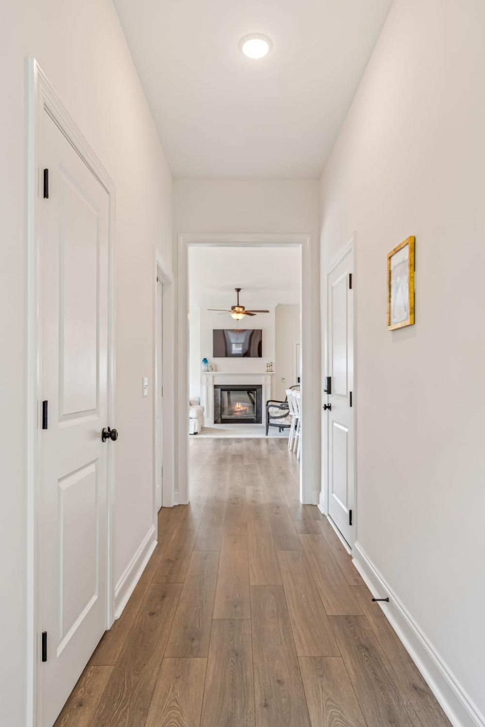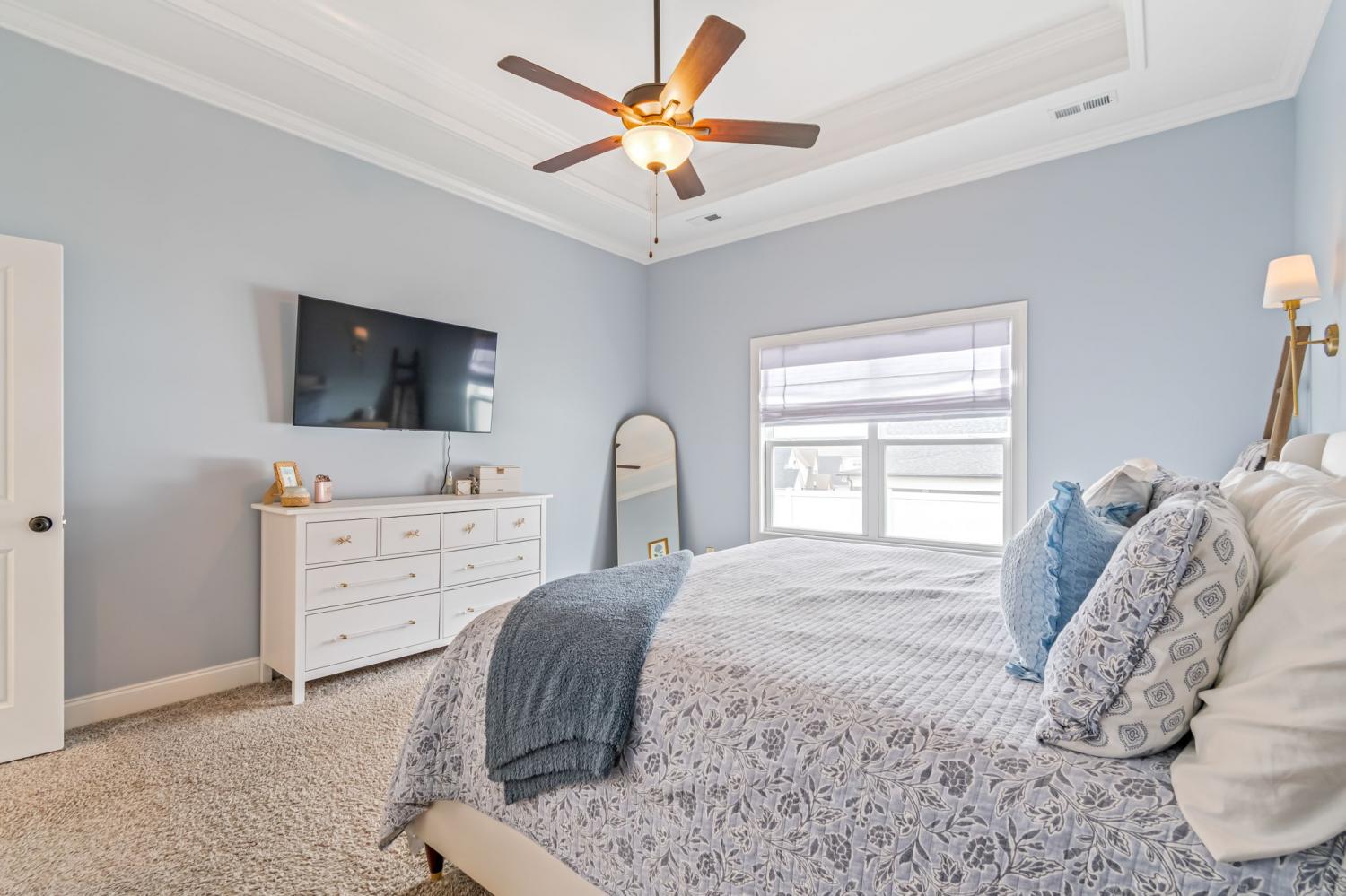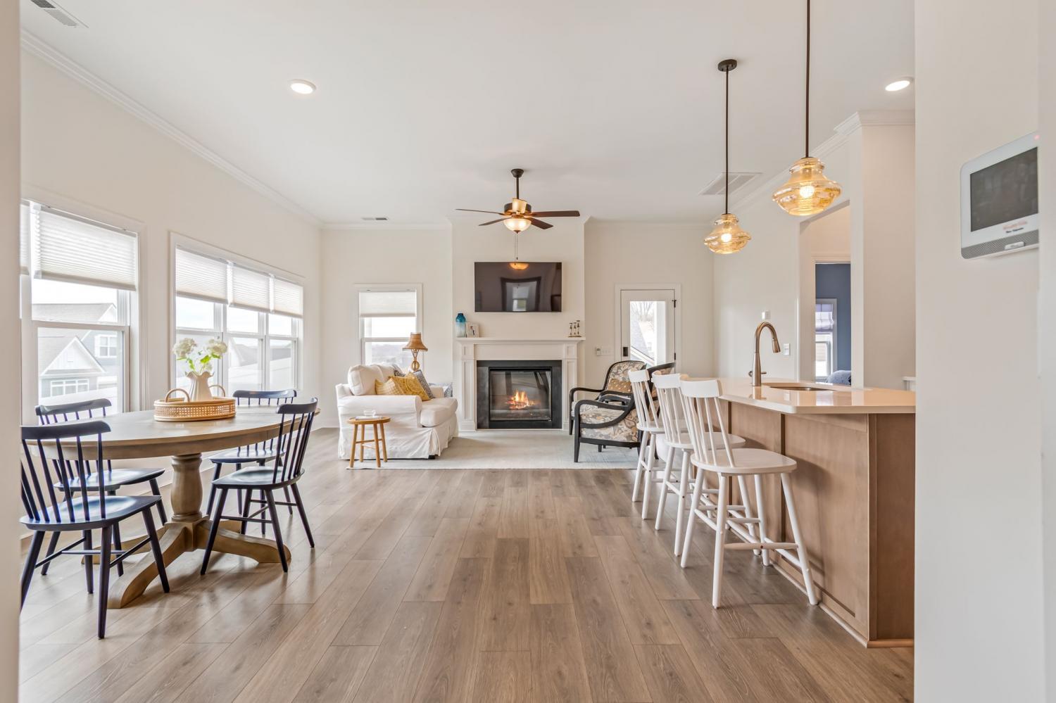 Move-in ready and like-new home in the highly desirable and rapidly growing Brentwood area! This charming open-concept home welcomes you with a soaring entryway and abundant natural light from extra windows that brighten the spacious great room, kitchen and dining areas. Situated on a desirable corner lot, the home features quartz countertops throughout, a Smart Home Hub and Ring doorbell system, concrete driveway and a cozy rocking chair front porch! The main-level primary suite offers an oversized spa-style shower, double vanities and a walk-in closet. Upstairs you will find a large bonus room-perfect for those media-centered gatherings, a generous landing ideal for a study or office space, and two bright bedrooms with walk-in closets. The backyard is fully fenced for privacy and includes a cozy covered patio—perfect for relaxing evenings and sunset views. The HOA covers lawn maintenance along with mulching and fertilizing! Walkable to groceries, shopping, and dining for exceptional everyday convenience.