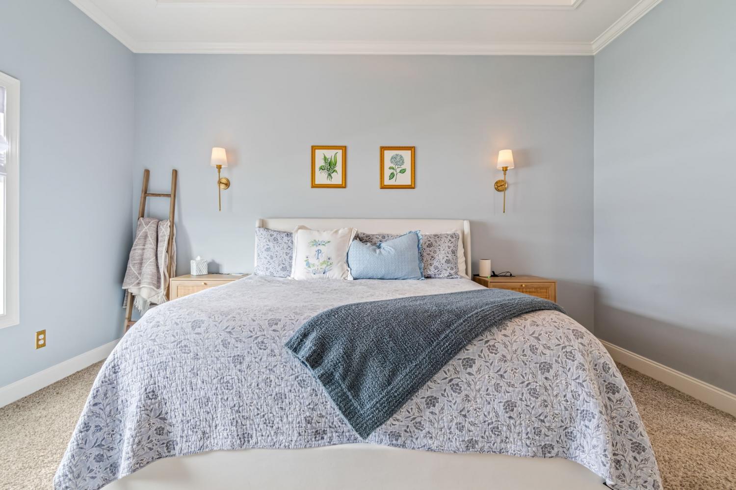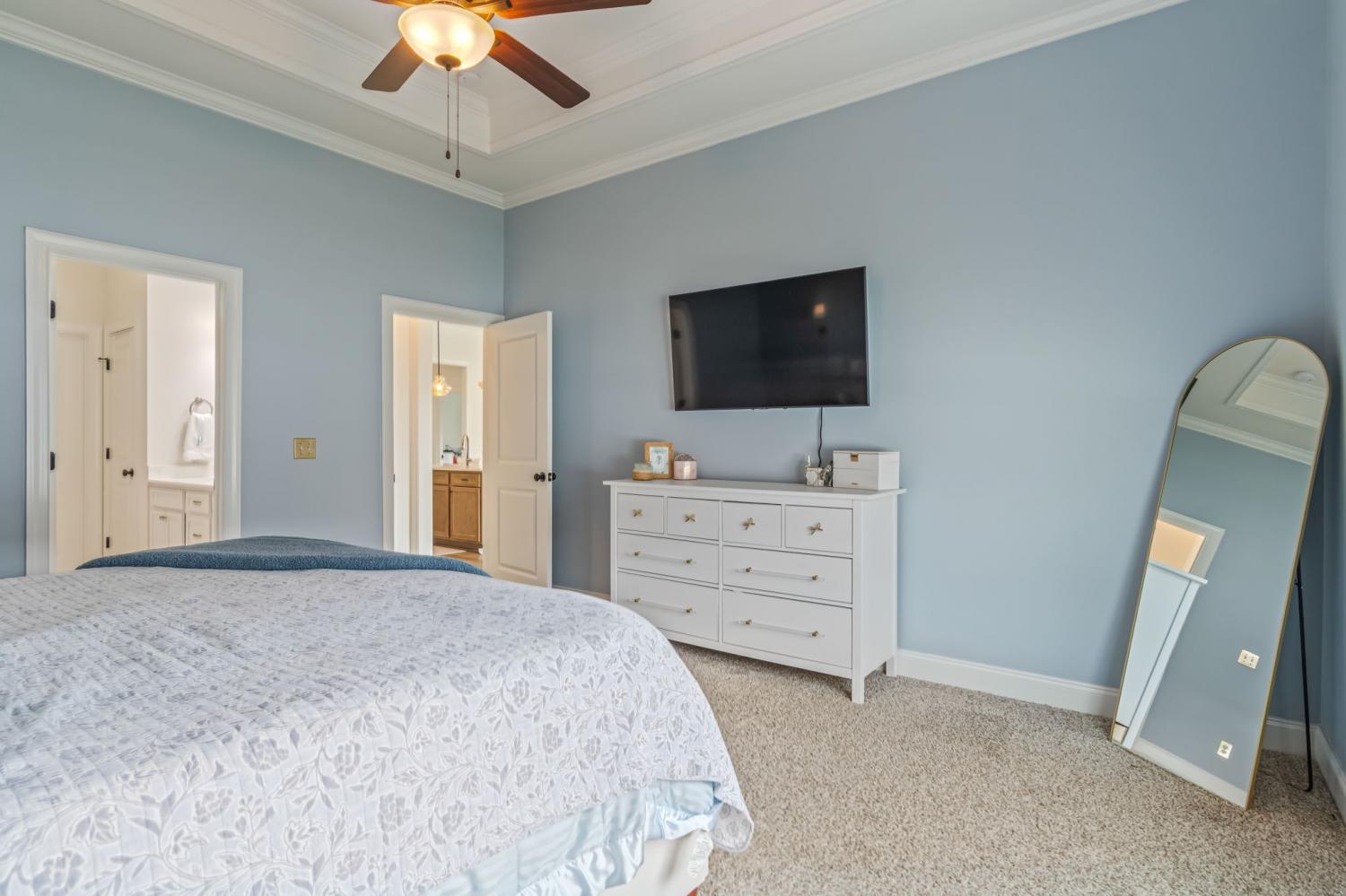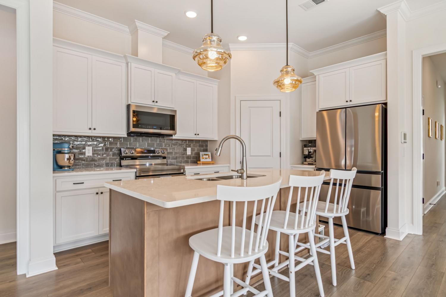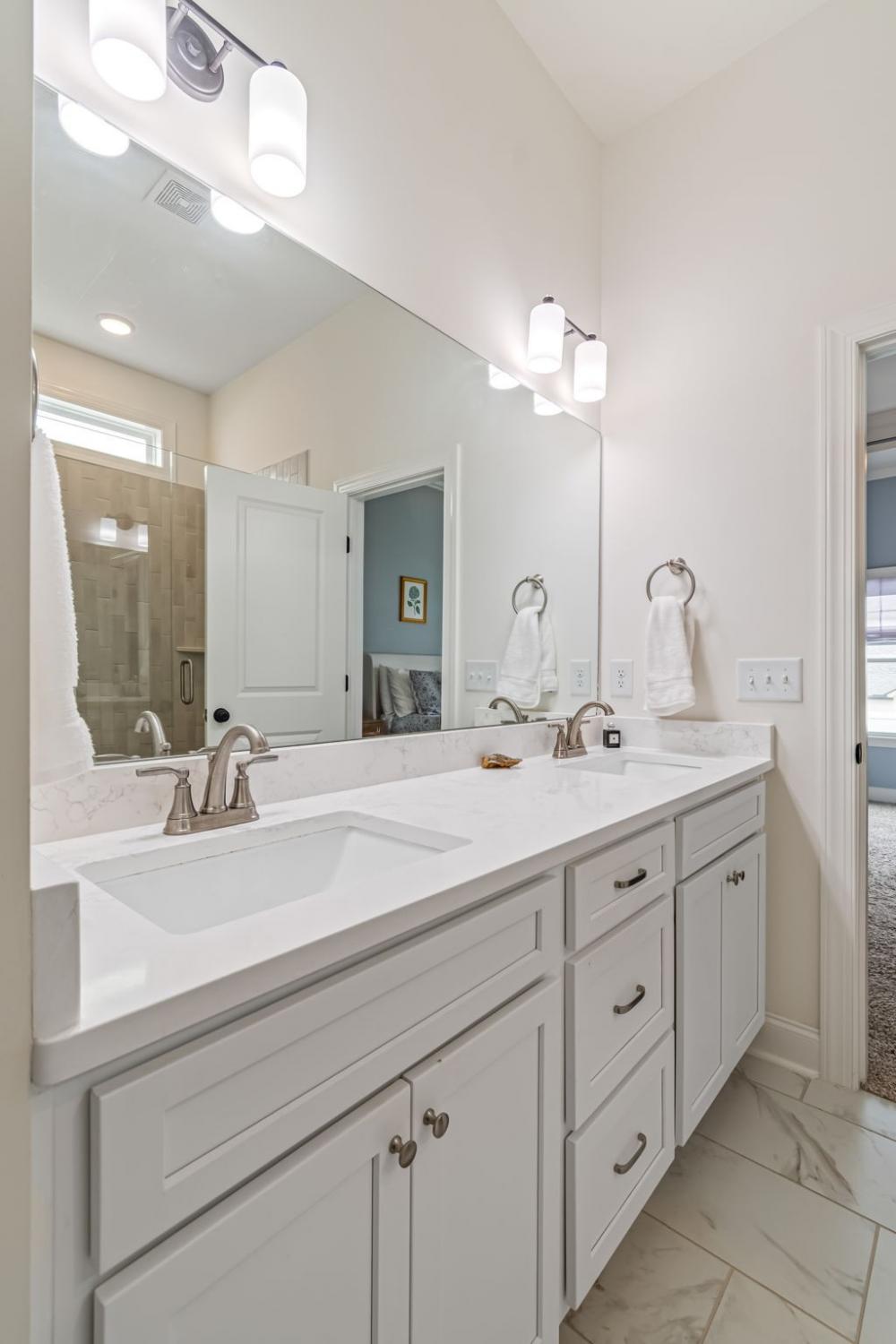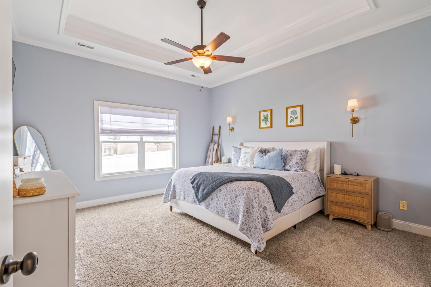 Move-in ready and like-new home in the highly desirable and rapidly growing Brentwood area! This charming open-concept home welcomes you with a soaring entryway and abundant natural light from extra windows that brighten the spacious great room, kitchen and dining areas. Situated on a desirable corner lot, the home features quartz countertops throughout, a Smart Home Hub and Ring doorbell system, concrete driveway and a cozy rocking chair front porch! The main-level primary suite offers an oversized spa-style shower, double vanities and a walk-in closet. Upstairs you will find a large bonus room-perfect for those media-centered gatherings, a generous landing ideal for a study or office space, and two bright bedrooms with walk-in closets. The backyard is fully fenced for privacy and includes a cozy covered patio—perfect for relaxing evenings and sunset views. The HOA covers lawn maintenance along with mulching and fertilizing! Walkable to groceries, shopping, and dining for exceptional everyday convenience.