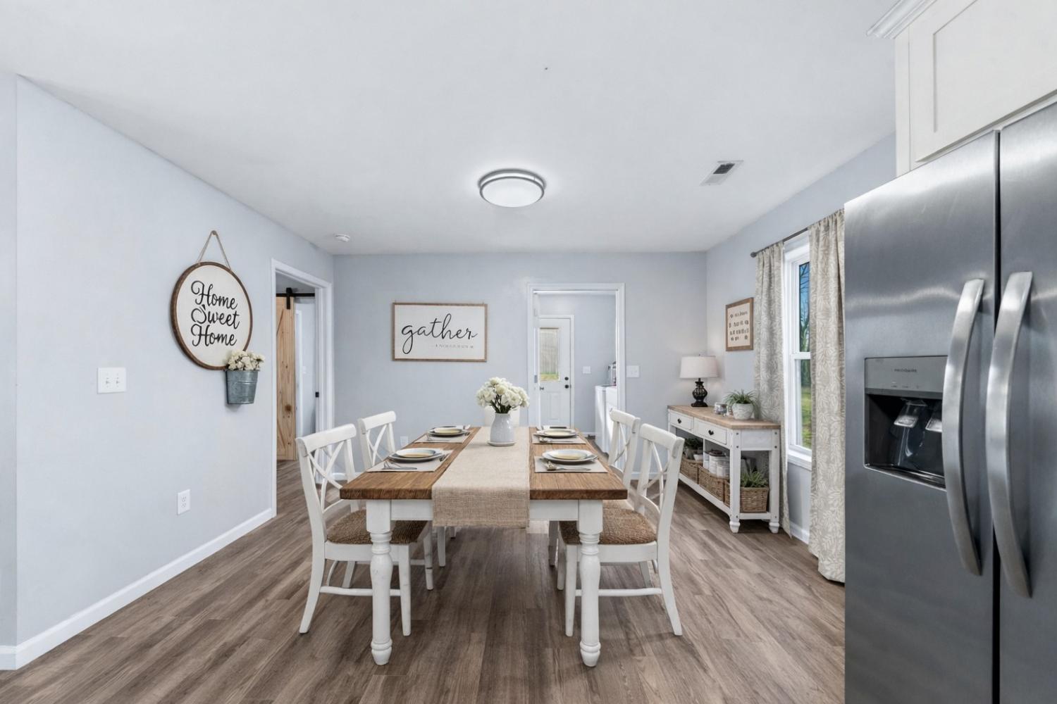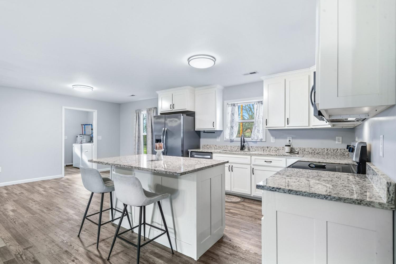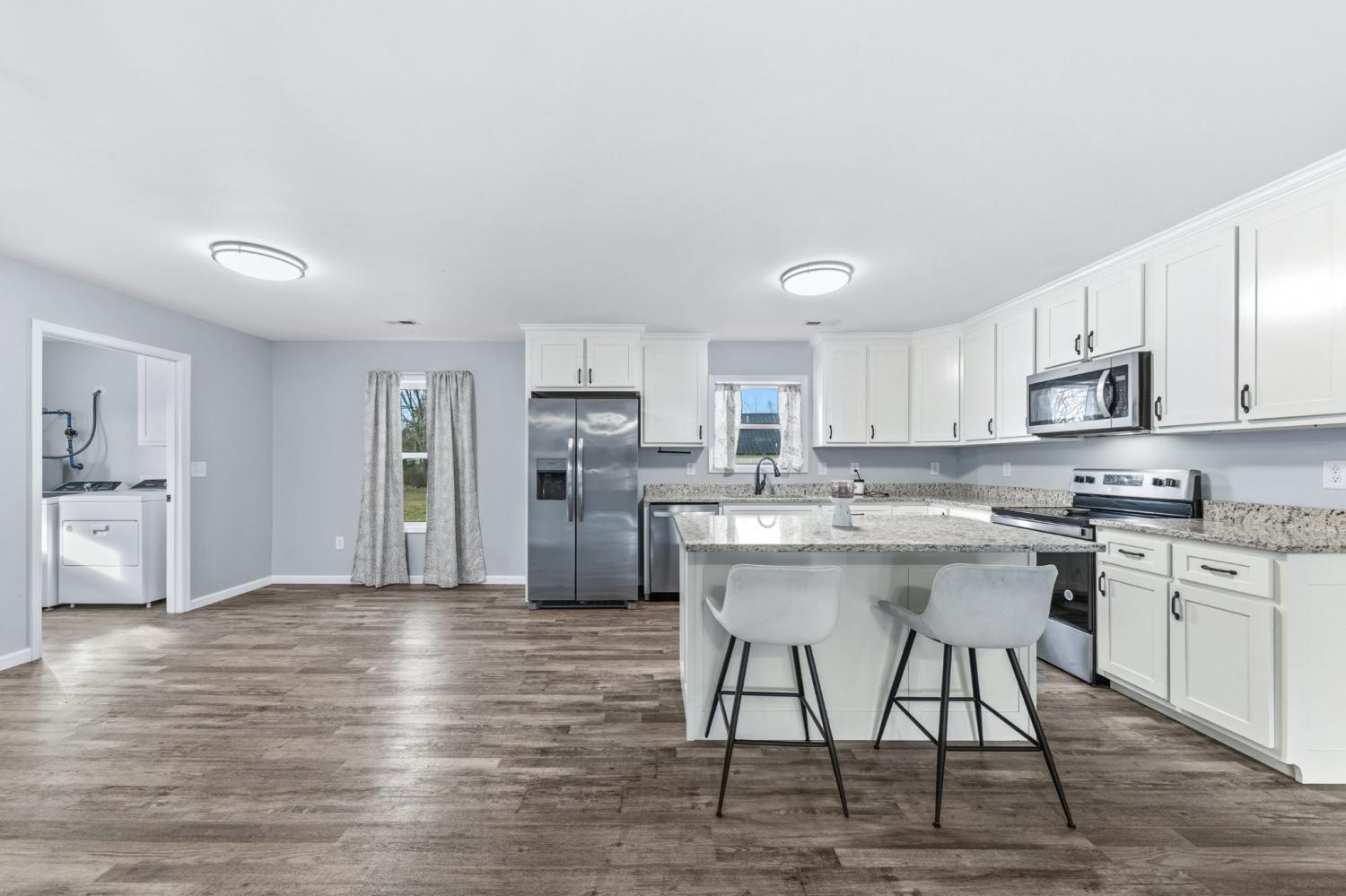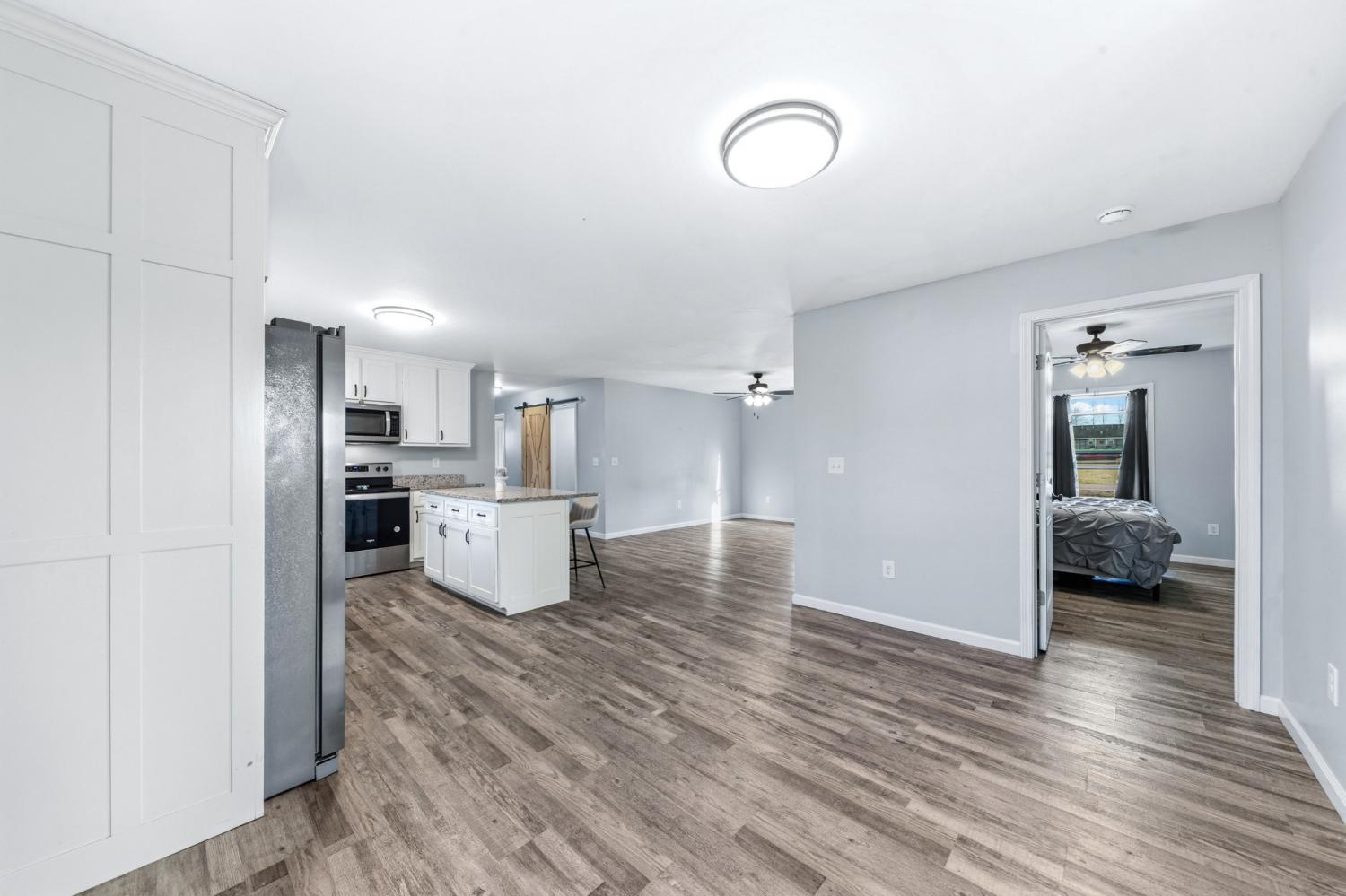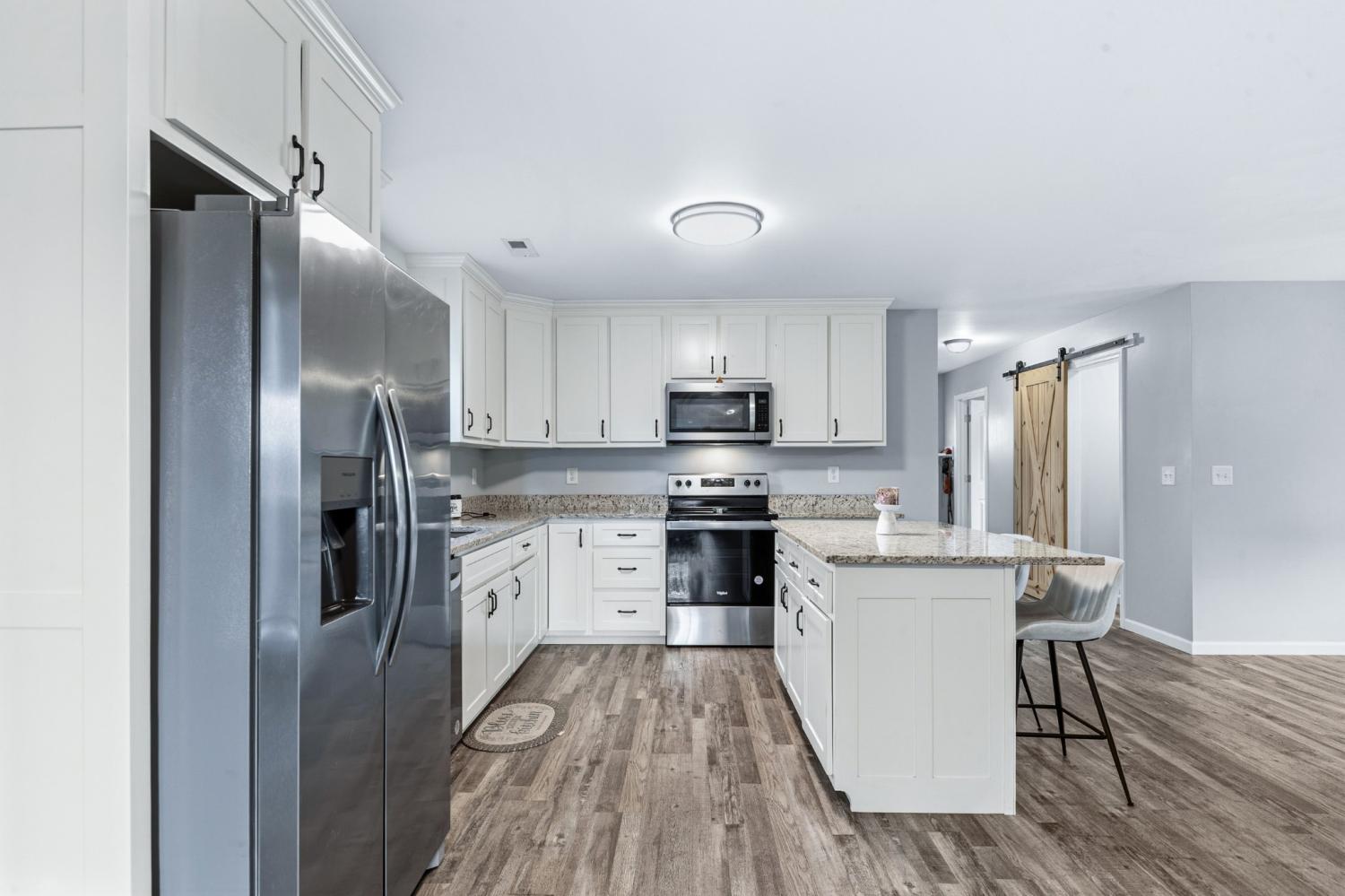 Modern farmhouse charm in the heart of Hohenwald—just minutes from restaurants, grocery stores, and schools. Like-new 3BR/2BA home featuring an open floor plan, split-bedroom layout, granite countertops, stainless steel appliances, and farmhouse-style sliding barn doors. Relax on the covered front and back porches with cedar columns—perfect for unwinding or hosting friends and family. Built just two years ago, this home offers a bright open-concept living area designed for comfortable everyday living. The kitchen includes granite countertops, stainless steel appliances, soft-close cabinetry, a center island, and a corner cabinet with a built-in lazy Susan for added functionality. The spacious primary suite features a walk-in closet, and the home includes a nicely sized laundry room for convenience. Large closets throughout provide additional storage. A neighboring church has minimal activity several days during the week, contributing to a quieter setting. Enjoy modern farmhouse style and convenient access to local amenities in this centrally located Hohenwald home.