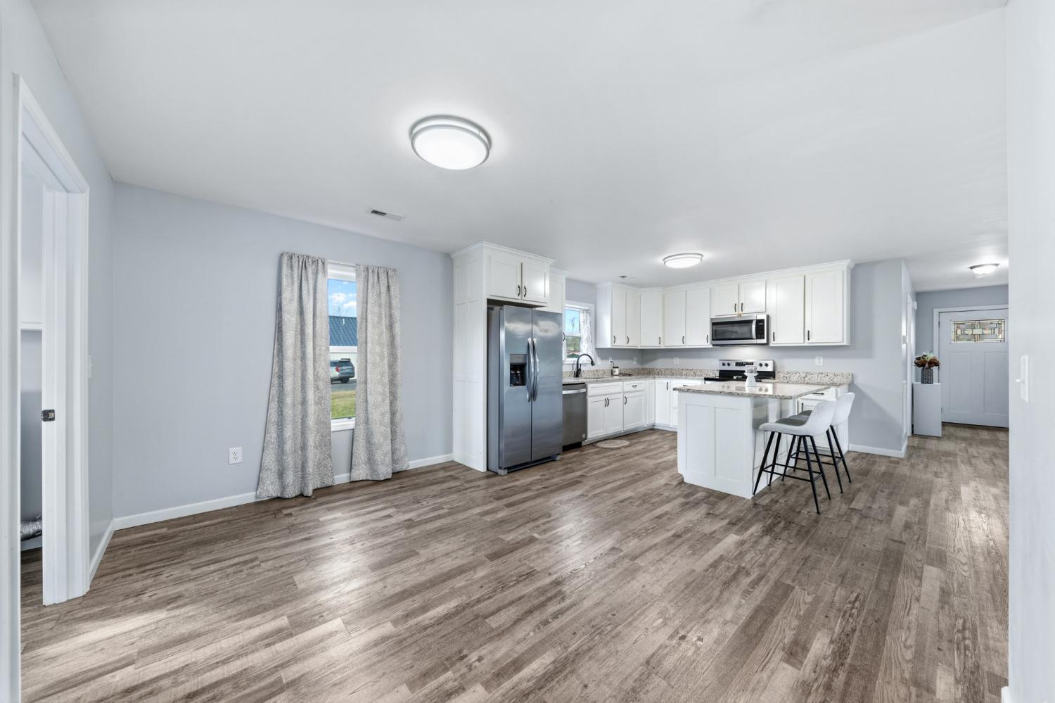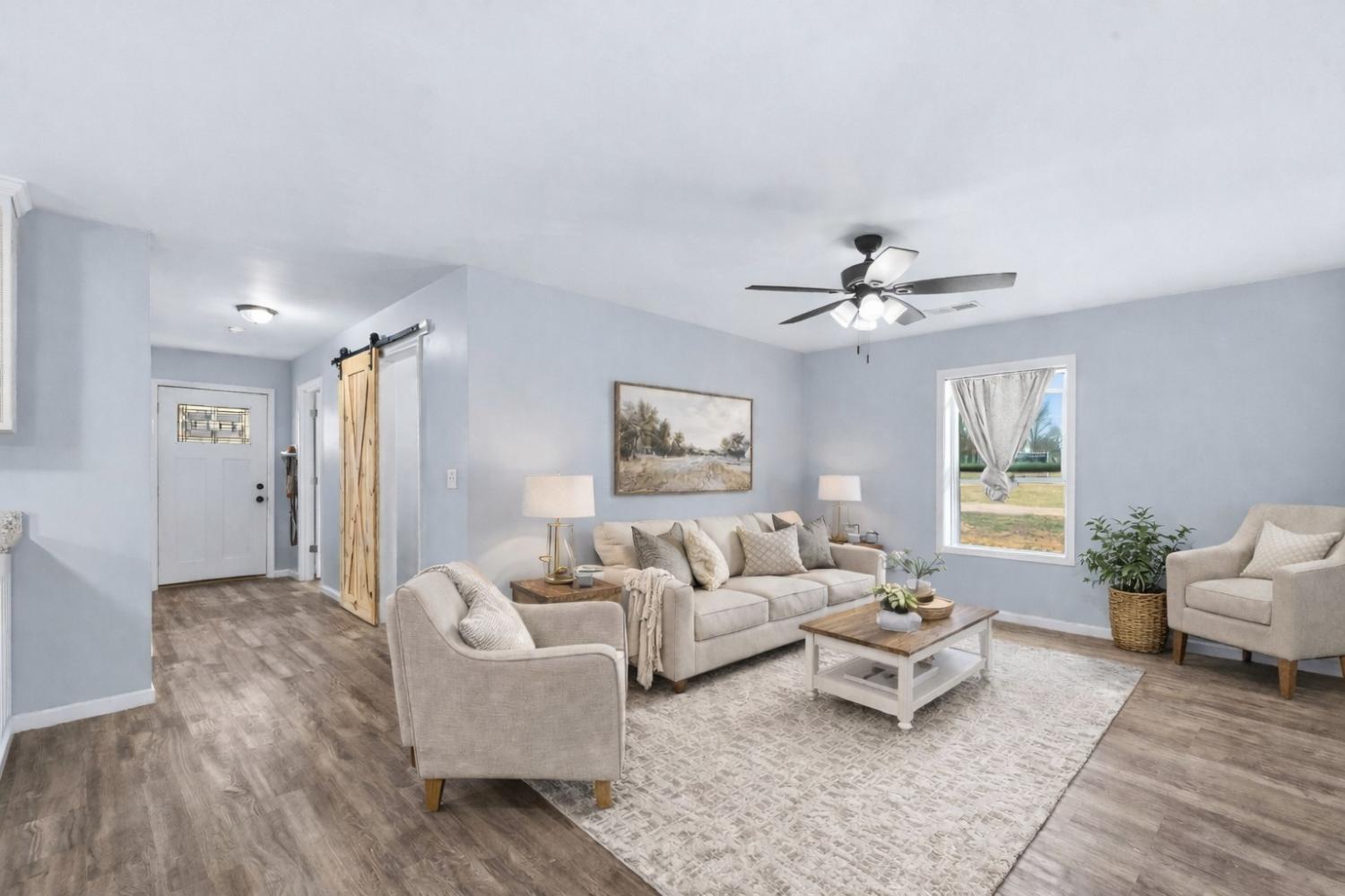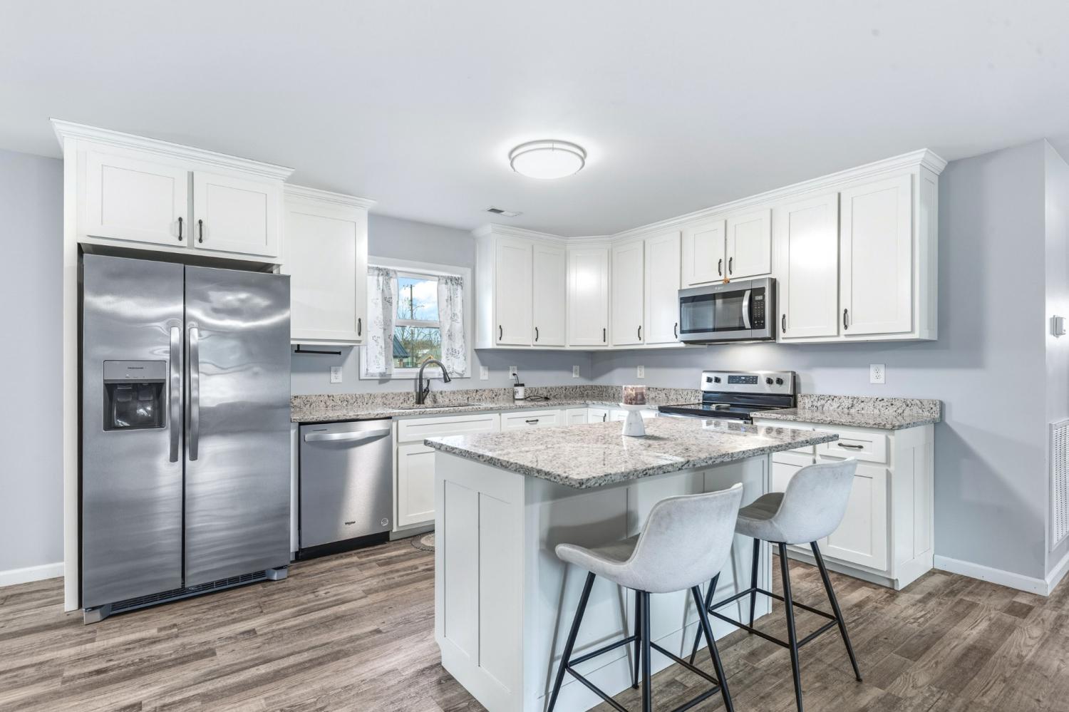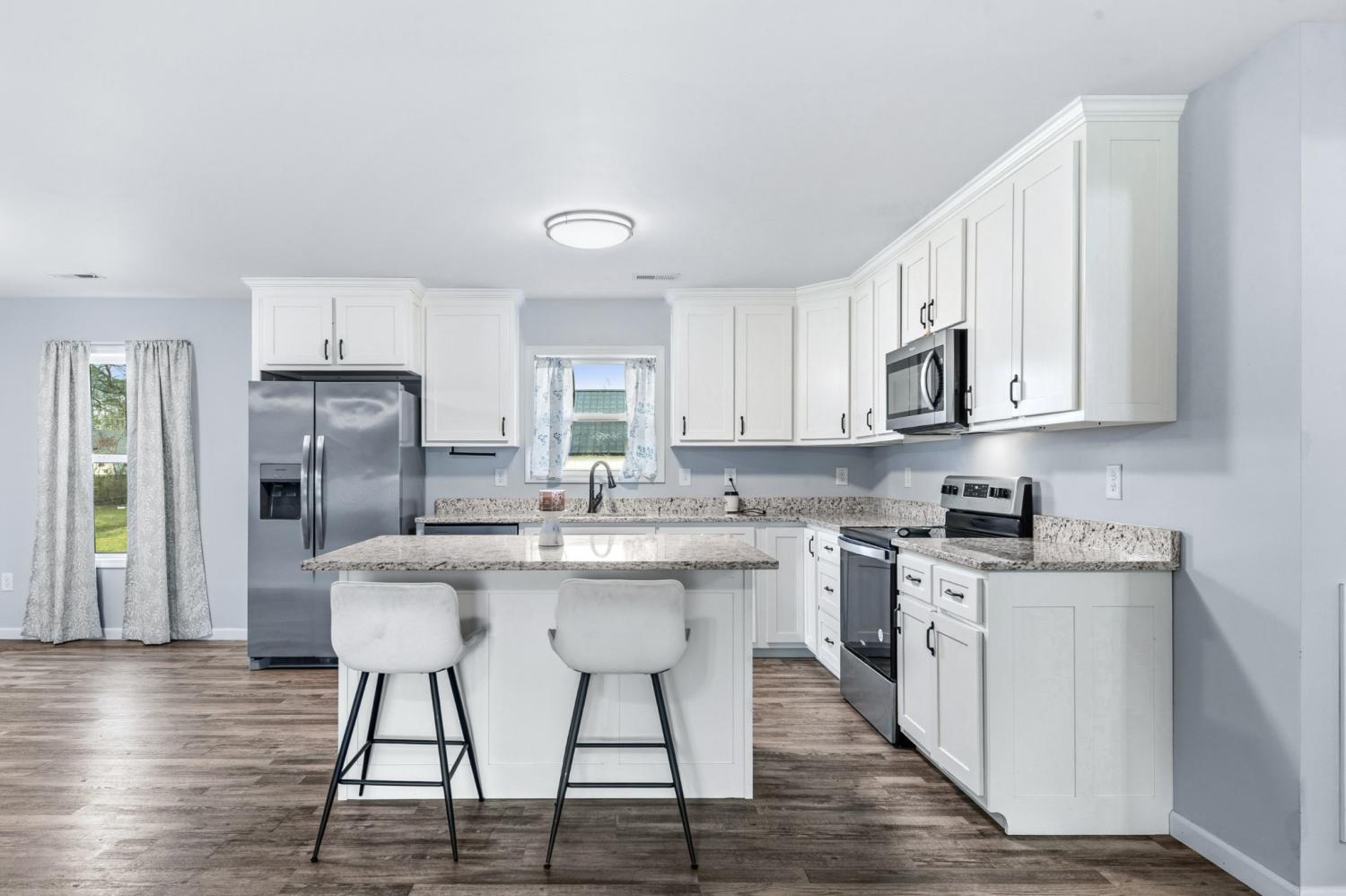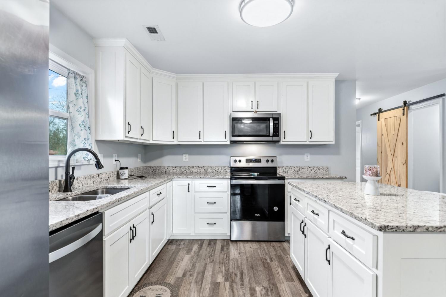 Modern farmhouse charm in the heart of Hohenwald—just minutes from restaurants, grocery stores, and schools. Like-new 3BR/2BA home featuring an open floor plan, split-bedroom layout, granite countertops, stainless steel appliances, and farmhouse-style sliding barn doors. Relax on the covered front and back porches with cedar columns—perfect for unwinding or hosting friends and family. Built just two years ago, this home offers a bright open-concept living area designed for comfortable everyday living. The kitchen includes granite countertops, stainless steel appliances, soft-close cabinetry, a center island, and a corner cabinet with a built-in lazy Susan for added functionality. The spacious primary suite features a walk-in closet, and the home includes a nicely sized laundry room for convenience. Large closets throughout provide additional storage. A neighboring church has minimal activity several days during the week, contributing to a quieter setting. Enjoy modern farmhouse style and convenient access to local amenities in this centrally located Hohenwald home.