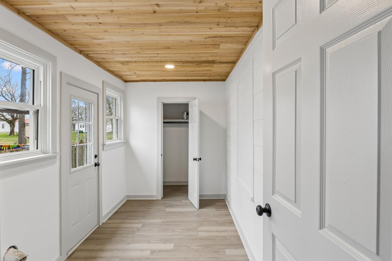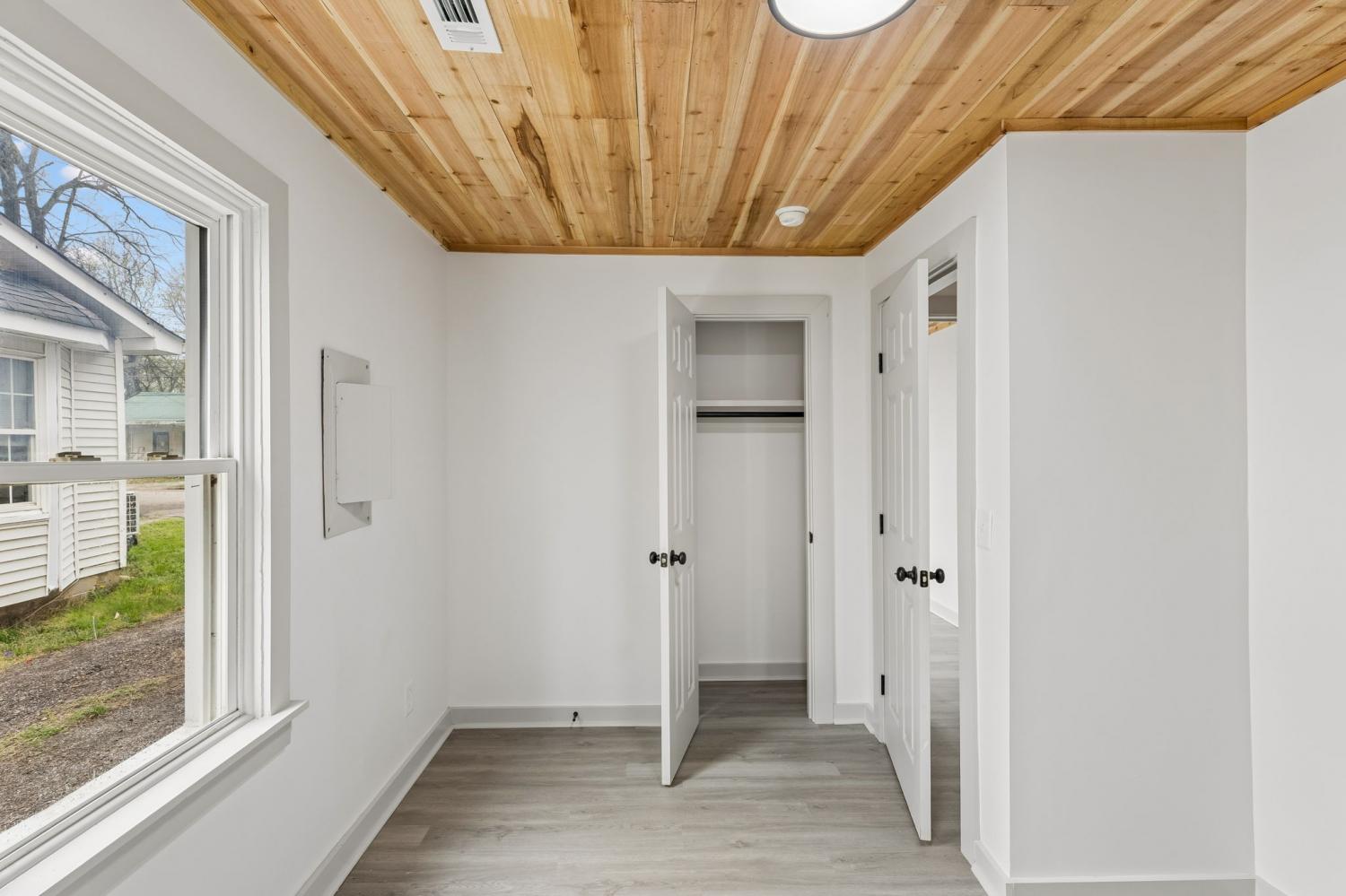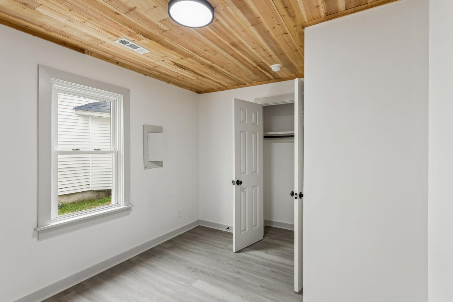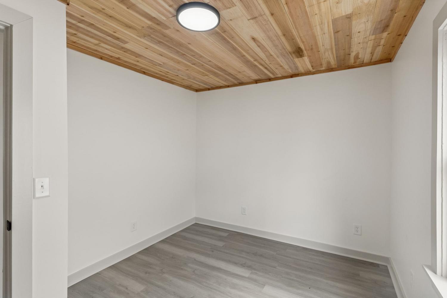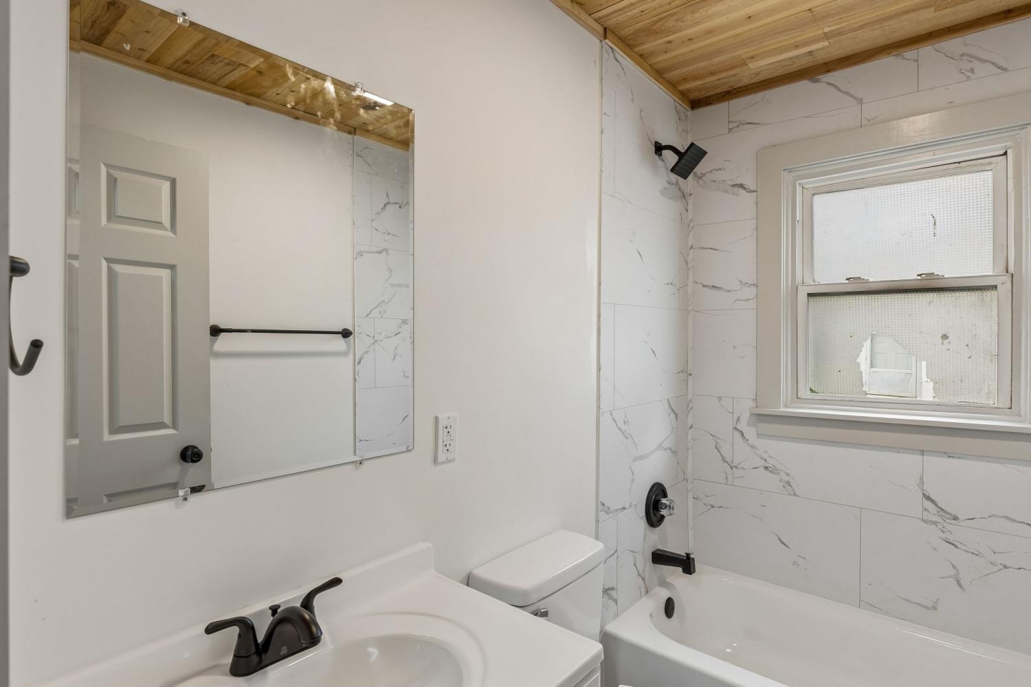 First Month Free with a 13 month lease! Welcome home to this beautifully updated 3 bedroom, 1 bath home offering approximately 1,103 sq ft of comfortable living space. This charming property combines classic curb appeal with modern interior upgrades, making it the perfect place to call home. Step inside to discover a bright and inviting interior featuring fresh paint, durable luxury vinyl plank flooring, and stunning natural wood ceilings that add warmth and character throughout the home. The spacious living room provides plenty of room for relaxing or entertaining guests. The updated kitchen features white shaker-style cabinets, granite-style countertops, stainless steel appliances, and plenty of cabinet space for storage. A dedicated dining area sits just off the kitchen, creating a functional layout for everyday living. This home offers three comfortable bedrooms with good closet space and natural light. The centrally located full bathroom includes updated fixtures and a clean, modern feel. Additional highlights include a separate utility/laundry room, energy-efficient windows, and a practical floor plan that maximizes space. Outside, you'll enjoy a covered front porch perfect for relaxing, along with a large driveway offering ample parking. Conveniently located near local shopping, schools, and restaurants, this home provides both comfort and convenience. Don't miss this opportunity to live in a freshly updated home with modern finishes and classic charm. Schedule your showing today!