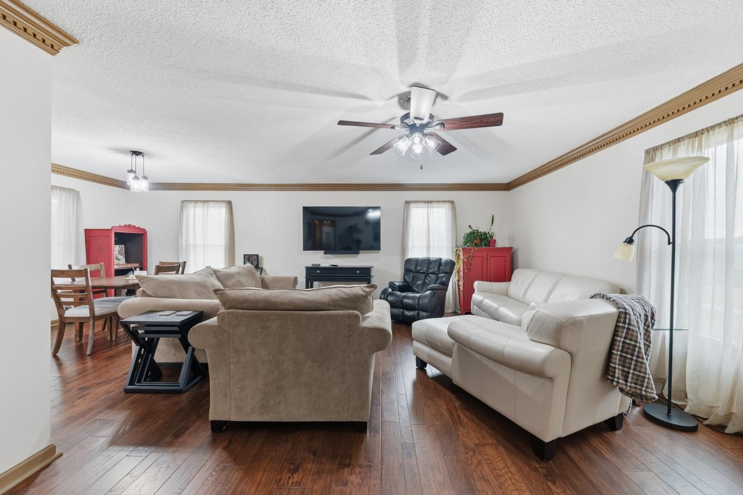 This charming all-brick home is nestled along a picturesque country road, offering the kind of serene living that feels like a breath of fresh air every time you pull into the driveway. Inside, 2467 square feet of well-designed living space provides 3 bedrooms and 2 bathrooms, striking a comfortable balance between spacious and intimate. Beautiful hardwood floors greet you from the moment you step through the door, adding warmth and timeless character throughout the home. The kitchen features solid wood cabinets and abundant counterspace, creating an inviting workspace for everything from quick weeknight dinners to elaborate weekend gatherings. Below the main level, a full basement opens up a world of possibilities. Whether you envision a workshop, a recreation room, or simply need generous storage space, this versatile area delivers. A two-car garage provides even more room to keep vehicles, tools, and seasonal items neatly organized and out of sight. Step outside and discover covered porches on both the front and back of the home, perfect spots for enjoying a quiet morning coffee or watching the sun set over the surrounding countryside. The peaceful setting creates an atmosphere that makes everyday moments feel a little more special. Situated in a highly desirable location, this property combines the tranquility of rural living with the solid craftsmanship of all-brick construction. Homes with this much character and charm in such a beautiful setting are a rare find. Schedule a showing today and experience everything this delightful property has to offer.