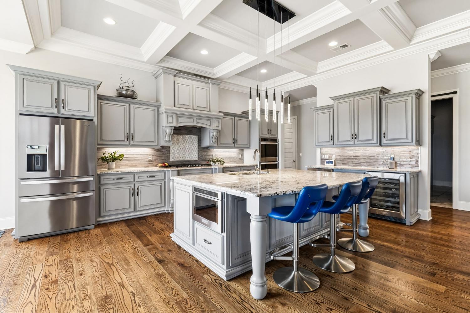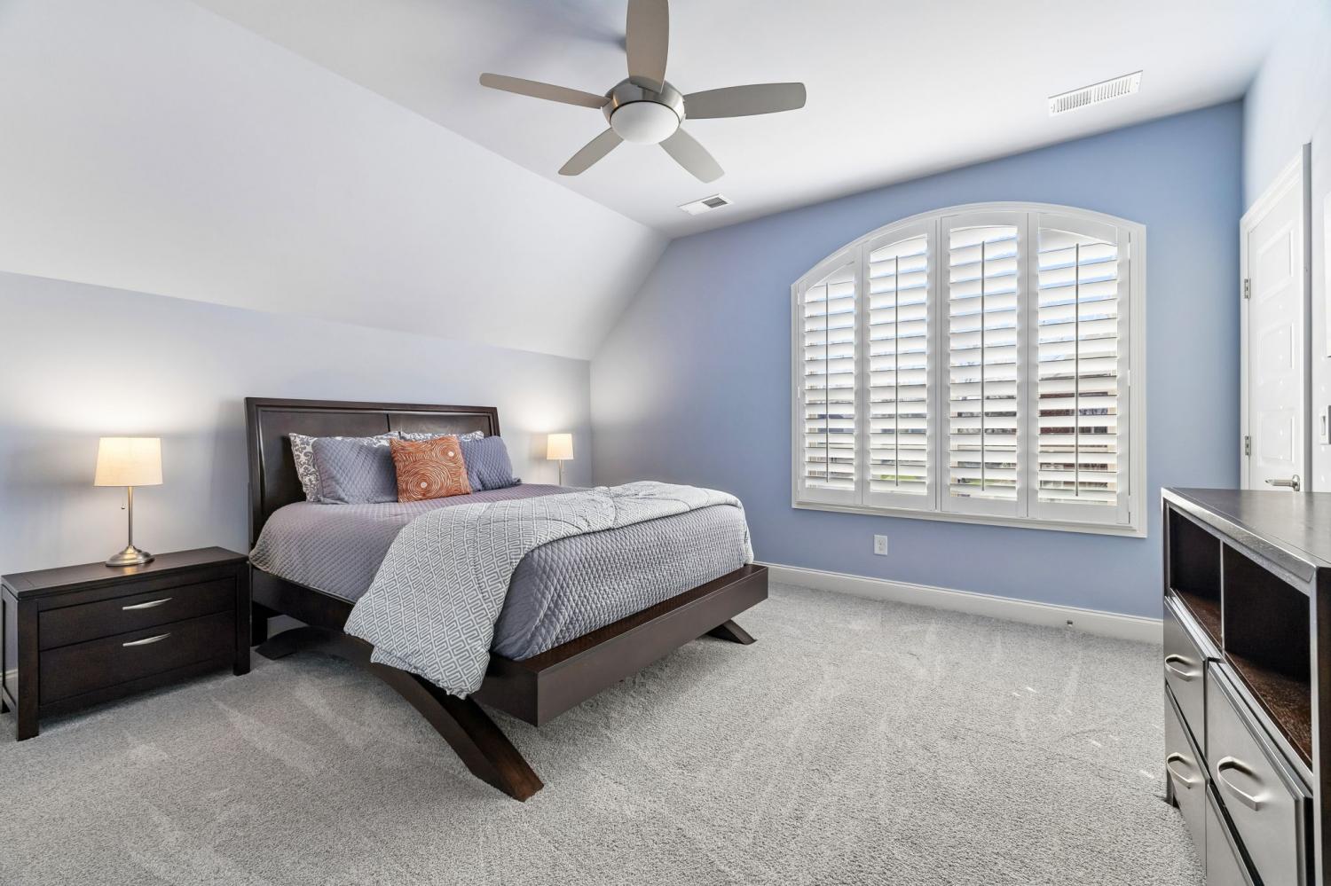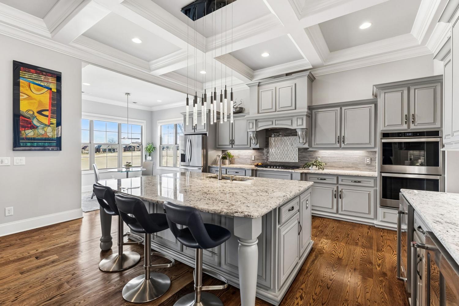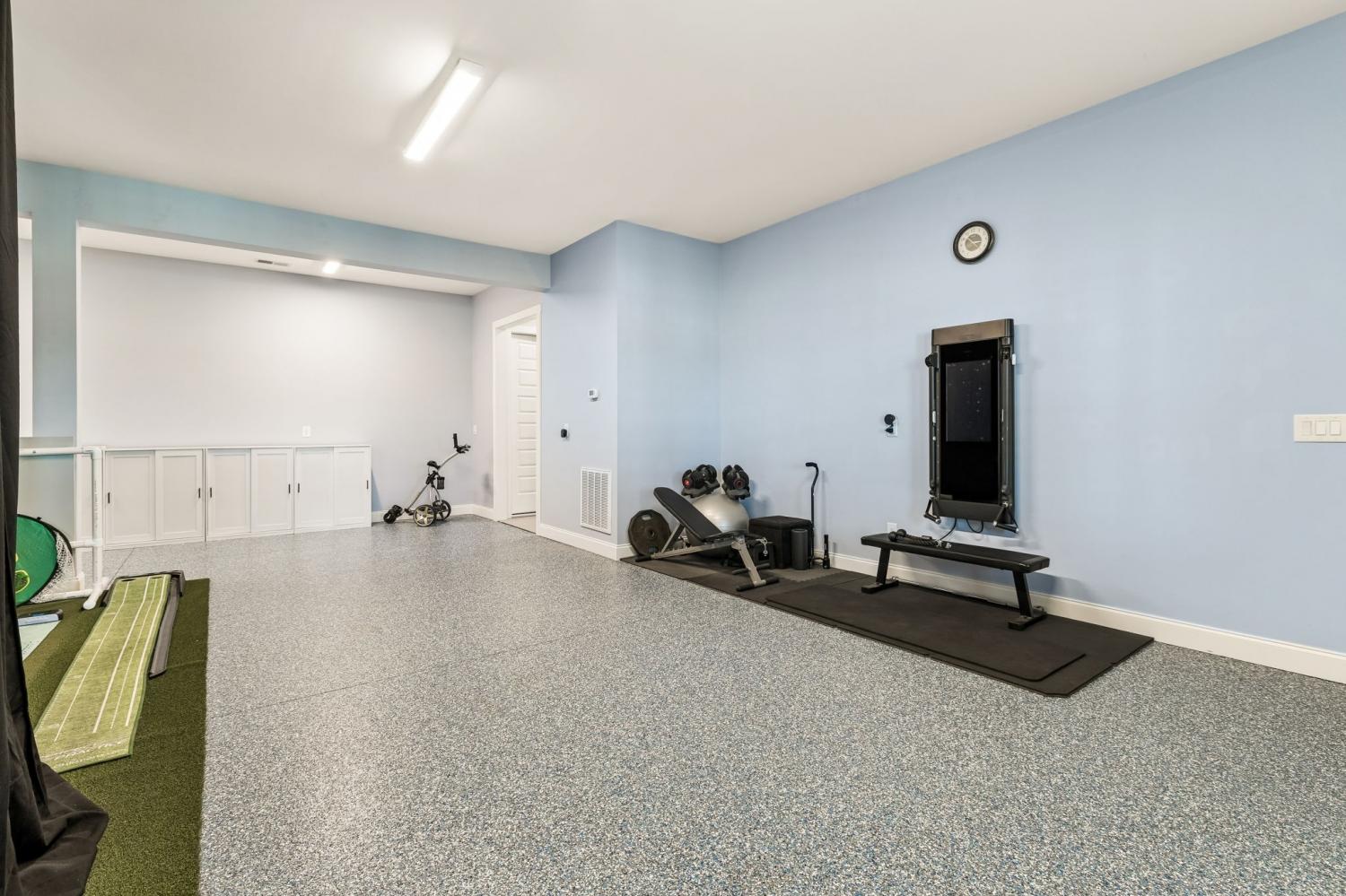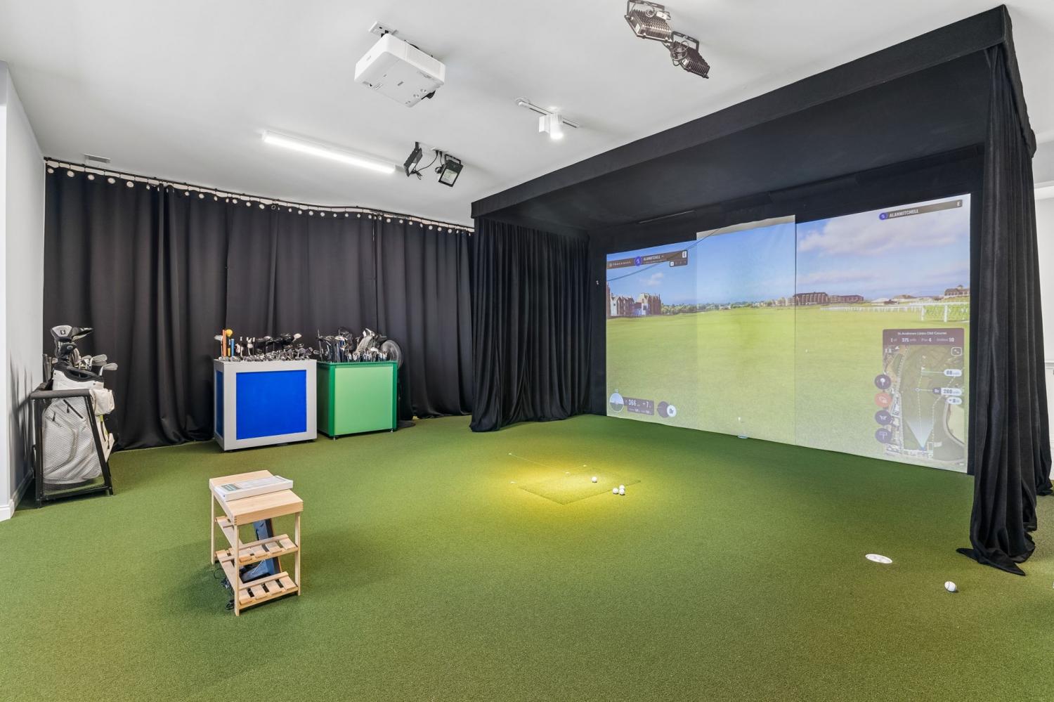 Experience luxury golf course living in this custom-built home perfectly positioned along the 10th and 16th fairways of the prestigious Foxland Harbor Golf Course. Thoughtfully designed with three levels of living, this exceptional residence blends comfort, elegance, and recreation in one remarkable setting. Golf enthusiasts will appreciate the home’s private Trackman Golf Studio, allowing you to practice and play year-round without ever leaving the house. Why wait for the weekend when you can perfect your swing anytime? The home offers the ease of mostly main-level living with three bedrooms on the main floor. The spacious great room flows seamlessly to a screened-in porch overlooking the course, creating the perfect spot to take in breathtaking sunsets, enjoy outdoor dining, or unwind with casual drinks among friends. The chef’s kitchen is designed to impress, featuring a gas cooktop, double ovens, wine fridge, oversized island, and custom cabinetry, ideal for both everyday living and entertaining. Beautiful coffered ceilings extend throughout the kitchen and great room, highlighting the craftsmanship and thoughtful design found throughout the home. The primary suite is a true retreat, featuring a spa-like bath with an oversized shower, a large soaking tub, and a custom-designed owners closet with built-in cabinetry to keep everything beautifully organized. Meticulously maintained and filled with thoughtful details at every turn, this home showcases exceptional quality and craftsmanship in one of the area’s most sought-after golf communities.