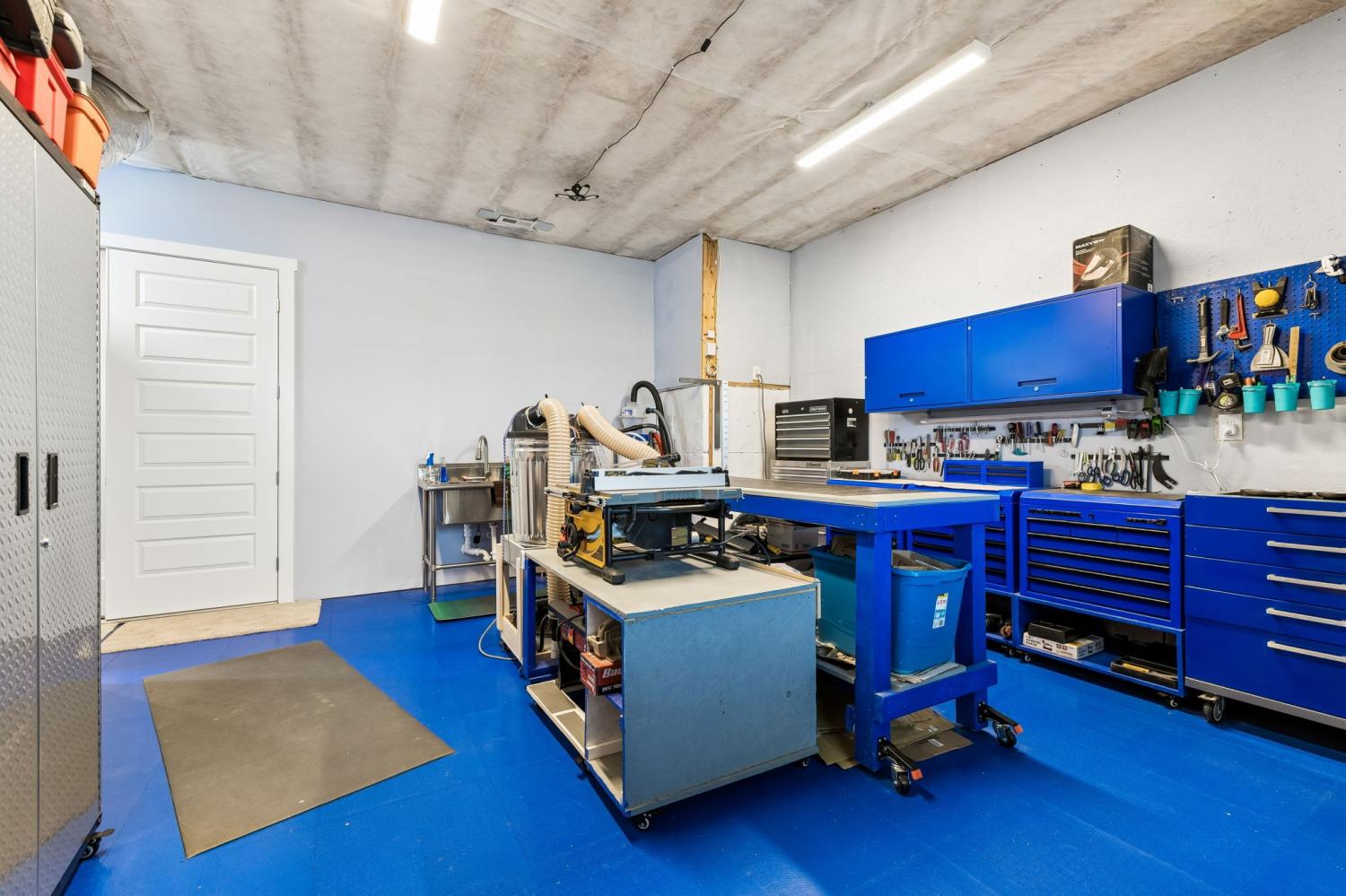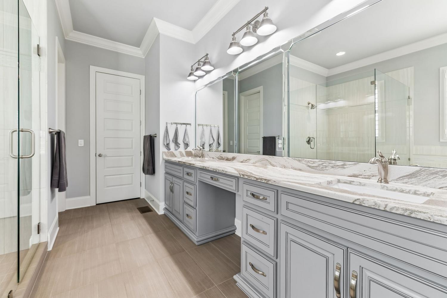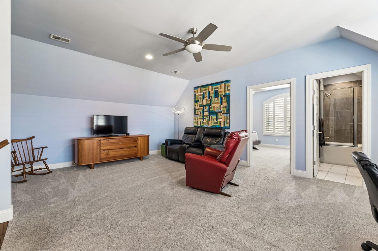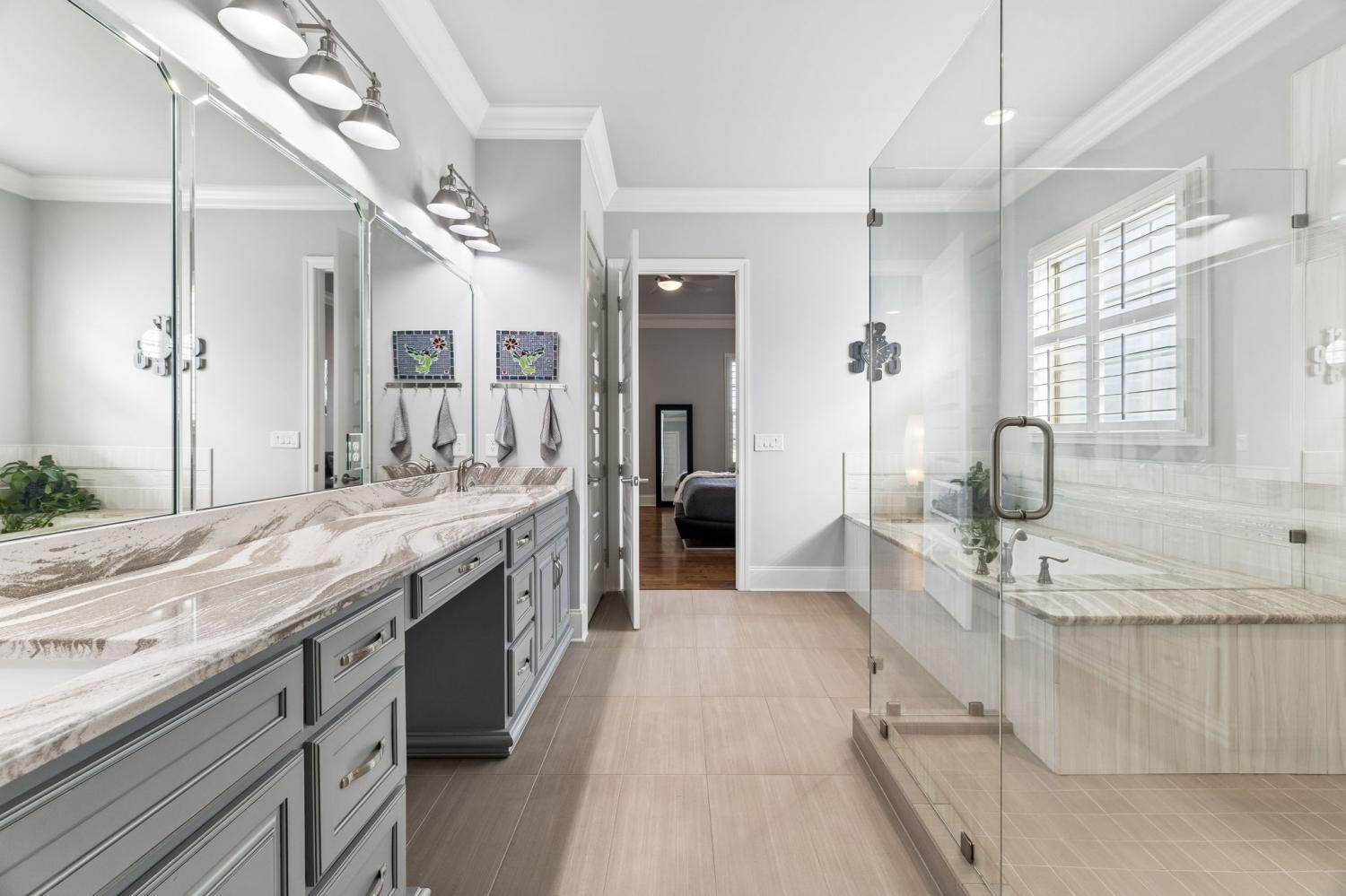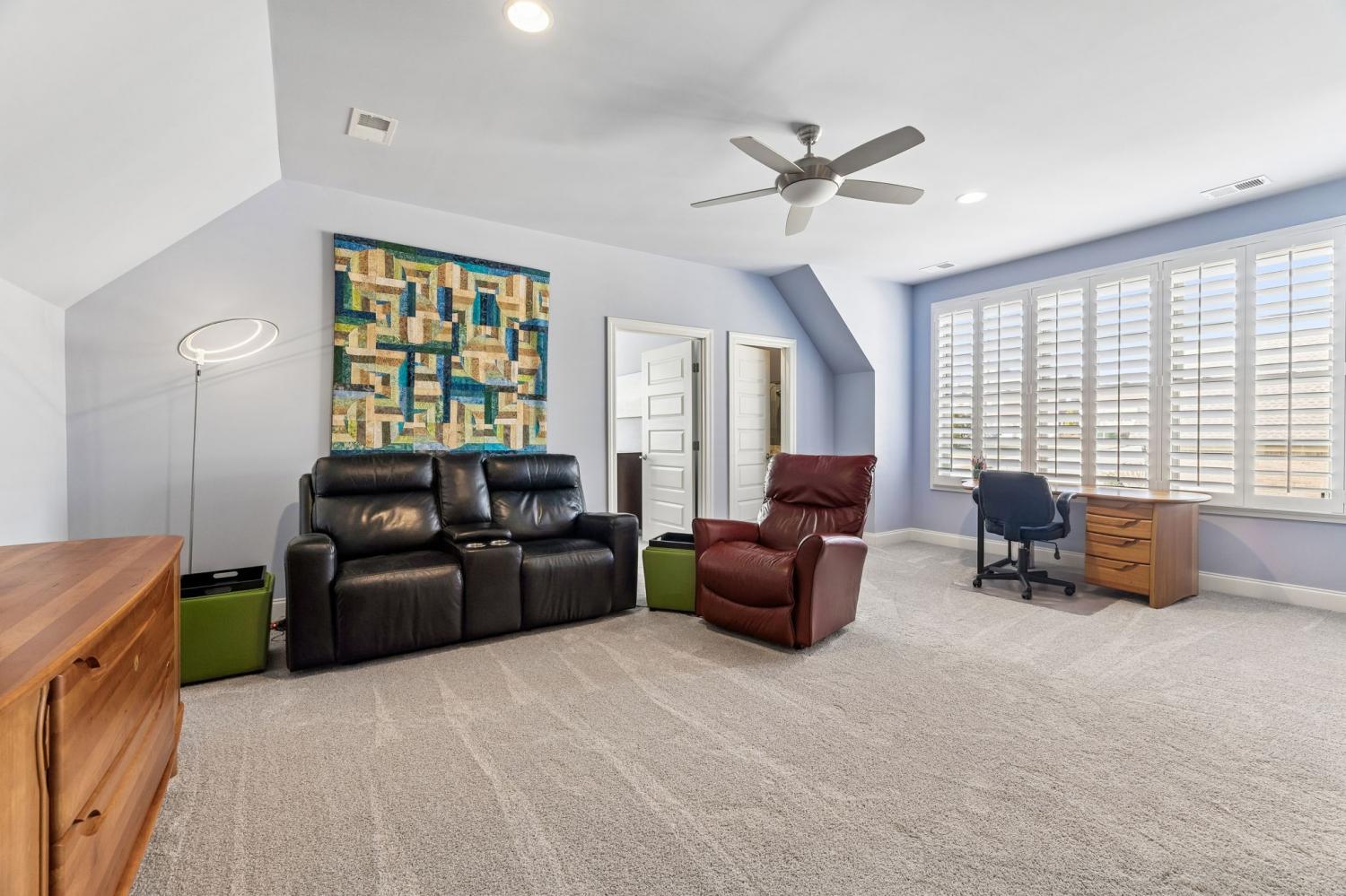 Experience luxury golf course living in this custom-built home perfectly positioned along the 10th and 16th fairways of the prestigious Foxland Harbor Golf Course. Thoughtfully designed with three levels of living, this exceptional residence blends comfort, elegance, and recreation in one remarkable setting. Golf enthusiasts will appreciate the home’s private Trackman Golf Studio, allowing you to practice and play year-round without ever leaving the house. Why wait for the weekend when you can perfect your swing anytime? The home offers the ease of mostly main-level living with three bedrooms on the main floor. The spacious great room flows seamlessly to a screened-in porch overlooking the course, creating the perfect spot to take in breathtaking sunsets, enjoy outdoor dining, or unwind with casual drinks among friends. The chef’s kitchen is designed to impress, featuring a gas cooktop, double ovens, wine fridge, oversized island, and custom cabinetry, ideal for both everyday living and entertaining. Beautiful coffered ceilings extend throughout the kitchen and great room, highlighting the craftsmanship and thoughtful design found throughout the home. The primary suite is a true retreat, featuring a spa-like bath with an oversized shower, a large soaking tub, and a custom-designed owners closet with built-in cabinetry to keep everything beautifully organized. Meticulously maintained and filled with thoughtful details at every turn, this home showcases exceptional quality and craftsmanship in one of the area’s most sought-after golf communities.
