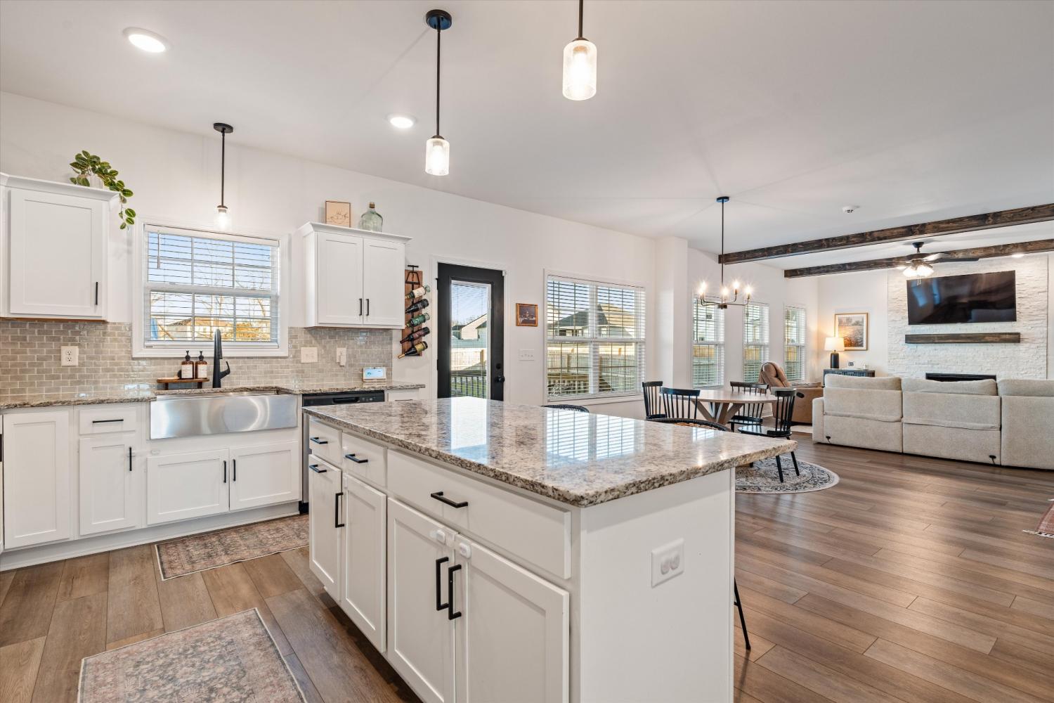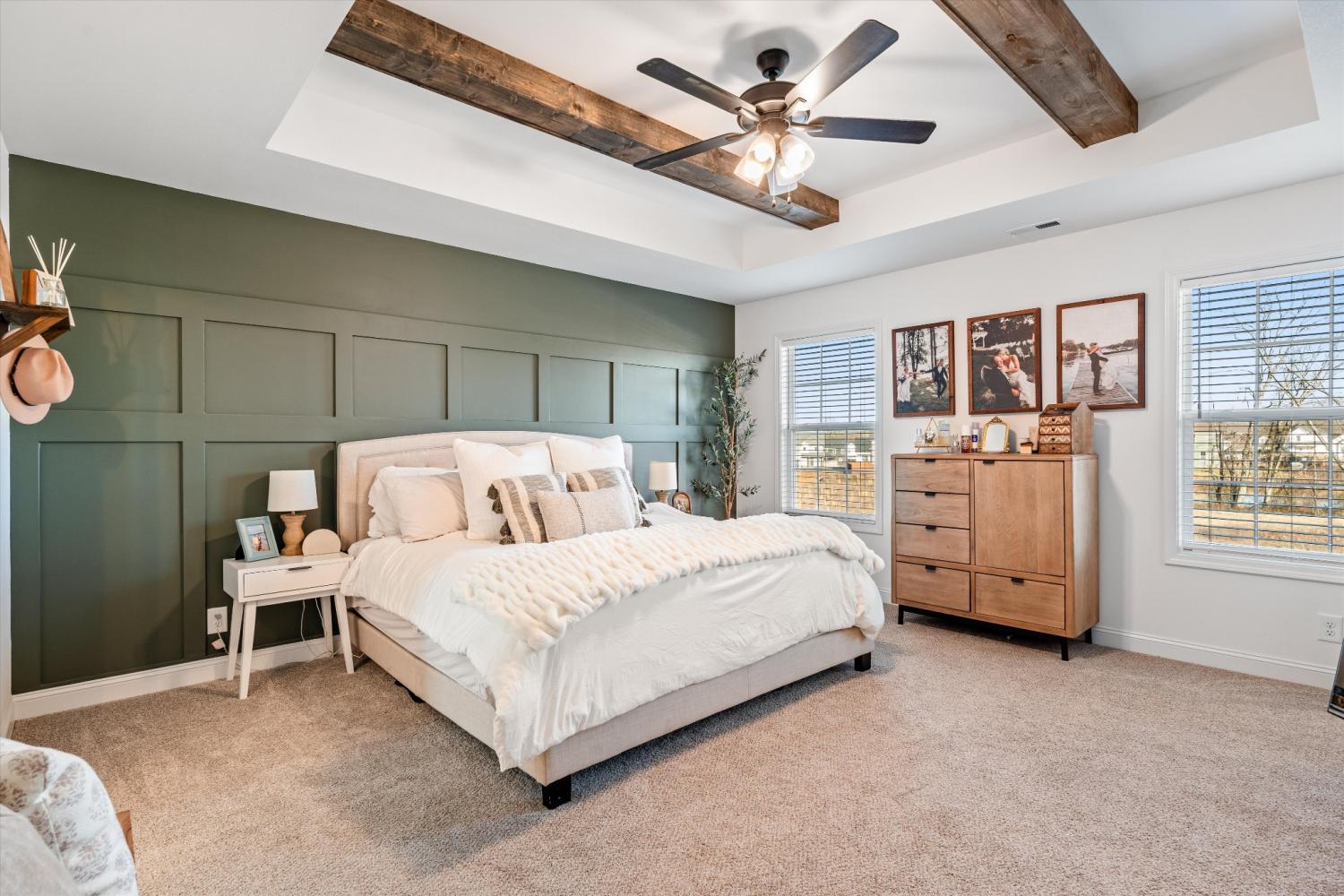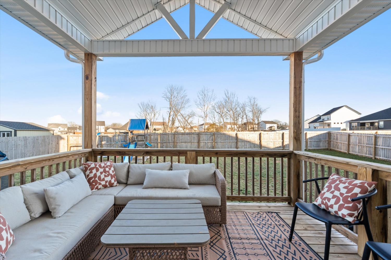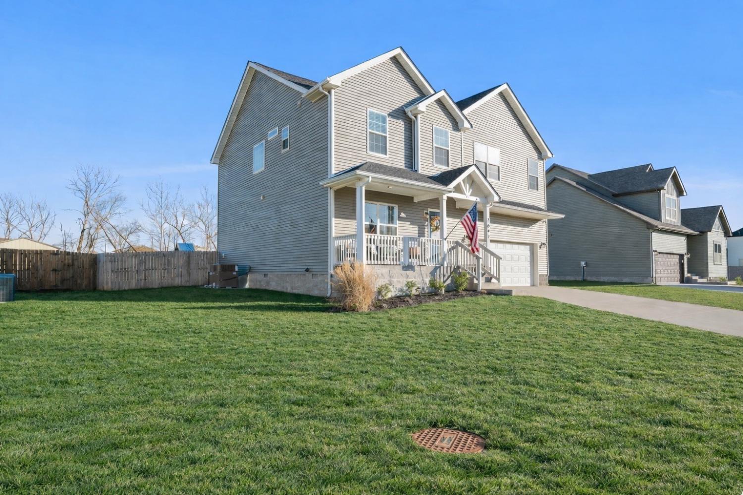This beautiful 4 bedroom, 3.5 bath home is located in the charming Cherry Fields neighborhood just minutes from Fort Campbell! Adding a double oven in kitchen, upgraded appliances, water softener and home filtration system, and relocating the fireplace to create a better layout, are just some of the upgrades the buyers have completed! This home offers a spacious and functional layout with beautiful beams throughout, adding warmth and character to the living spaces. The living room features a gas fireplace, perfect for relaxing or entertaining. The kitchen comes fully equipped with all upgraded appliances to remain, making this home truly move-in ready. Upstairs and downstairs living spaces provide plenty of room for family, guests (2 primary suites!), or a home office. Step outside to enjoy the covered deck and fully fenced backyard, ideal for pets, play, or outdoor gatherings. The two 65” TVs remain with the home as an added bonus! Conveniently located near shopping, dining, and Fort Campbell, this home offers comfort, space, and convenience all in one!