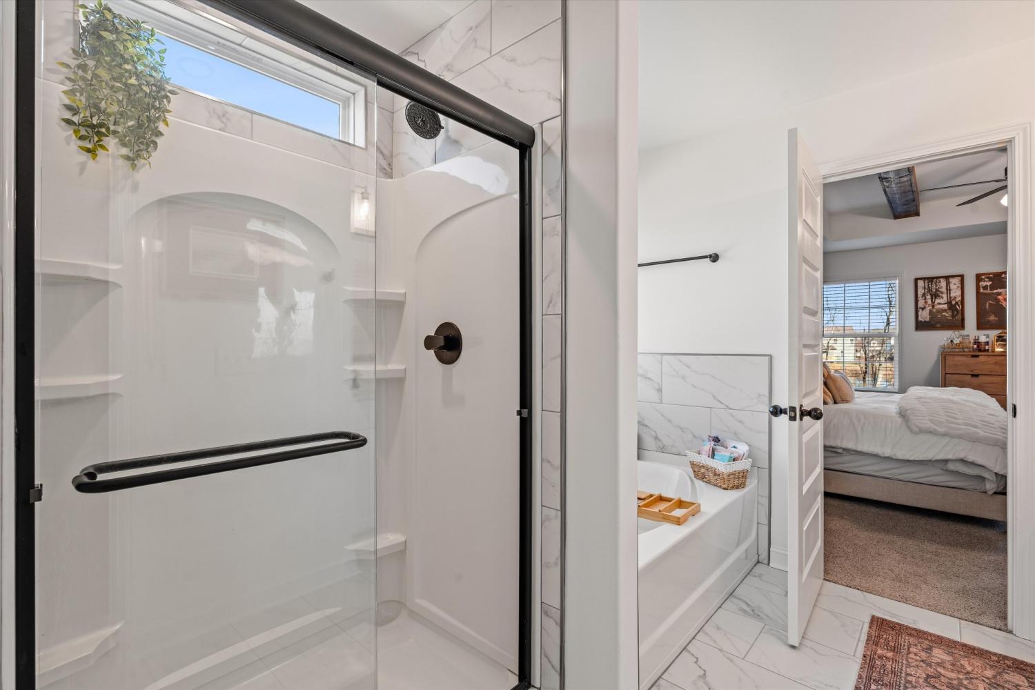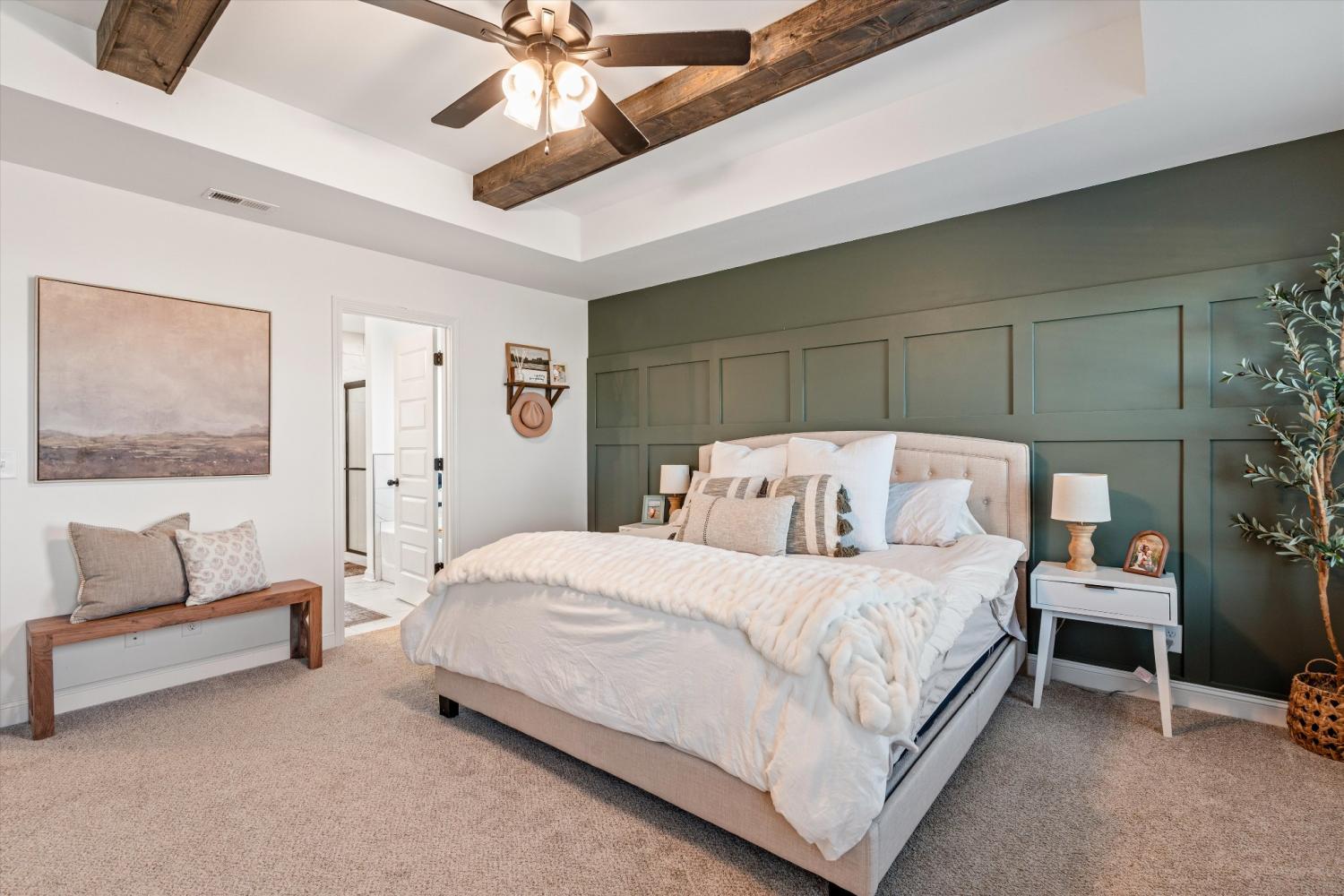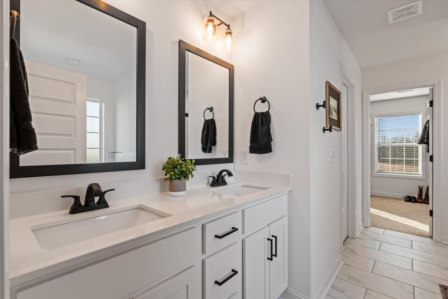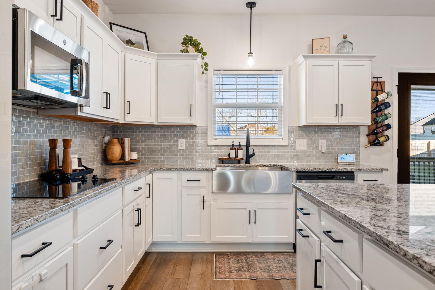 This beautiful 4 bedroom, 3.5 bath home is located in the charming Cherry Fields neighborhood just minutes from Fort Campbell! Adding a double oven in kitchen, upgraded appliances, water softener and home filtration system, and relocating the fireplace to create a better layout, are just some of the upgrades the buyers have completed! This home offers a spacious and functional layout with beautiful beams throughout, adding warmth and character to the living spaces. The living room features a gas fireplace, perfect for relaxing or entertaining. The kitchen comes fully equipped with all upgraded appliances to remain, making this home truly move-in ready. Upstairs and downstairs living spaces provide plenty of room for family, guests (2 primary suites!), or a home office. Step outside to enjoy the covered deck and fully fenced backyard, ideal for pets, play, or outdoor gatherings. The two 65” TVs remain with the home as an added bonus! Conveniently located near shopping, dining, and Fort Campbell, this home offers comfort, space, and convenience all in one!