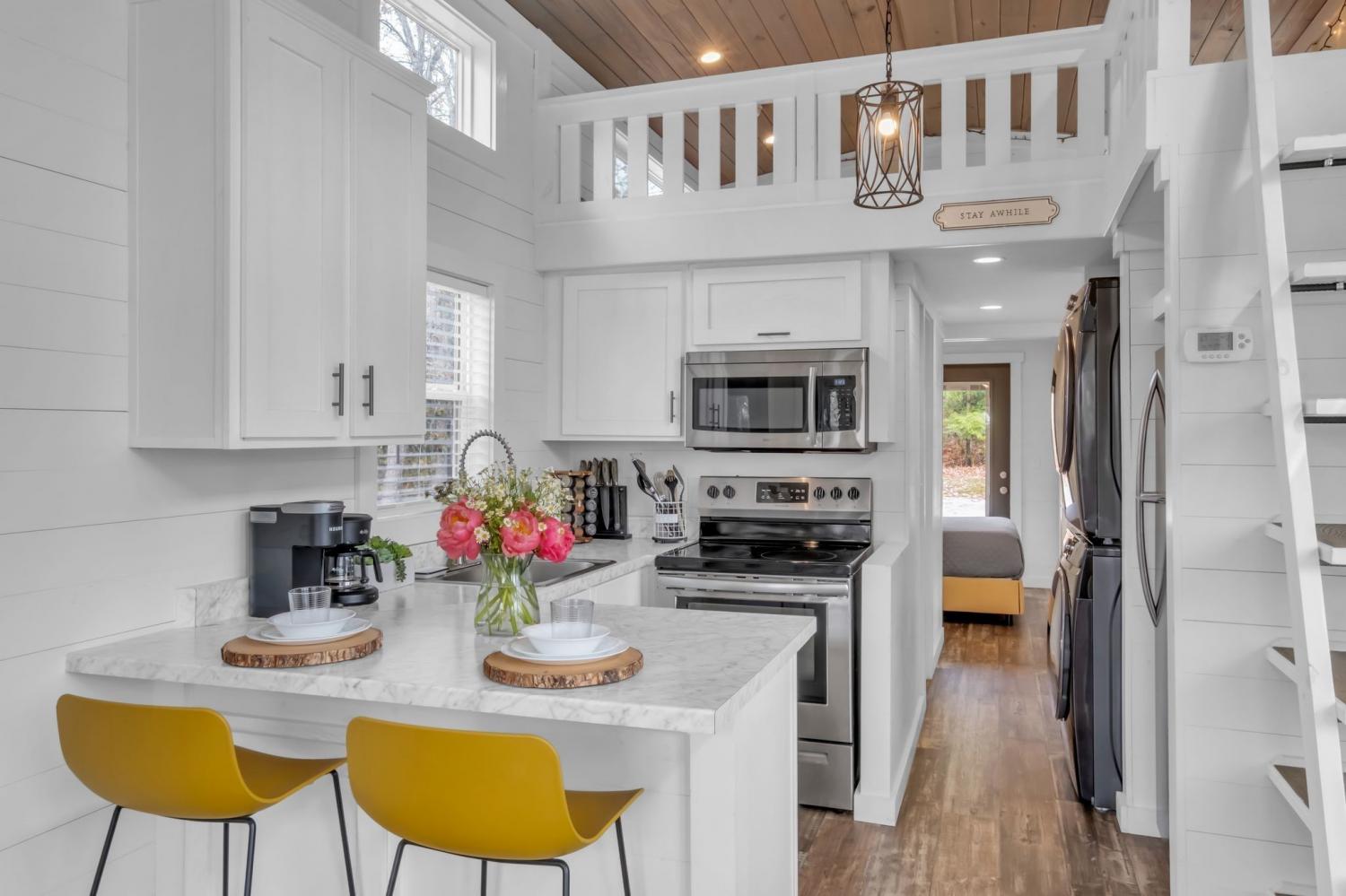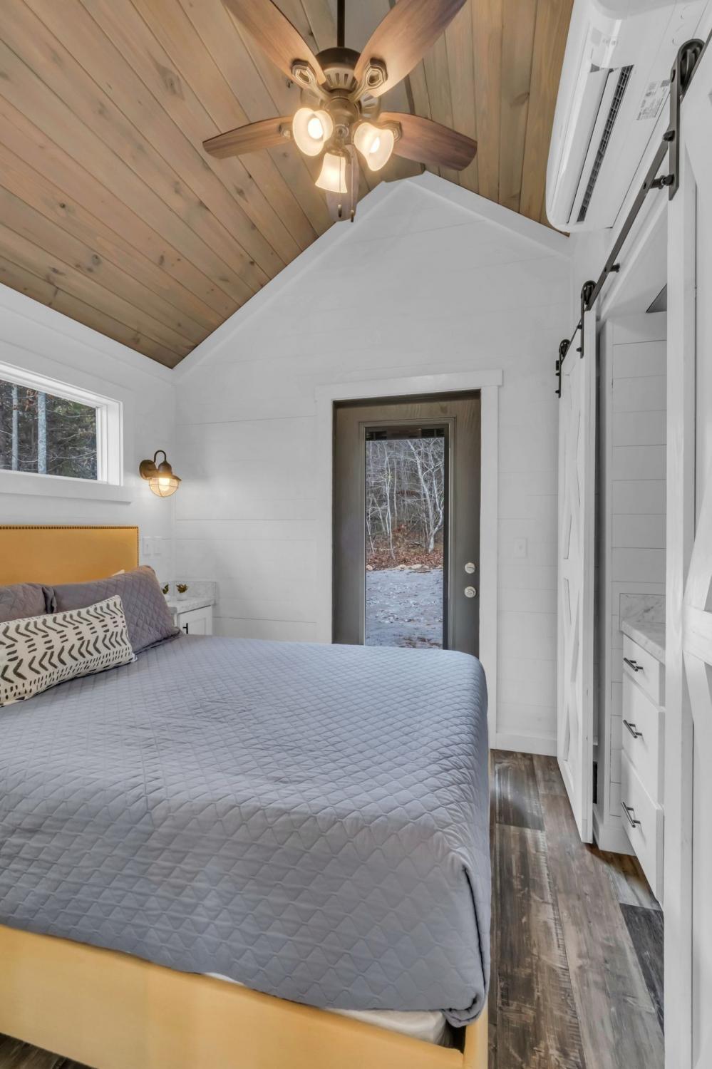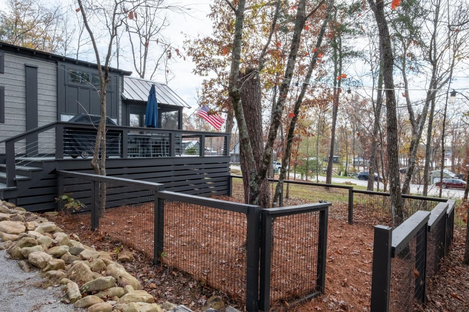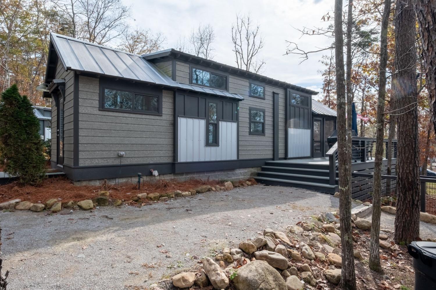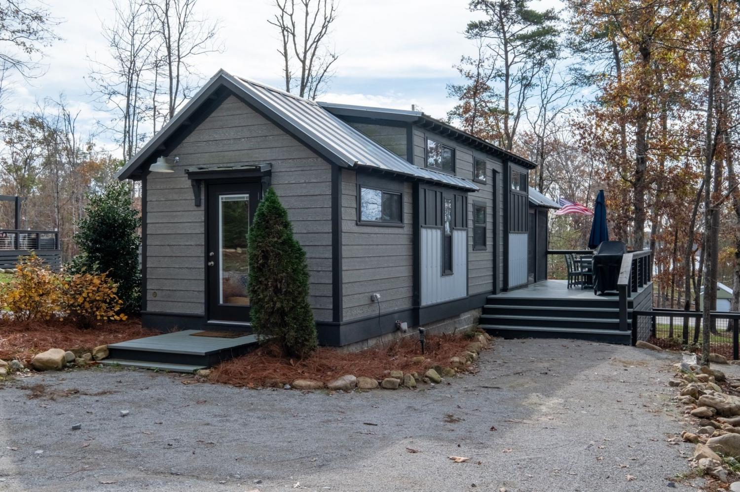Welcome to your quaint lake view home in the charming Retreat at Water's Edge located just 1.5 hour away from Nashville, 45 minutes to Chattanooga and 20 minutes from Sewanee! Sitting on a slight hill and only a few steps away from a 75 acre lake that is the center of this tranquil tiny home community, the home offers picturesque lake views from many angles. An amazing opportunity to gaze at the stars as you dine alfresco on the large deck or as you cozy up around the beautiful fire pit with views of the lake. A spacious screened-in porch allows you to enjoy the outdoors on rainy days or hot summer nights. The interior of the home offers ample space for you and your guests with a large primary, built in bunks, a living room with an electric fireplace and a loft that offers additional sleeping space. The large half acre wooded lot offers plenty of privacy and has room to build an additional home. The home is being sold fully furnished and is currently used as a short term vacation rental with the option to maintain future rental bookings. The gated community offers incredible amenities including community pavilions, fire pits, hiking trails, docks and a large playground. Your chance to own a serene getaway that can generate some income when you're not enjoying it or use it as a pure investment, the opportunities are endless! The spacious yard has a fenced in area between the home and the fire pit for your pooch's enjoyment!