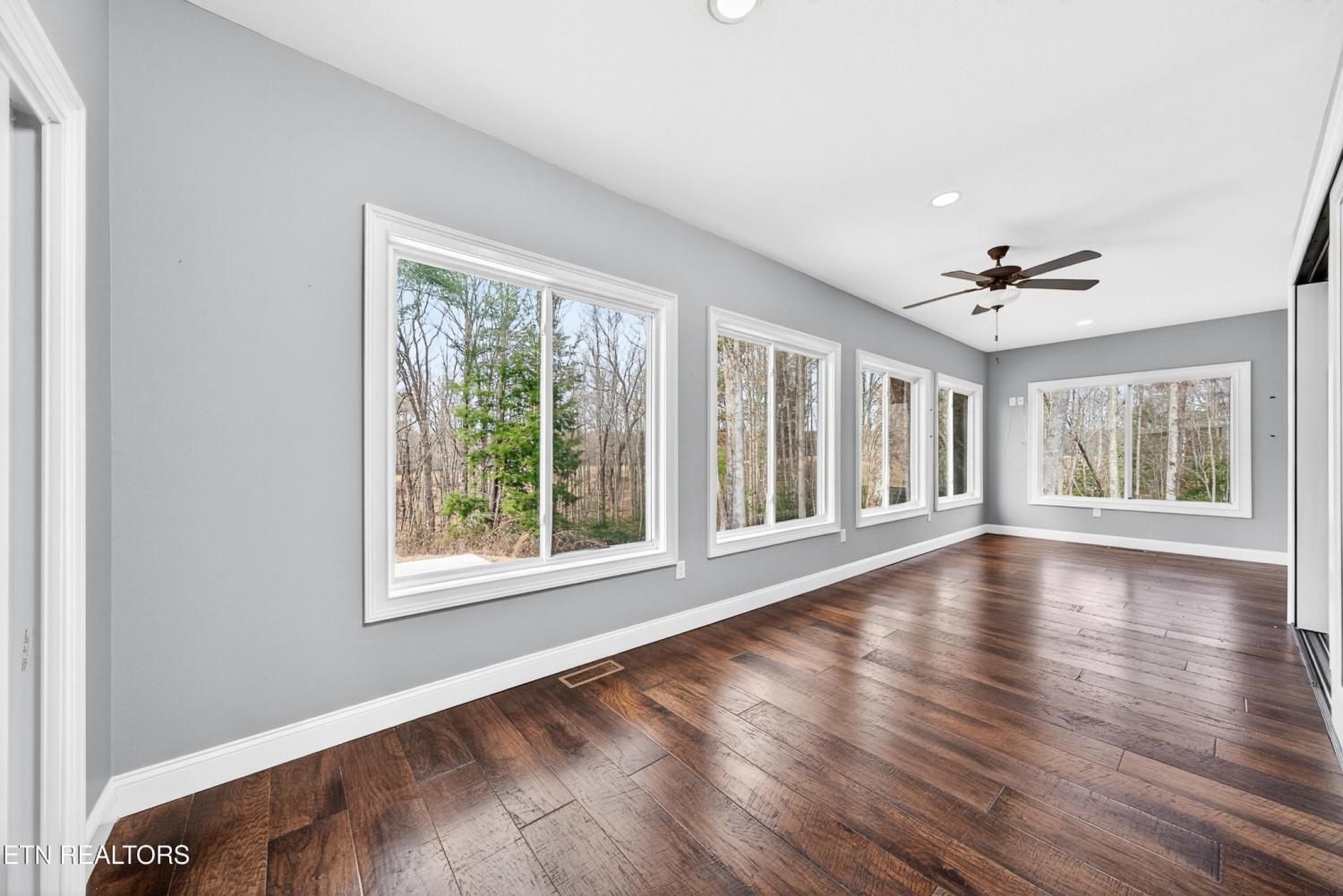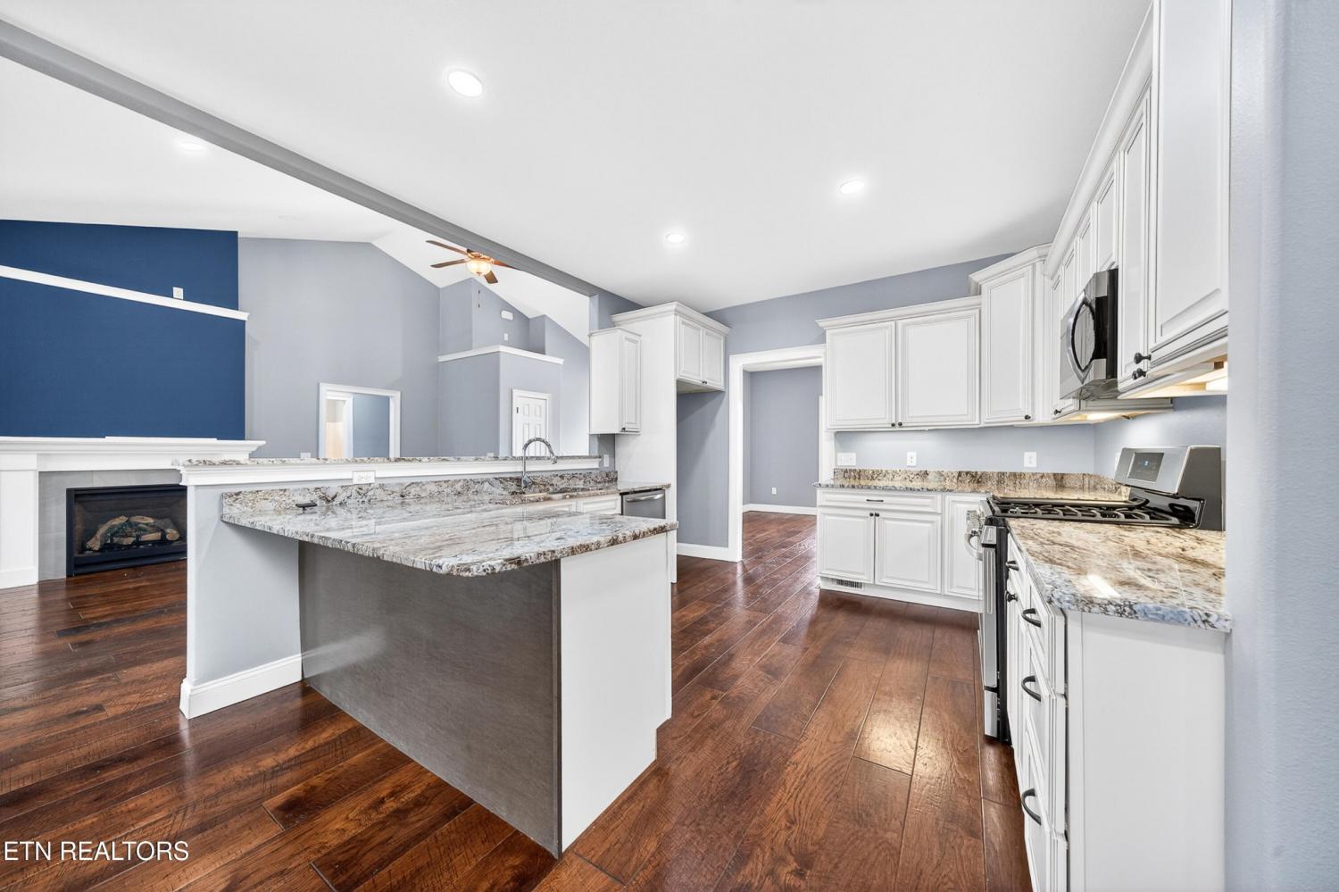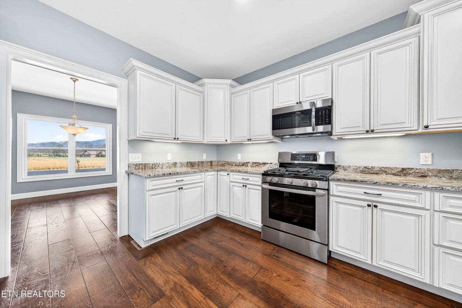 Like-New Mountain Vista Beauty with Stunning Views Take a look at this 2023 home in beautiful Mountain Vista with over 2,800sf, stunning mountain views, and a peaceful cul-de-sac setting on 0.86 acres. This well-appointed home offers an open layout, quality finishes, oversized garage, split bedroom plan, and convenient access to the hospital, shopping, gas, Cumberland Mountain State Park, Bear Trace Golf Course, and a community pond for fishing. HIGHLIGHTS: • Built in 2023 and feels like new • Located in beautiful Mountain Vista on a quiet cul-de-sac with only 3 other homes • Situated on approximately 0.86 acres with a peaceful country feel • Beautiful mountain views from the home and covered front porch • Over 2,800sf of living space • Convenient location: 8 miles to the hospital, 6 miles to shopping, 2.5 miles to gas, and 4 miles to Cumberland Mountain State Park and Bear Trace Golf Course • Oversized 2-car garage with insulated door and walk-in storage/workshop area • Covered concrete front porch and rear concrete patio • Double front doors for easy moving and a welcoming entry • Wide plank hardwood flooring throughout main living areas • Luxury vinyl tile in the bathrooms and laundry room • Double-hung vinyl windows • Open living room with vaulted ceiling and gas log fireplace • Large 8-foot glass sliding expanding doors opening the sunroom to the living room • Spacious sunroom with additional sliders leading to the office/flex space • Small flex room off the sunroom and kitchen, perfect for an office or mudroom • Beautiful kitchen with soft-close cabinets, granite countertops, counter seating, under-cabinet lighting, disposal, and a large walk-in pantry • Eat-in coffee bar area • Stainless steel appliances including a new 5-burner gas range, over-the-range microwave, and dishwasher • Split bedroom floor plan for added privacy • Spacious primary suite with trey ceiling • Nice primary bath with double sink granite vanity, curbless walk-in