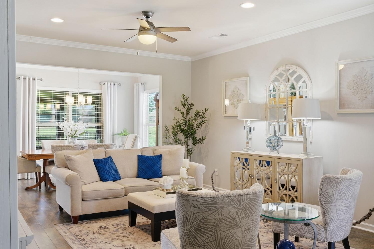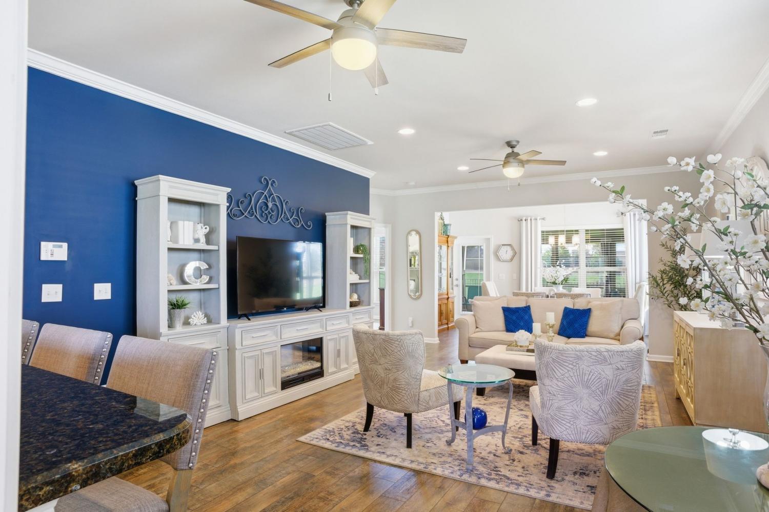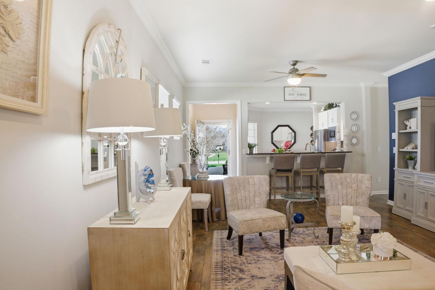 See PHOTOS for Floor Plan and Improvements. Amazing Del Webb 55+ Community features Indoor+ Outdoor Pool, Fitness Center, Tennis, Pickleball, Clubhouse with many activities, Dog Park + more. MINT condition, single story home, 2 BR Noir Coast Plan with sunroom, 3-season porch (20'x10'), and 2 car garage. Granite countertops, staggered cabinets in the kitchen, and beautiful wood look laminate in the main living area. Over $50k of upgrades which includes custom walk-in primary closet, 2.5" wood blinds throughout, 2 ceiling fans in the living room, front storm door, rear French door with interior blinds and 3 barstools (remain). The outdoor space includes 3-season porch with screens and plexi-glass windows with portable air conditioner, full yard irrigation, rear yard aluminum fence, garage cabinets with workbench, utility sink and garage key pad. New roof August 2025 and the HOA maintains the yard! This home has it ALL and will sell quickly. Call Nancy Ross 615-566-8064 with any questions.