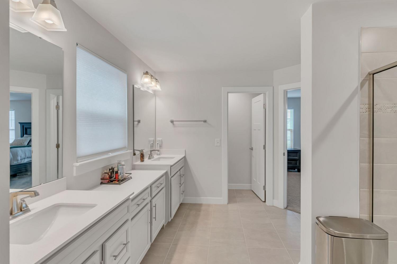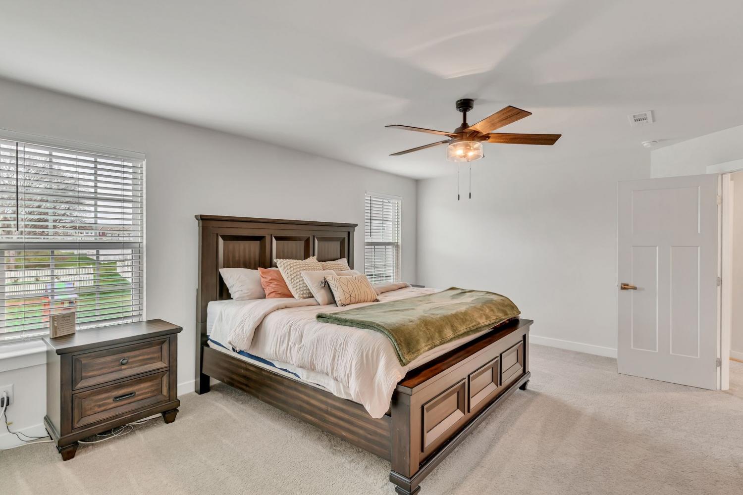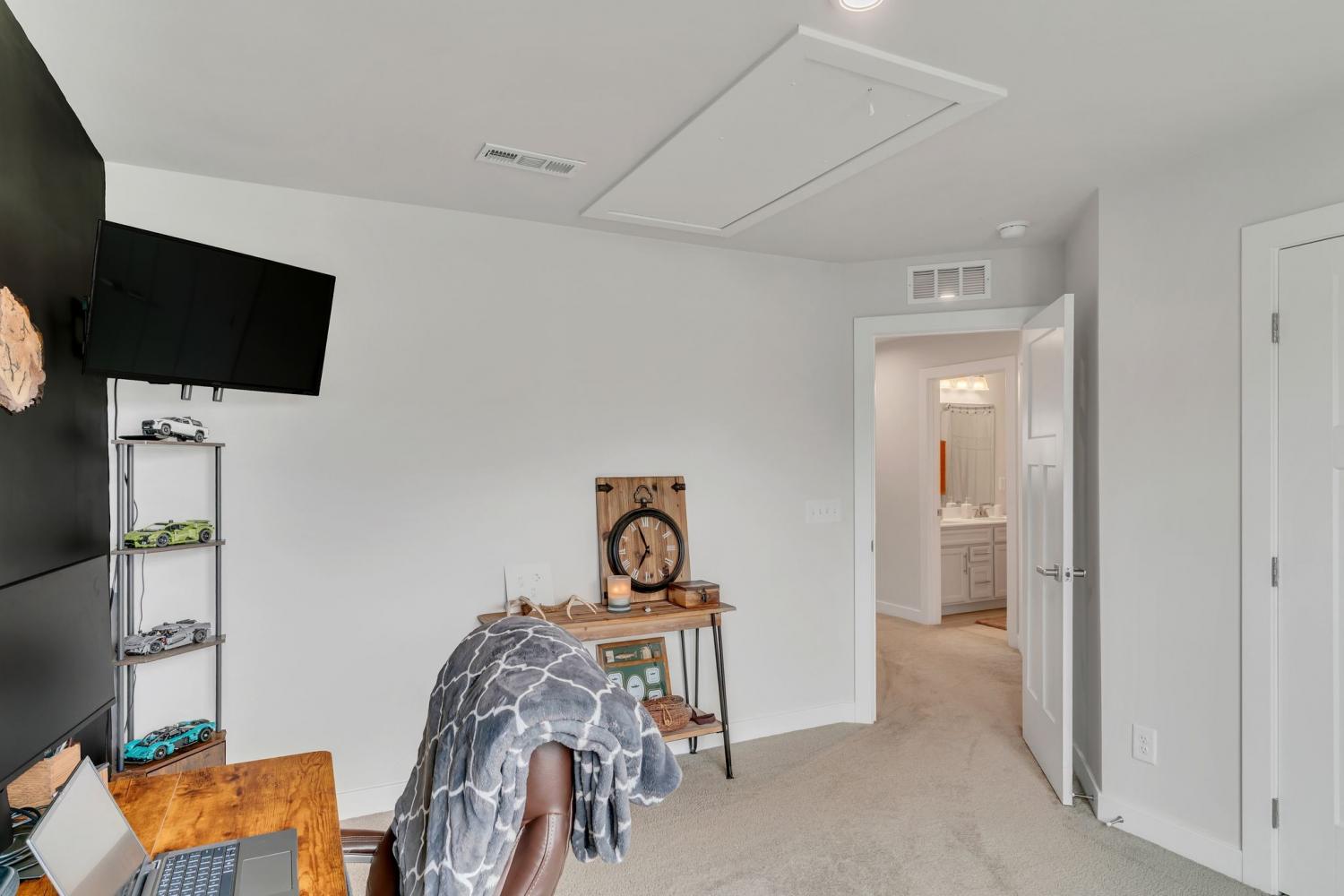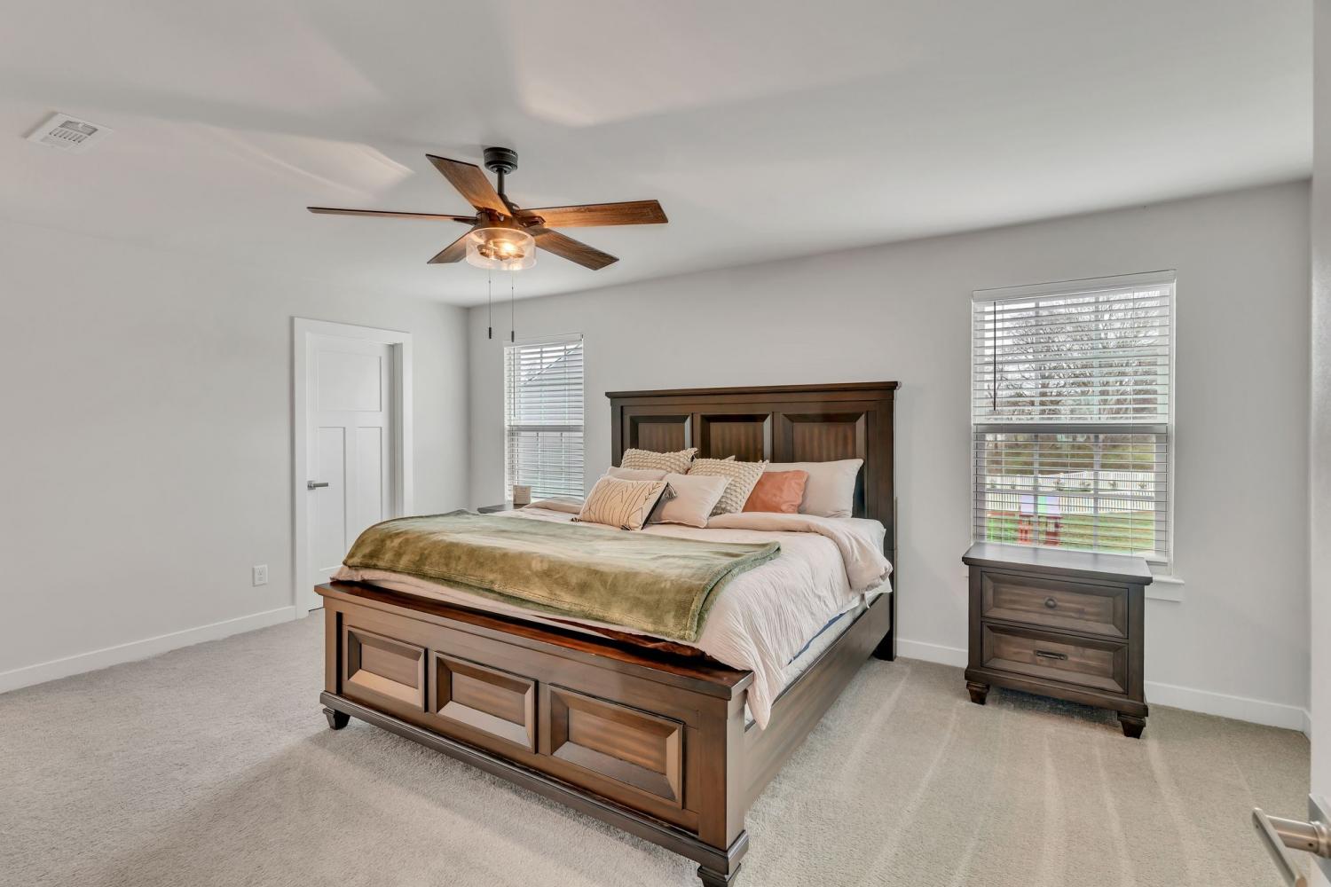 Seller is offering $5000 closing cost assistance with acceptable offer! Welcome to this beautifully designed home offering over 3,000 square feet of thoughtfully planned living space. Just over a year old, this spacious five-bedroom home combines modern style with everyday functionality. The main level features an in-law suite w/ full bath perfect for guests or multi-generational living, along with a dedicated office ideal for working from home. The heart of the home is the stunning kitchen, complete with a huge island, quartz countertops, upgraded cabinetry, and a walk-in pantry. The eat-in kitchen offers plenty of space for a large dining table, making it perfect for gatherings and everyday living. Upstairs, you’ll find a large primary suite with tile walk in shower, matching double vanity with quartz countertops and 2 large walk in closets. The upstairs of this home also features 3 more spacious guest bedrooms with a full guest bath including double vanity sinks, upstairs attic room with pulldown ladder for extra storage space and a large bonus room perfect for gatherings and hosting. Step outside to enjoy the extended covered patio with curtains for extra privacy, fully fenced in backyard, ideal for pets, play or relaxing evenings outdoors. With its flexible layout, modern finishes, and ample space, this nearly new home offers the perfect blend of comfort and style.