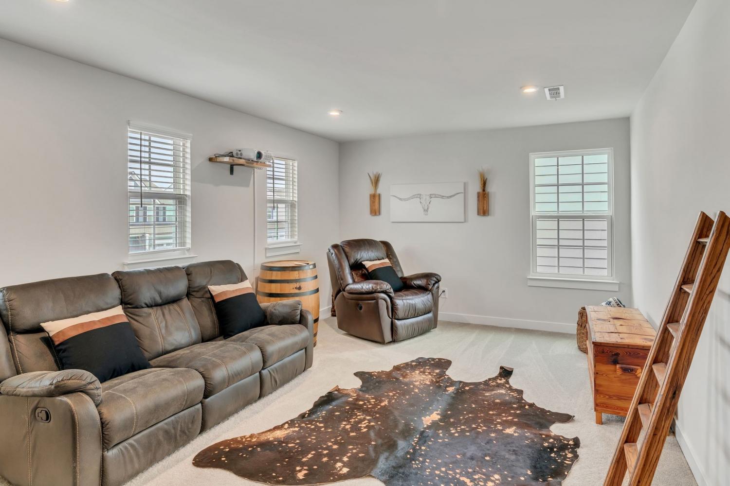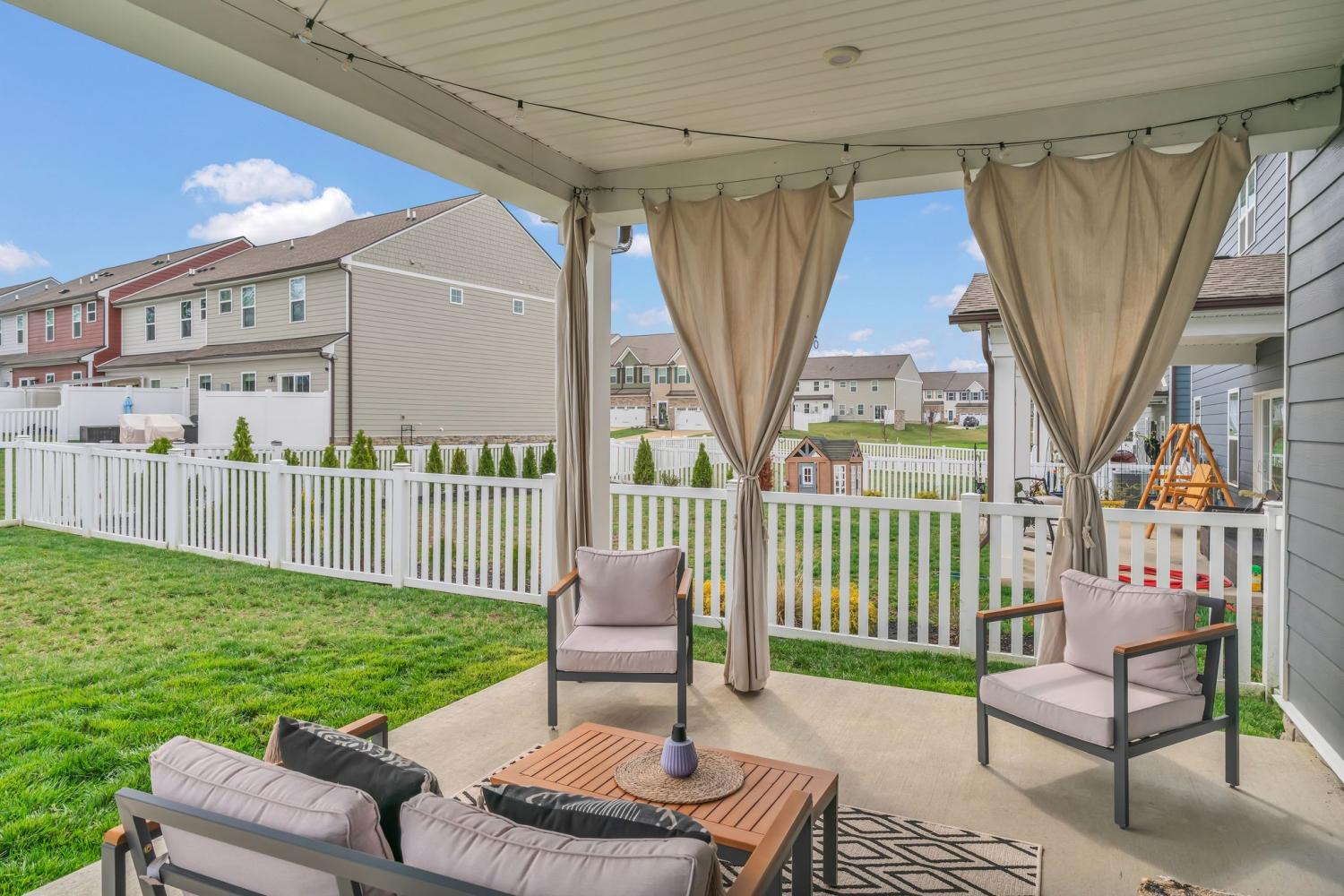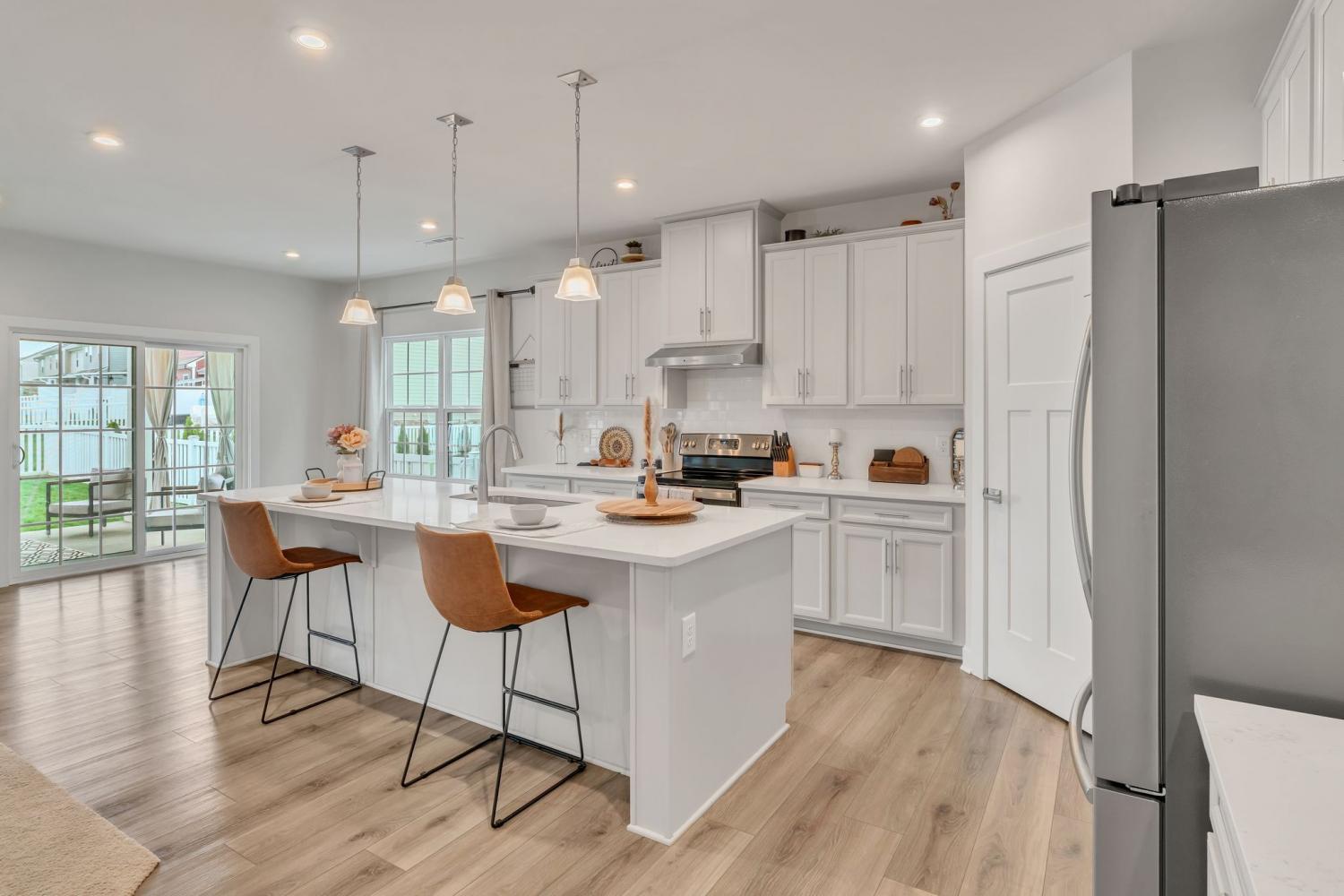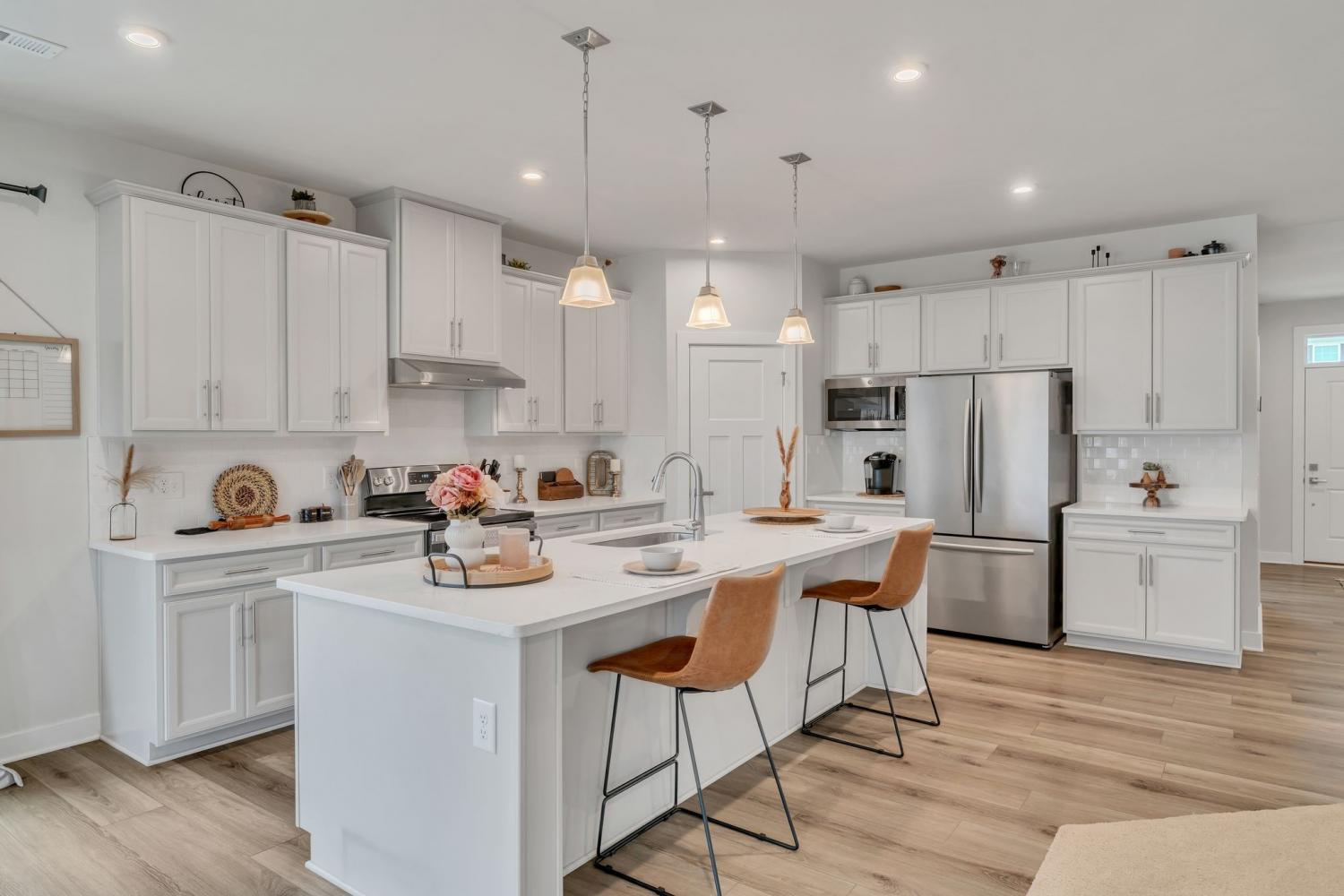 Seller is offering $5000 closing cost assistance with acceptable offer! Welcome to this beautifully designed home offering over 3,000 square feet of thoughtfully planned living space. Just over a year old, this spacious five-bedroom home combines modern style with everyday functionality. The main level features an in-law suite w/ full bath perfect for guests or multi-generational living, along with a dedicated office ideal for working from home. The heart of the home is the stunning kitchen, complete with a huge island, quartz countertops, upgraded cabinetry, and a walk-in pantry. The eat-in kitchen offers plenty of space for a large dining table, making it perfect for gatherings and everyday living. Upstairs, you’ll find a large primary suite with tile walk in shower, matching double vanity with quartz countertops and 2 large walk in closets. The upstairs of this home also features 3 more spacious guest bedrooms with a full guest bath including double vanity sinks, upstairs attic room with pulldown ladder for extra storage space and a large bonus room perfect for gatherings and hosting. Step outside to enjoy the extended covered patio with curtains for extra privacy, fully fenced in backyard, ideal for pets, play or relaxing evenings outdoors. With its flexible layout, modern finishes, and ample space, this nearly new home offers the perfect blend of comfort and style.