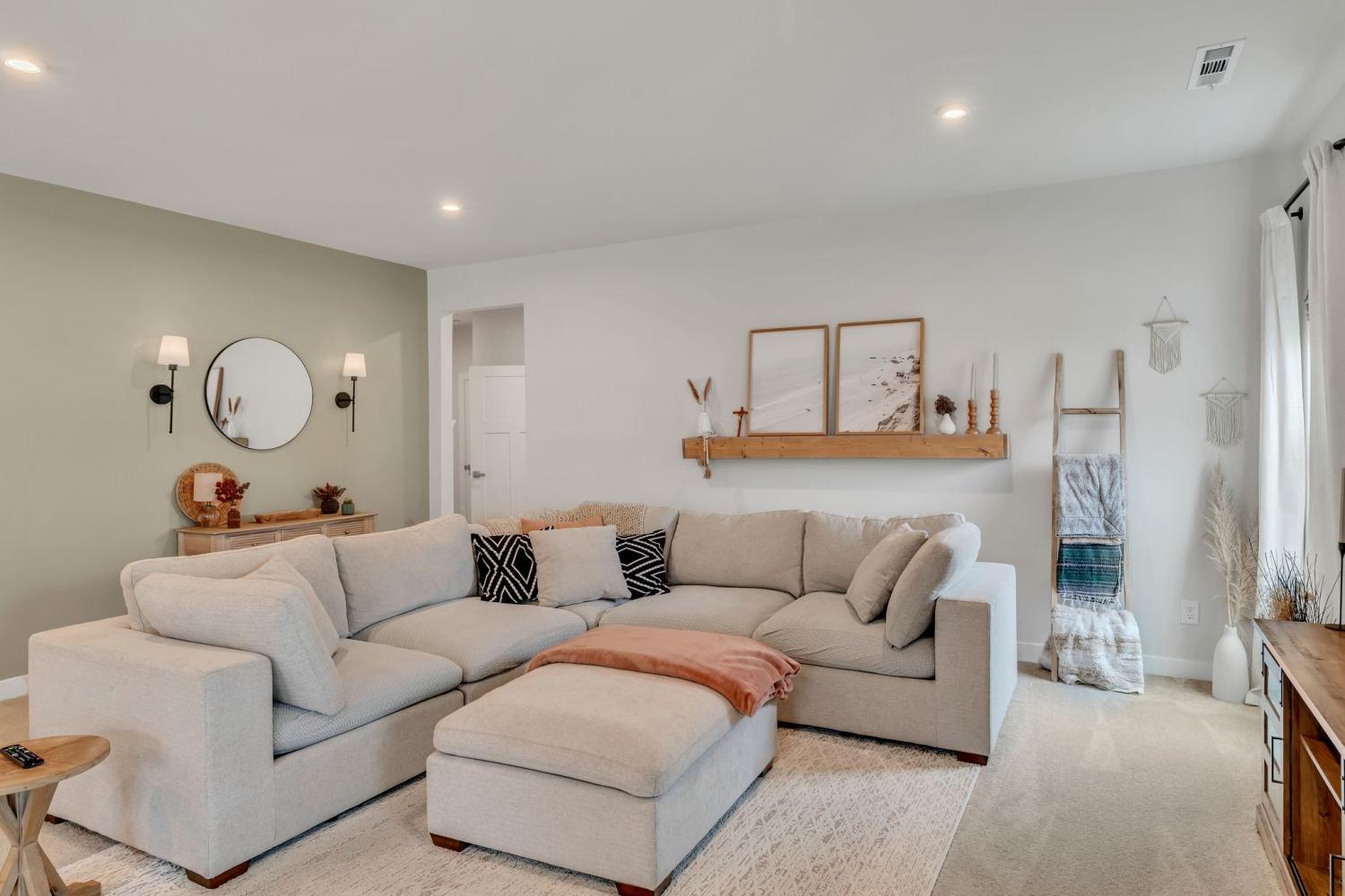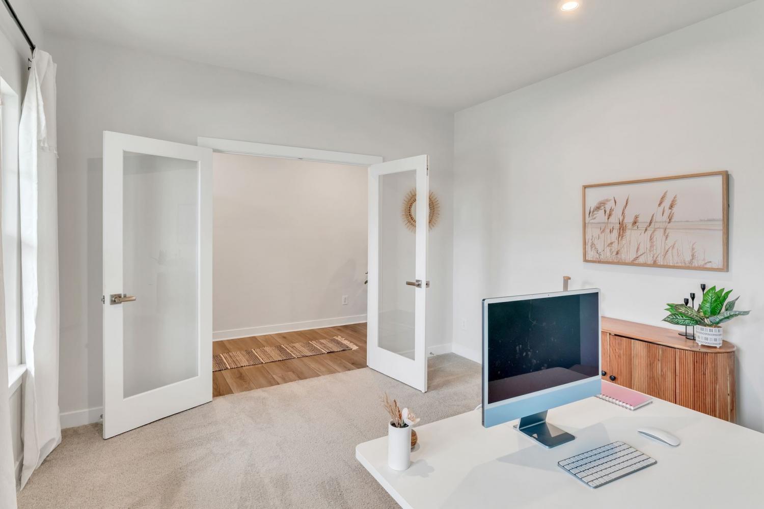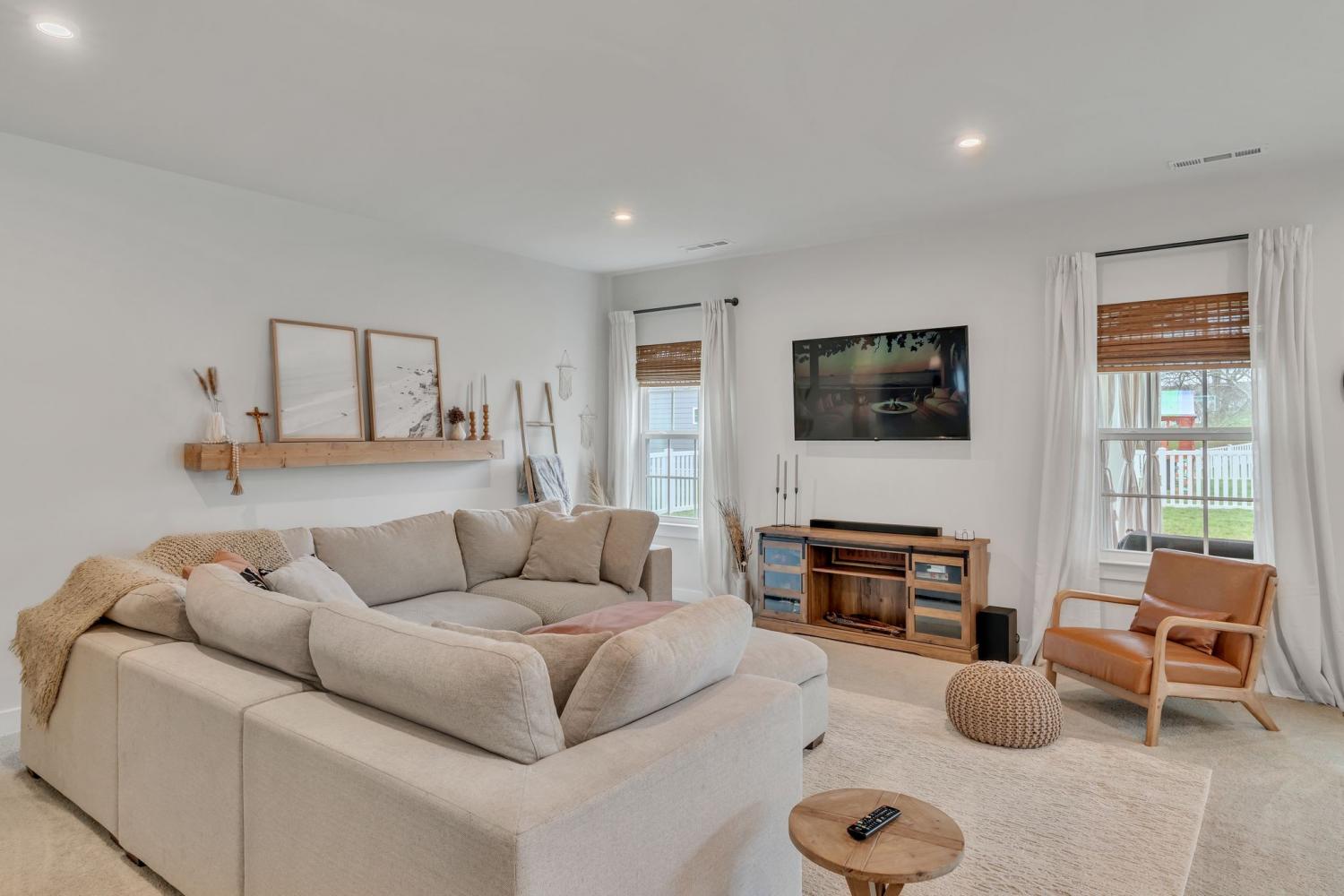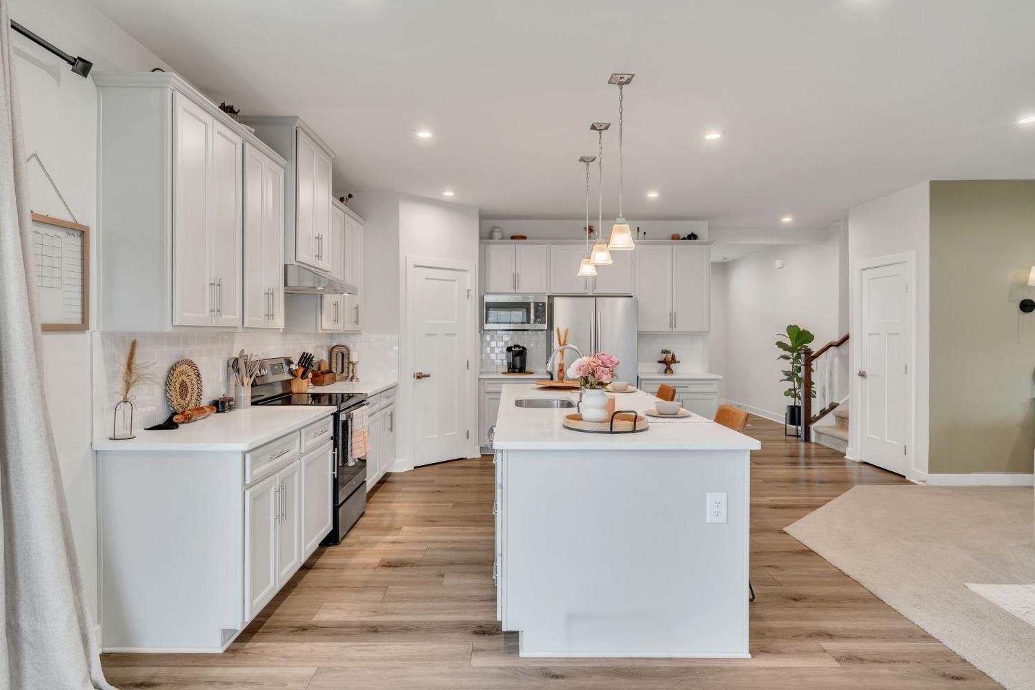 Seller is offering $5000 closing cost assistance with acceptable offer! Welcome to this beautifully designed home offering over 3,000 square feet of thoughtfully planned living space. Just over a year old, this spacious five-bedroom home combines modern style with everyday functionality. The main level features an in-law suite w/ full bath perfect for guests or multi-generational living, along with a dedicated office ideal for working from home. The heart of the home is the stunning kitchen, complete with a huge island, quartz countertops, upgraded cabinetry, and a walk-in pantry. The eat-in kitchen offers plenty of space for a large dining table, making it perfect for gatherings and everyday living. Upstairs, you’ll find a large primary suite with tile walk in shower, matching double vanity with quartz countertops and 2 large walk in closets. The upstairs of this home also features 3 more spacious guest bedrooms with a full guest bath including double vanity sinks, upstairs attic room with pulldown ladder for extra storage space and a large bonus room perfect for gatherings and hosting. Step outside to enjoy the extended covered patio with curtains for extra privacy, fully fenced in backyard, ideal for pets, play or relaxing evenings outdoors. With its flexible layout, modern finishes, and ample space, this nearly new home offers the perfect blend of comfort and style.