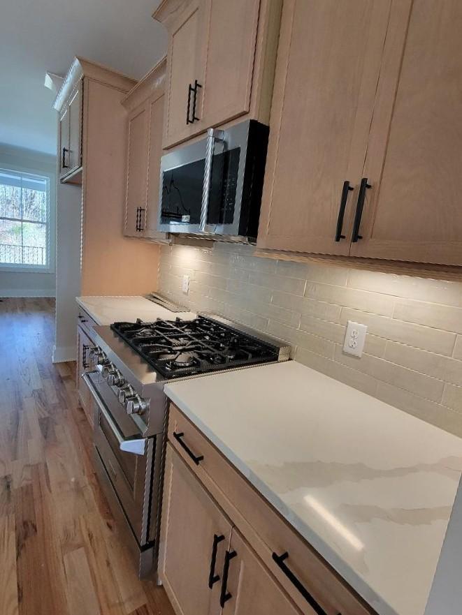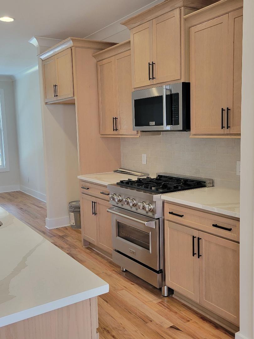 $10,000 toward closing costs and prepaids!!! Fabulous new construction with so many upgrades - sand and finish hardwood throughout the entire first floor, hardwood steps, quartz throughout, Delta matte black plumbing fixtures, fashionable stainless ZLine appliances including gas range. Enormous island in the kitchen is perfect for quick meals; extra storage below. Extensive trim. Matte black lights and fans. Extra large ceramic shower in primary bath. Tankless gas water heater. Trane HVAC. Rocking chair front porch; covered patio with additional pad. Estimated taxes.