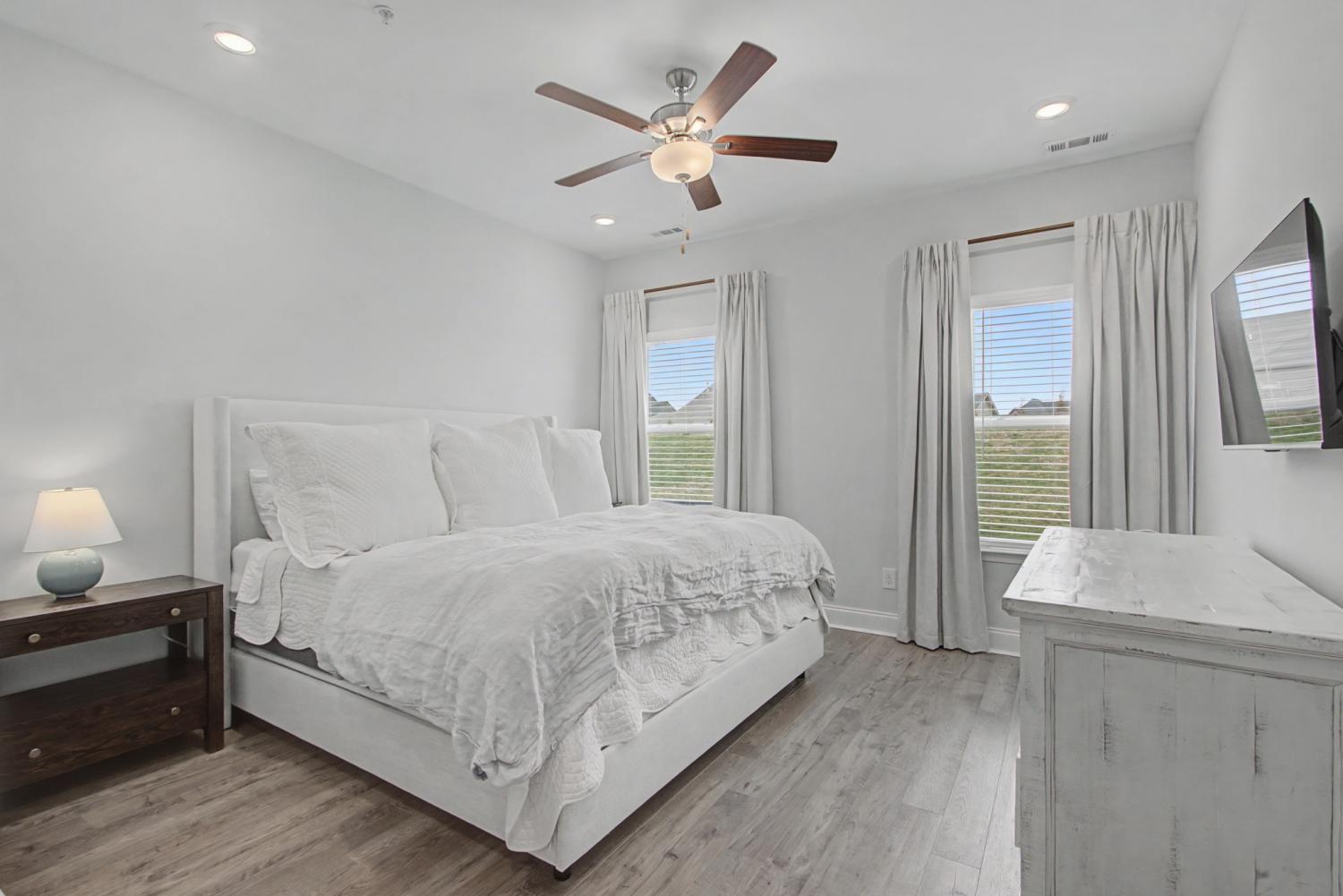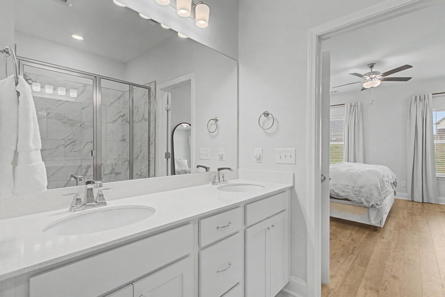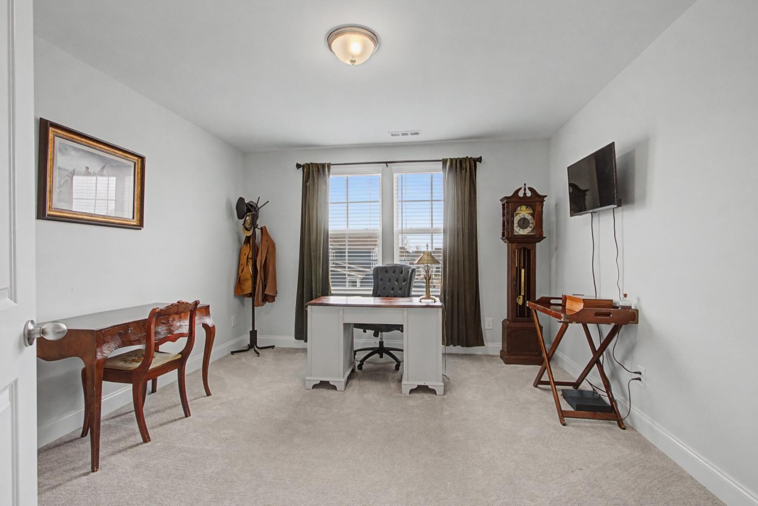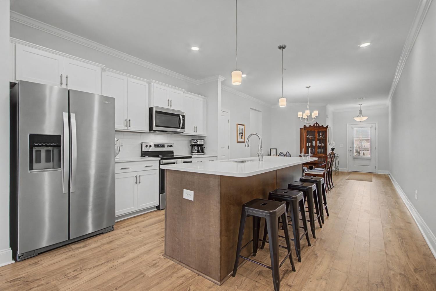 Wonderfully maintained and spacious home in amenity-filled Harvest Point! Rare features including first floor Primary Suite . Even more rare, TWO large storage rooms upstairs! Perfectly located to take full advantage of extensive network of walking trails steps away from the backyard. No need to wait for new construction with this home ready for it's new owner. Open concept floor plan links dining, kitchen and living spaces beautifully. Stylish and functional kitchen features white shaker-style cabinetry, oversized island topped with striking white quartz countertops and is accented with modern stainless appliances. Roomy primary suite with double vanities and glass shower in spacious bath. Extra large walk-in closet, too. Rear patio opens up to backyard with adjoins common area and trails. Neighborhood amenities abound here with resort-style pool, playground, dog park, and community garden. Very convenient to shopping centers, Saturn Parkwayrk and heart of Spring Hill.