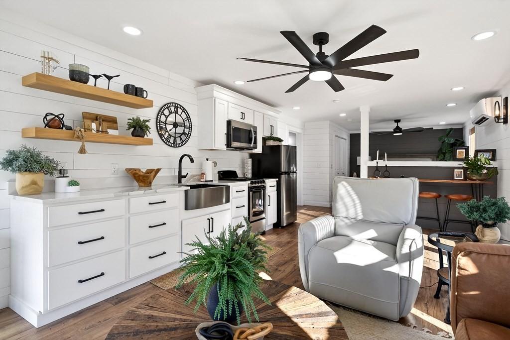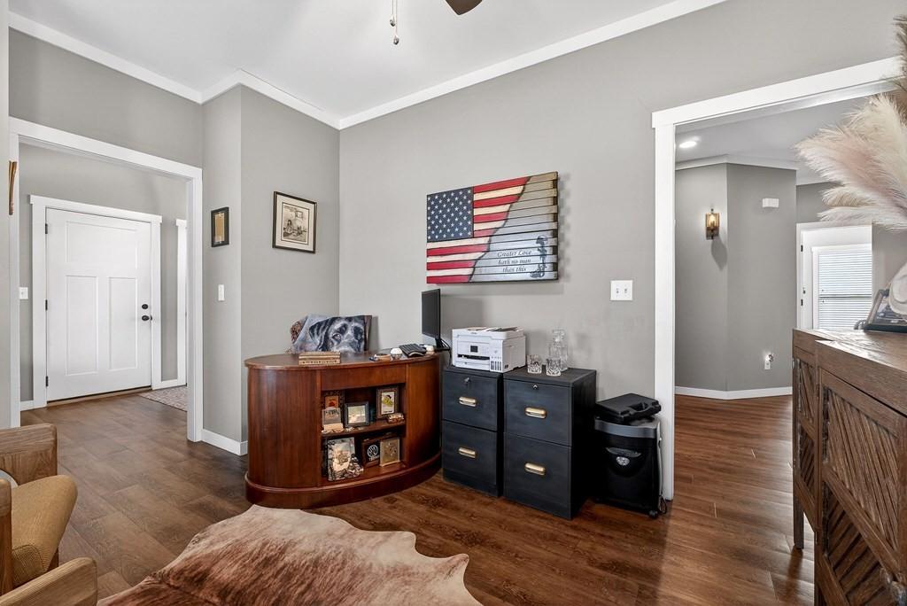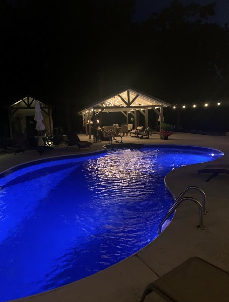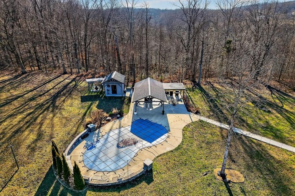 Welcome to your dream home, a perfect blend of rustic charm and modern luxury, nestled on 10.7 picturesque acres just outside town. This stunning estate offers comfortable, elegant living and entertaining. The main house features 1,838 sq. ft. of thoughtfully designed space, including 3 BR's, 2 baths, and an office that can double as a 4th bedroom. High-end finishes like a fireplace, a tankless w. h. , and new app. enhance the space. A well-equipped kit. with a lg. marble island and a breakfast nook offers serene views. The primary suite. includes a soaking tub, a walk-in shower, and ample stg. Relax in the spacious living area or enjoy outdoor features like a wrap-around porch, screen porch, and private hot tub, The property also includes a 1,200 sq. ft. guest house with a 2-car gar./workshop, whole house gen. overlooking an inviting pool. Add. amenities include a separate garage, a pavilion, pool house with a 1/2 bath, and two natural springs, offering privacy and beauty.