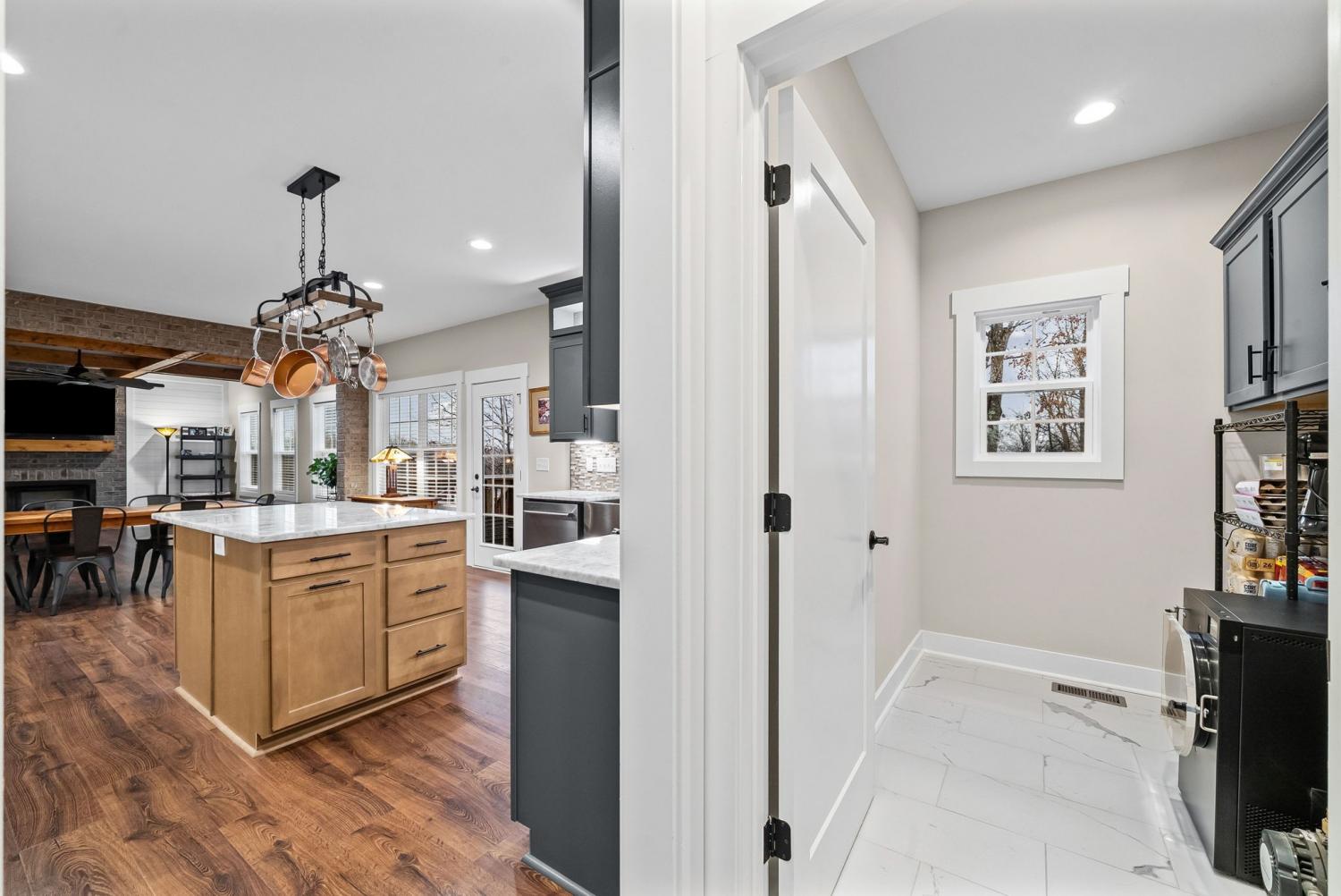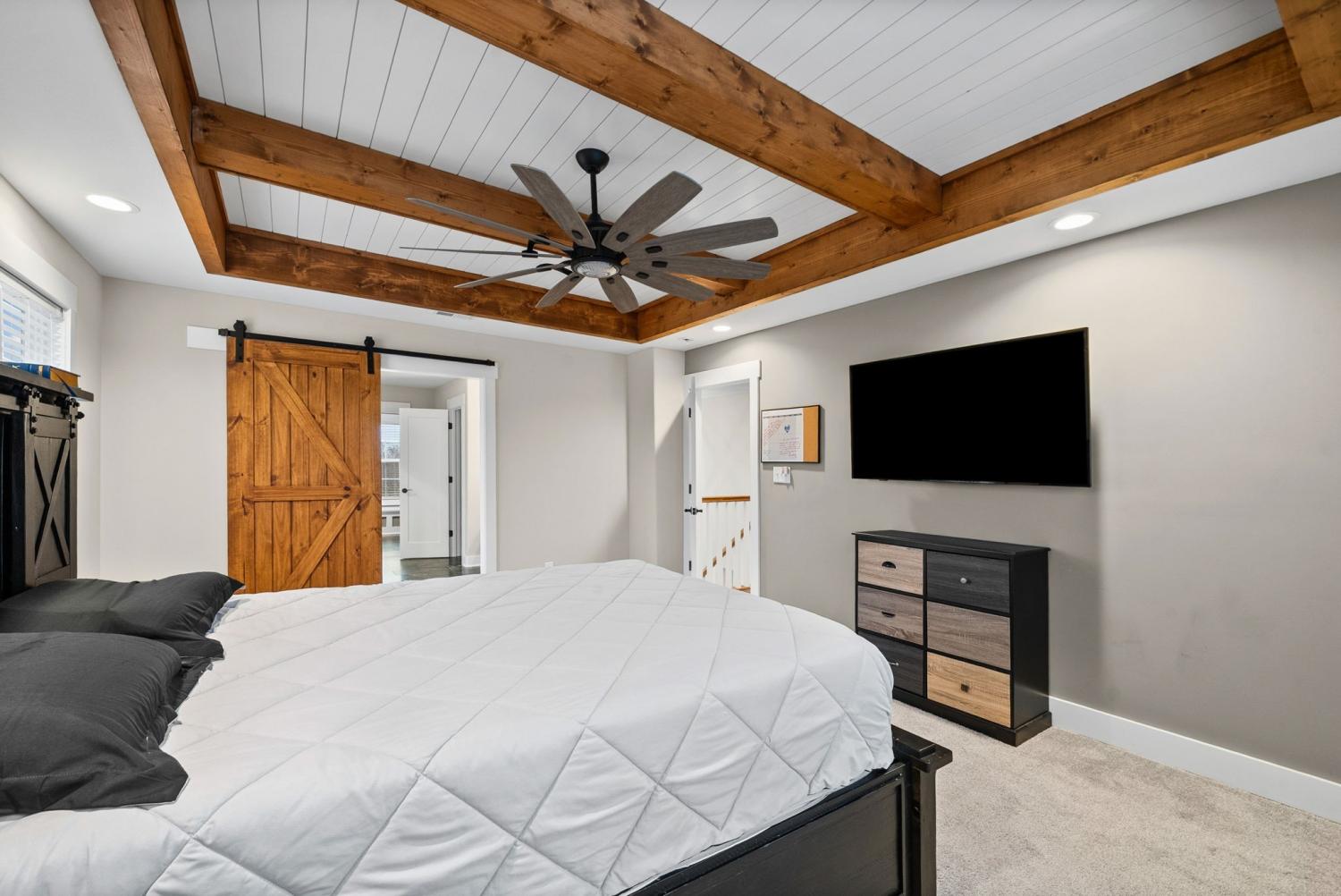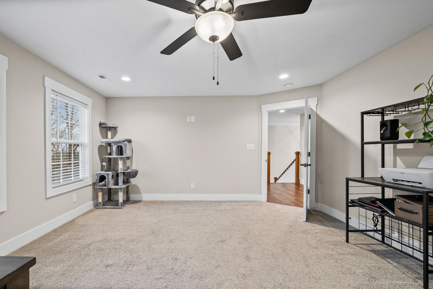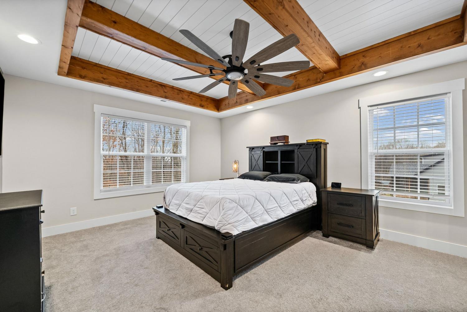 **NO HOA** Beautiful 4-bedroom, 2.5-bath home built in 2022, situated on a private 5.1-acre lot backing up to a secluded tree line with no HOA. Offering over 3,500 sq ft of living space, this home features an inviting entry foyer, formal dining room, and spacious living room—both the dining room and living room showcasing elegant coffered ceilings—with a gas fireplace located in the living room. The kitchen boasts high-end cabinetry, a large island, gas stove, and ample space for entertaining. The primary suite also features coffered ceilings and a large ensuite with double vanities and a massive walk-in closet, which includes washer and dryer hookups for added convenience. An additional washer and dryer hookup is located downstairs, offering flexible laundry options. Additional highlights include a covered rear deck, rear storage shed, concrete driveway with extra parking, and a 2-car garage. The home is equipped with a massive 500-gallon propane tank, capable of powering a generator, gas stove, and gas fireplace—providing efficiency and peace of mind. Enjoy modern finishes, privacy, and room to spread out both indoors and outdoors—country living with today’s conveniences.