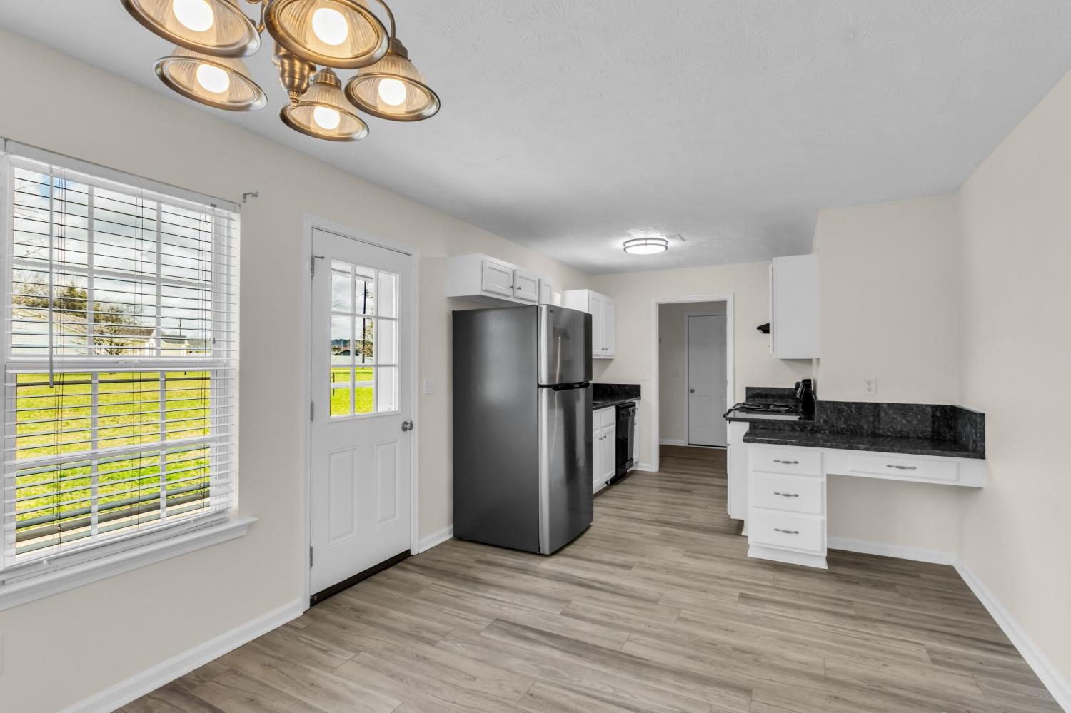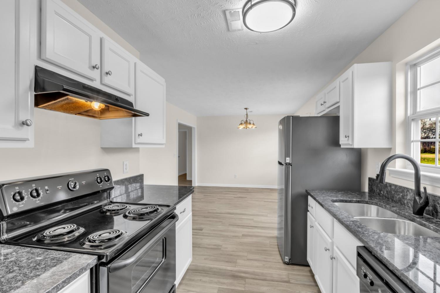 Beautifully updated home situated on nearly half an acre in cul-de-sac with a spacious yard and inviting outdoor living areas. The interior features vaulted ceilings, a desirable split-bedroom layout, and abundant natural light, creating an open and welcoming atmosphere. Extensive recent upgrades include new luxury plank flooring, fresh interior paint, refinished cabinetry, and upgraded trim and baseboards throughout. The kitchen has been enhanced with steel gray granite countertops, backsplash, and a new sink and faucet, while the bathrooms feature quartz countertops with new sinks and fixtures, giving the home a modern, updated feel. Major system improvements add long-term value, including a new Goodman HVAC system with smart thermostat and air purification system, updated plumbing with a new shut-off valve, and a new 50-gallon water heater. Enjoy relaxing on the covered front porch or entertaining on the patio, with plenty of outdoor space and a storage building that remains with the property. Conveniently located near shopping, dining, and major commuter routes. Move-in ready with thoughtful upgrades throughout!