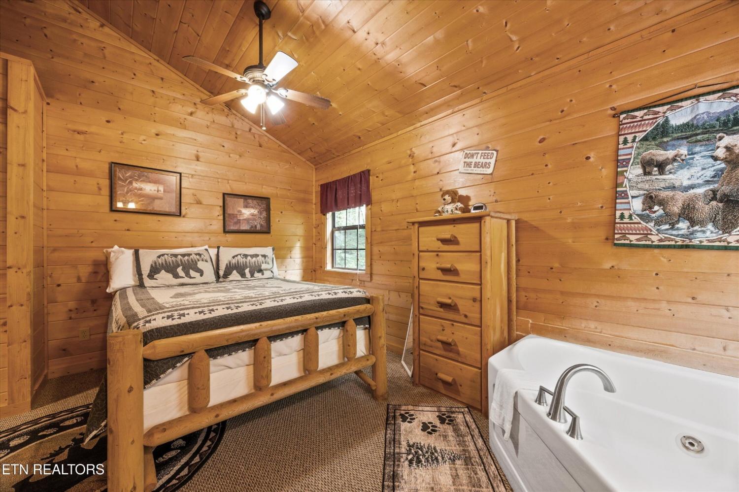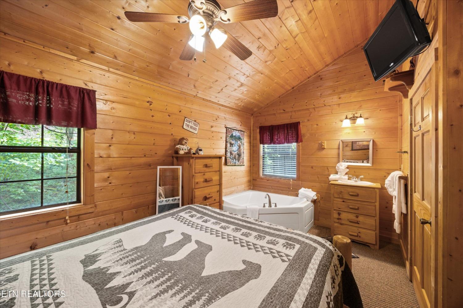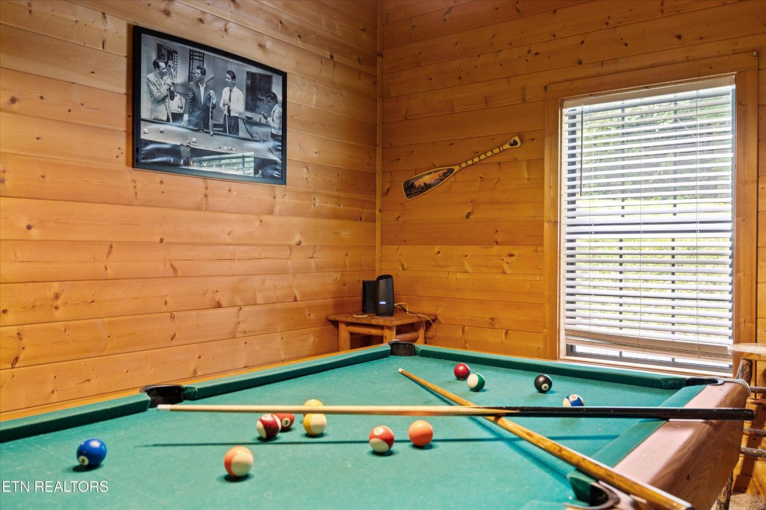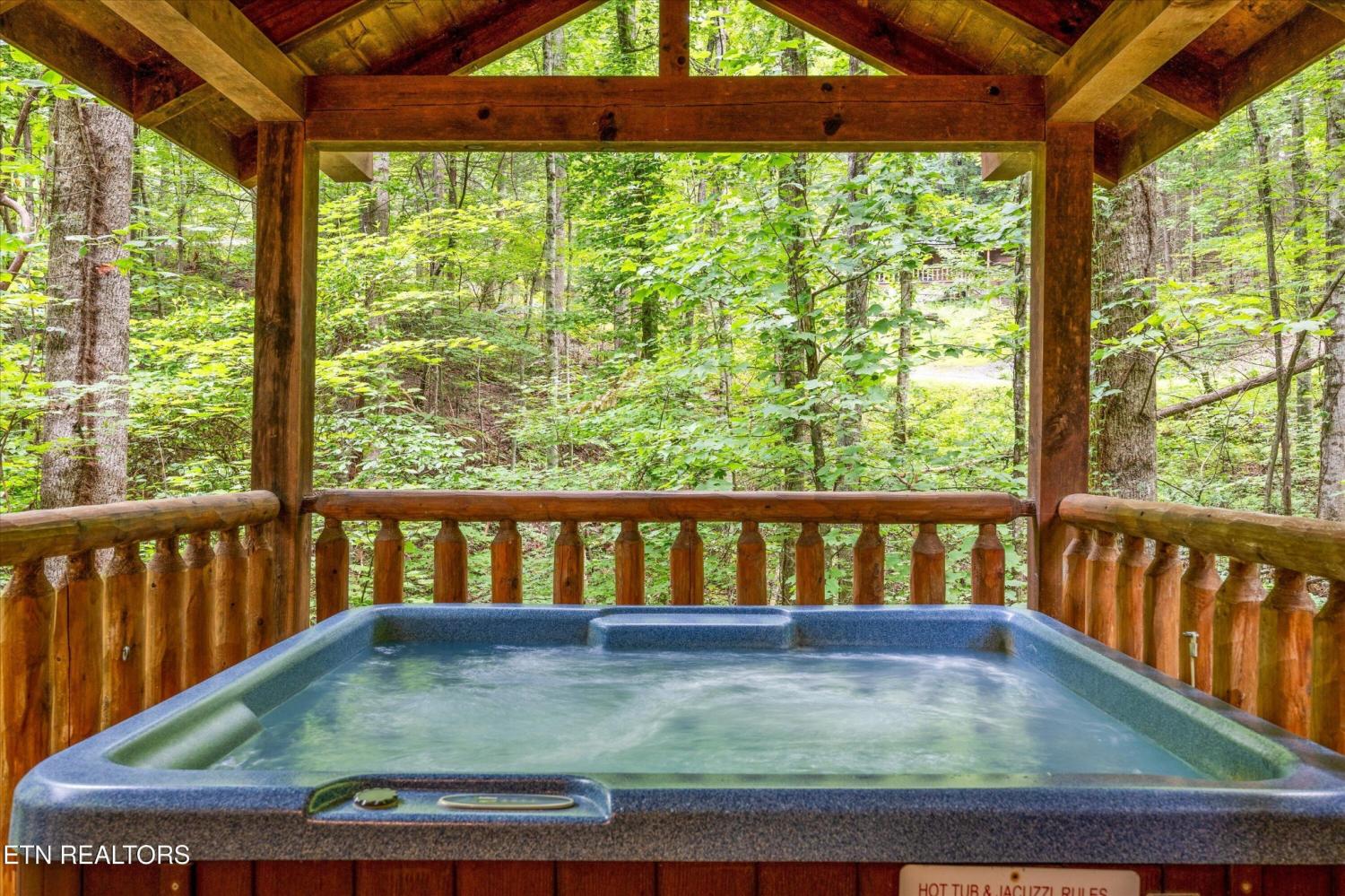 Welcome to Absolutely Bearable -- the charming bear-themed cabin in the Sky Harbor subdivision that's as cute as its name! From the moment you arrive, you'll be greeted by the wooden bears peeking over the roof at the entrance and the two more keeping watch along the side of the cabin. Freshly graveled parking makes for an easy arrival a long with seeing the recently stained cabin and deck, and once inside, you'll notice the kitchen and bathroom/laundry room have brand new flooring for a fresh, updated feel. Perfect for couples and honeymooners, this cozy getaway is filled with personality. Challenge your sweetheart to a game of pool with the 'Rat Pack' looking on from their spot above the table -- it's a playful touch that guests adore. Out back, the private deck is all about relaxation, featuring a bubbling hot tub surrounded by nothing but peaceful wooded views. Whether you're here for rental revenue, fun, or just a quiet escape, Absolutely Bearable is the kind of cabin that makes you smile from the moment you arrive.