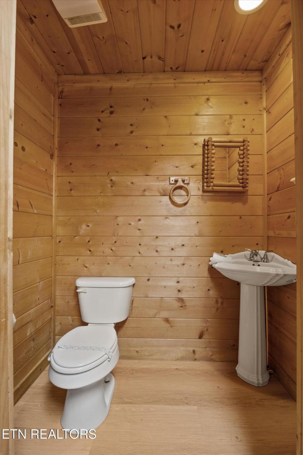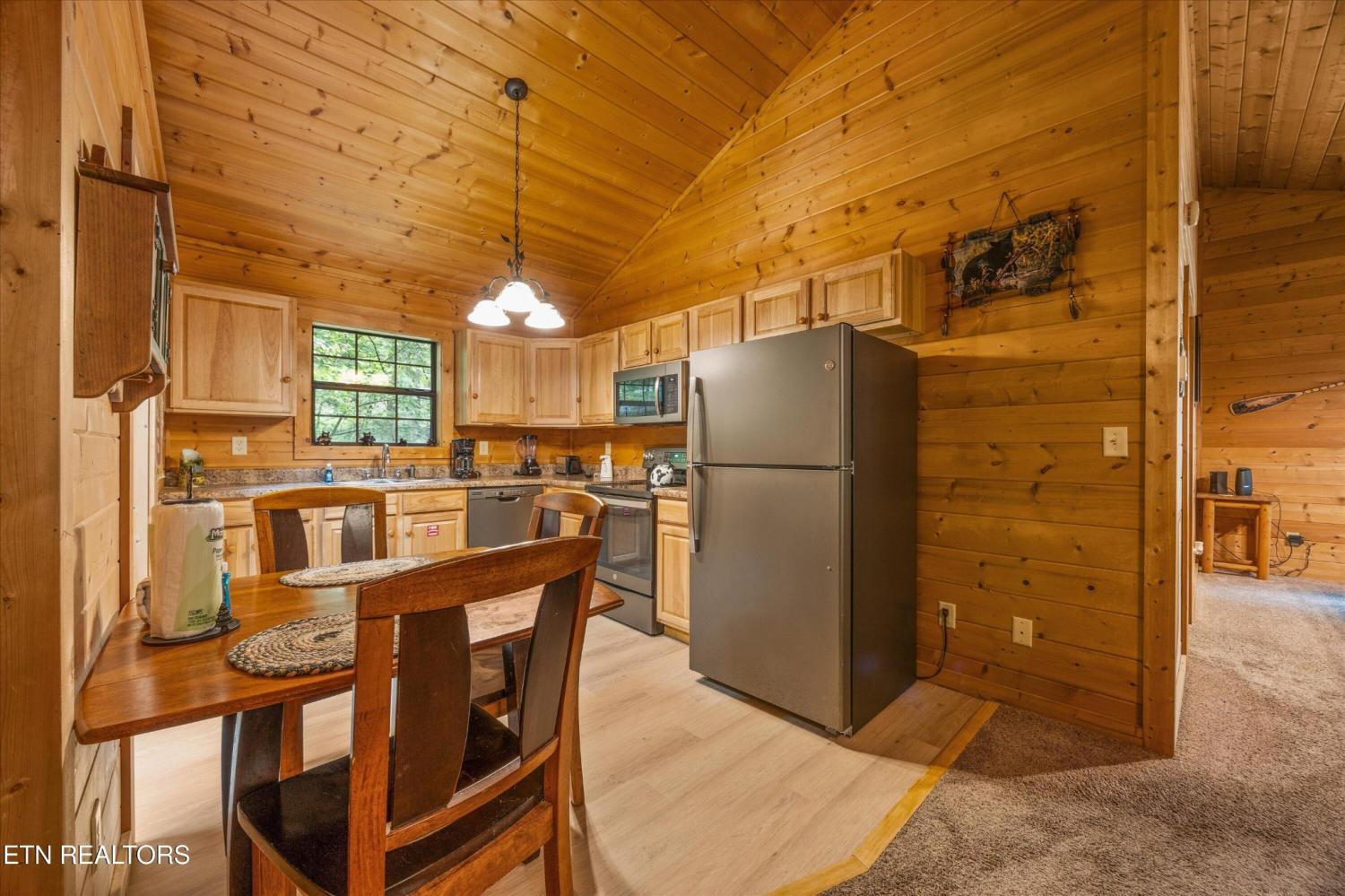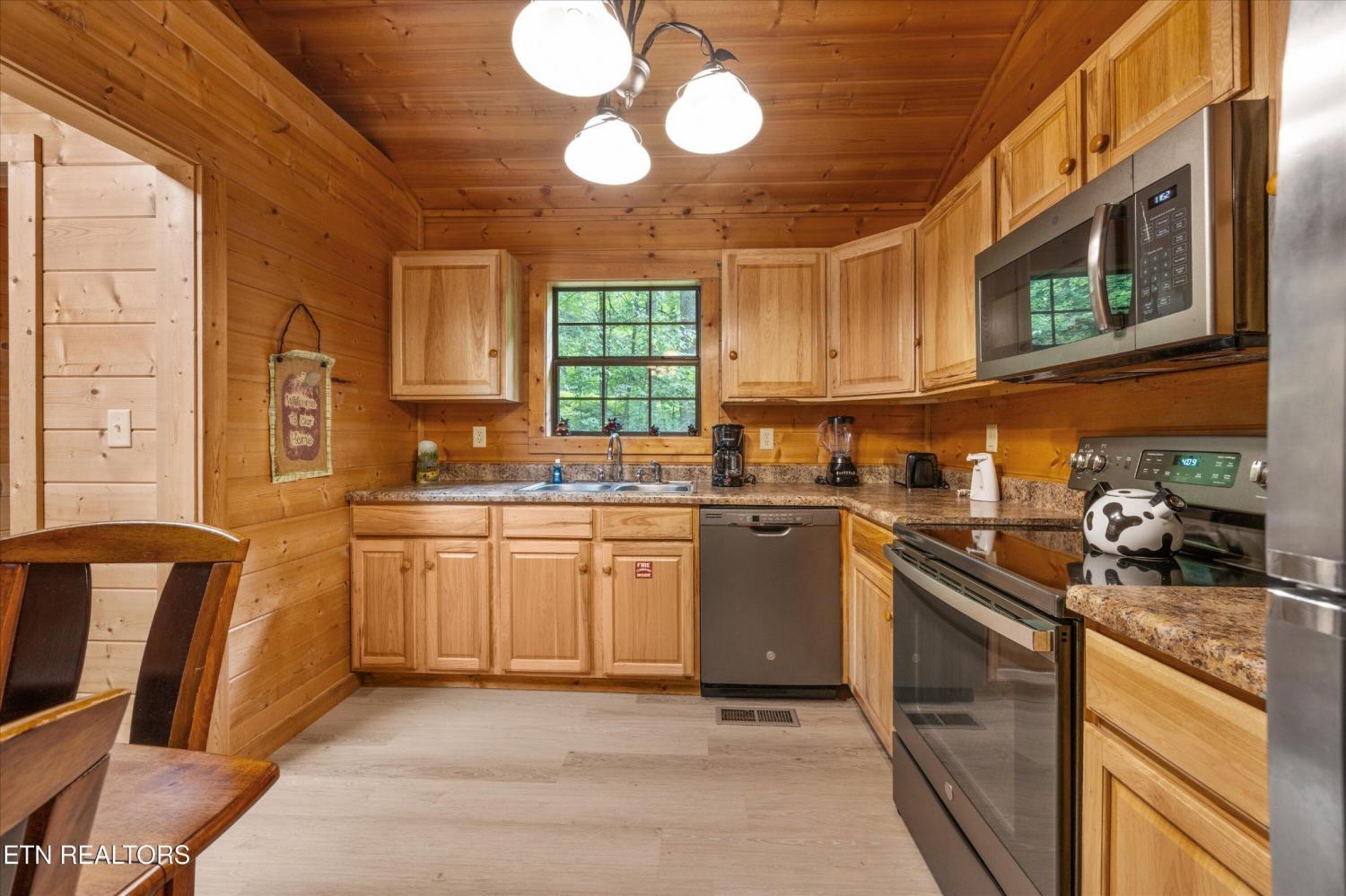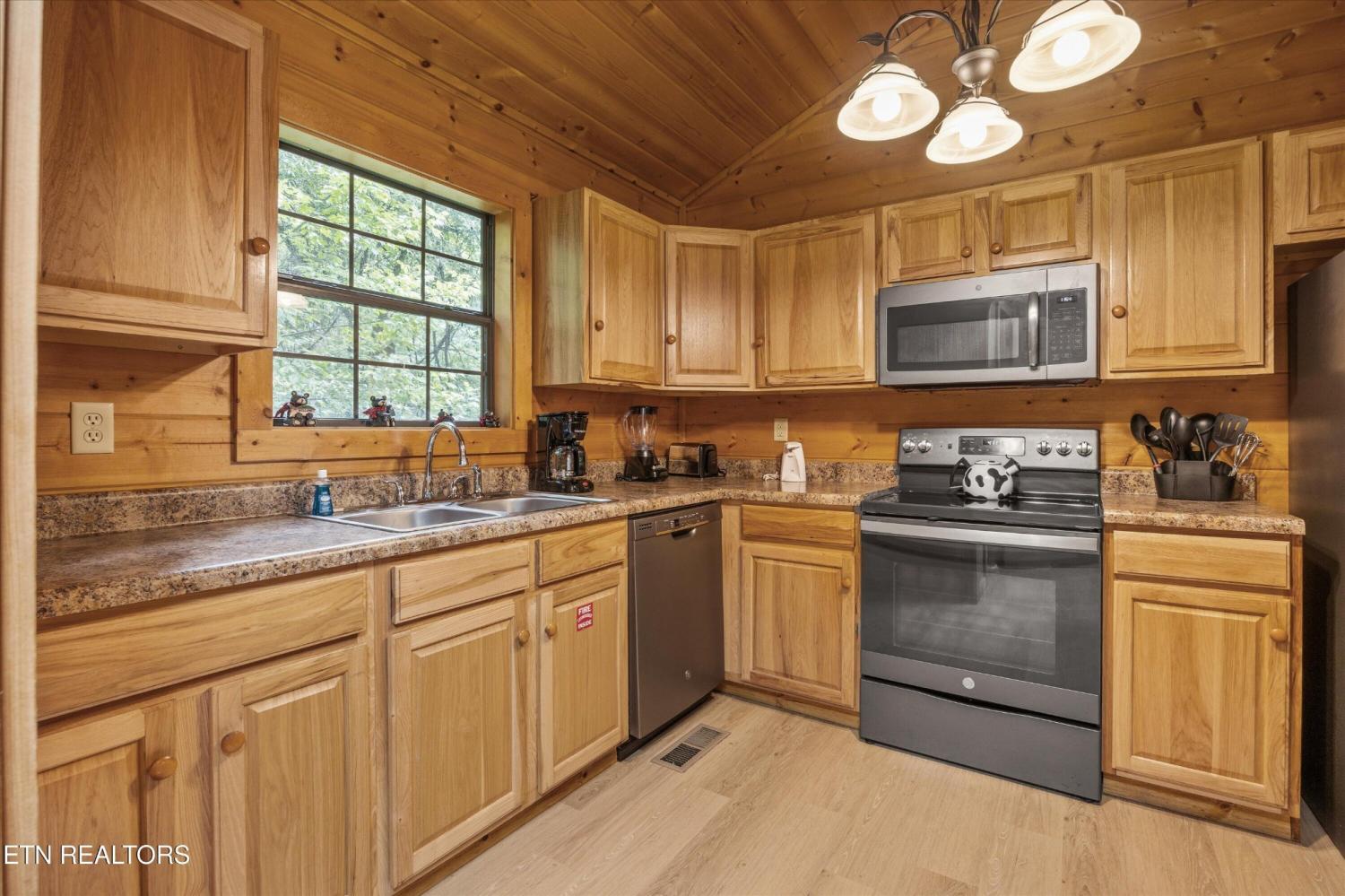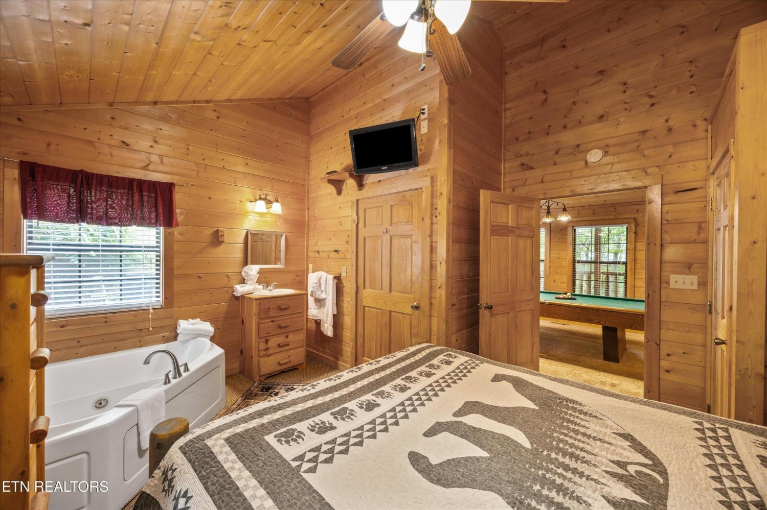 Welcome to Absolutely Bearable -- the charming bear-themed cabin in the Sky Harbor subdivision that's as cute as its name! From the moment you arrive, you'll be greeted by the wooden bears peeking over the roof at the entrance and the two more keeping watch along the side of the cabin. Freshly graveled parking makes for an easy arrival a long with seeing the recently stained cabin and deck, and once inside, you'll notice the kitchen and bathroom/laundry room have brand new flooring for a fresh, updated feel. Perfect for couples and honeymooners, this cozy getaway is filled with personality. Challenge your sweetheart to a game of pool with the 'Rat Pack' looking on from their spot above the table -- it's a playful touch that guests adore. Out back, the private deck is all about relaxation, featuring a bubbling hot tub surrounded by nothing but peaceful wooded views. Whether you're here for rental revenue, fun, or just a quiet escape, Absolutely Bearable is the kind of cabin that makes you smile from the moment you arrive.