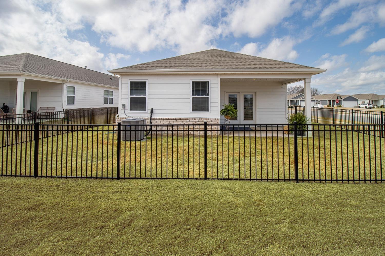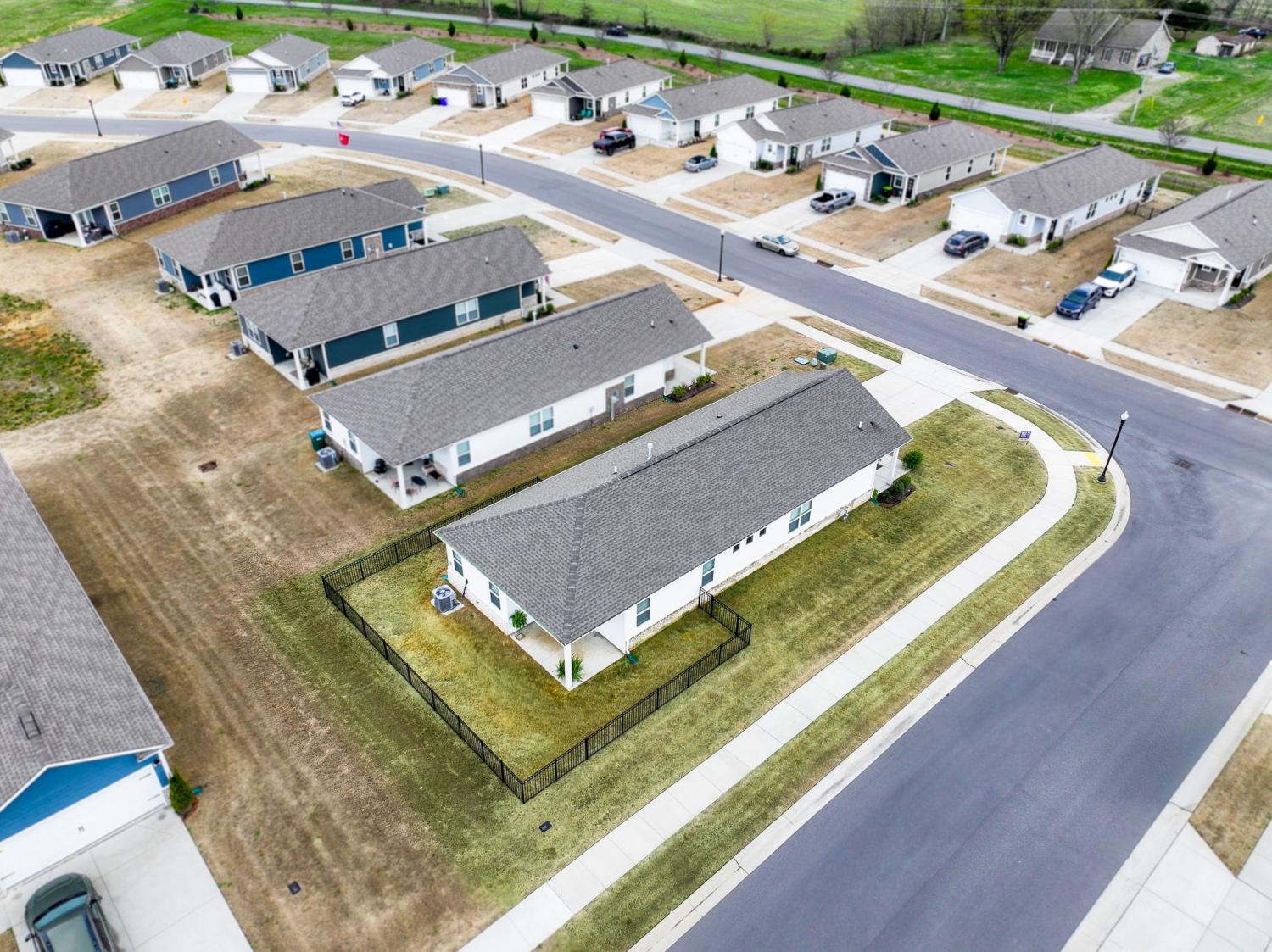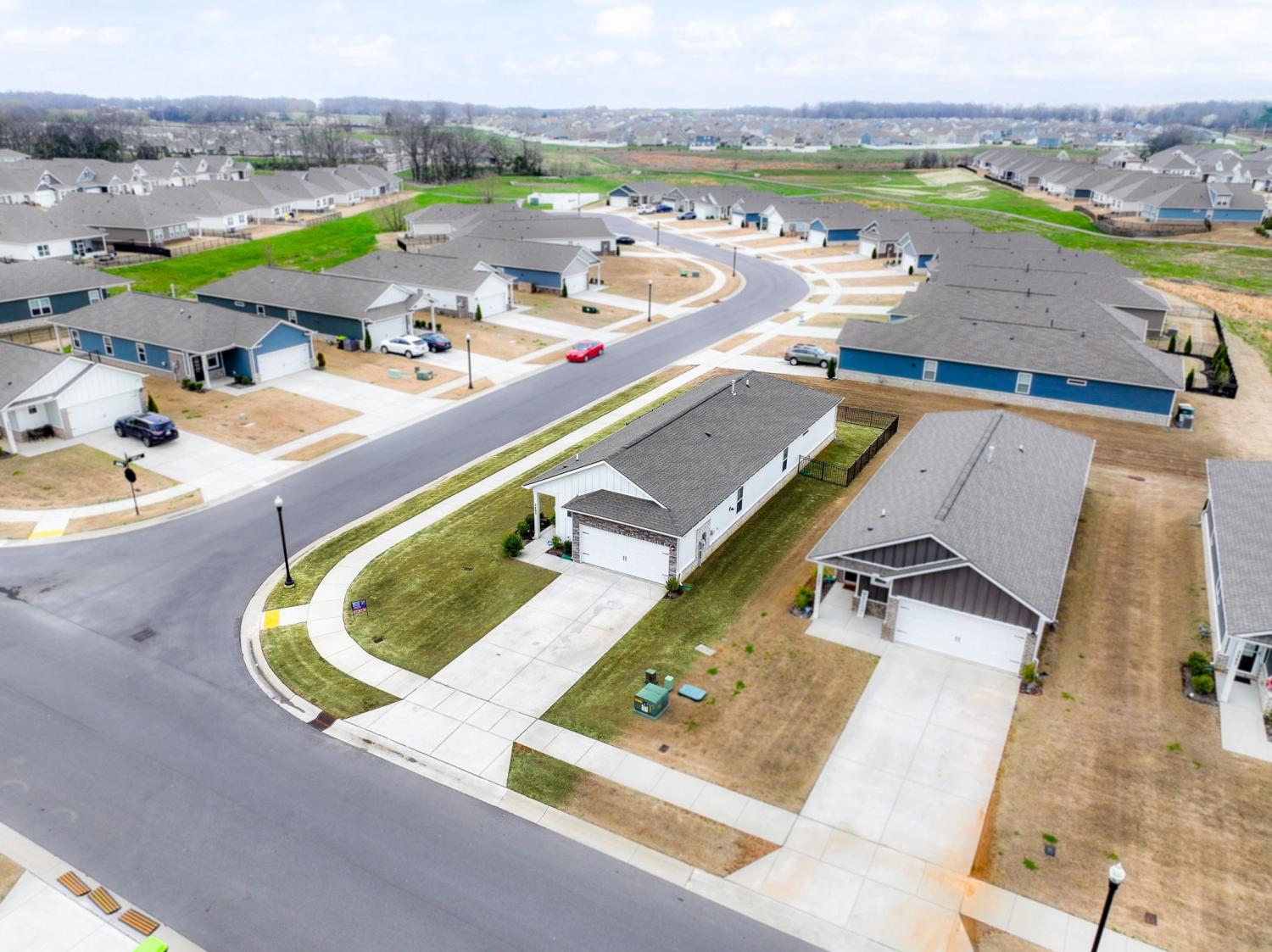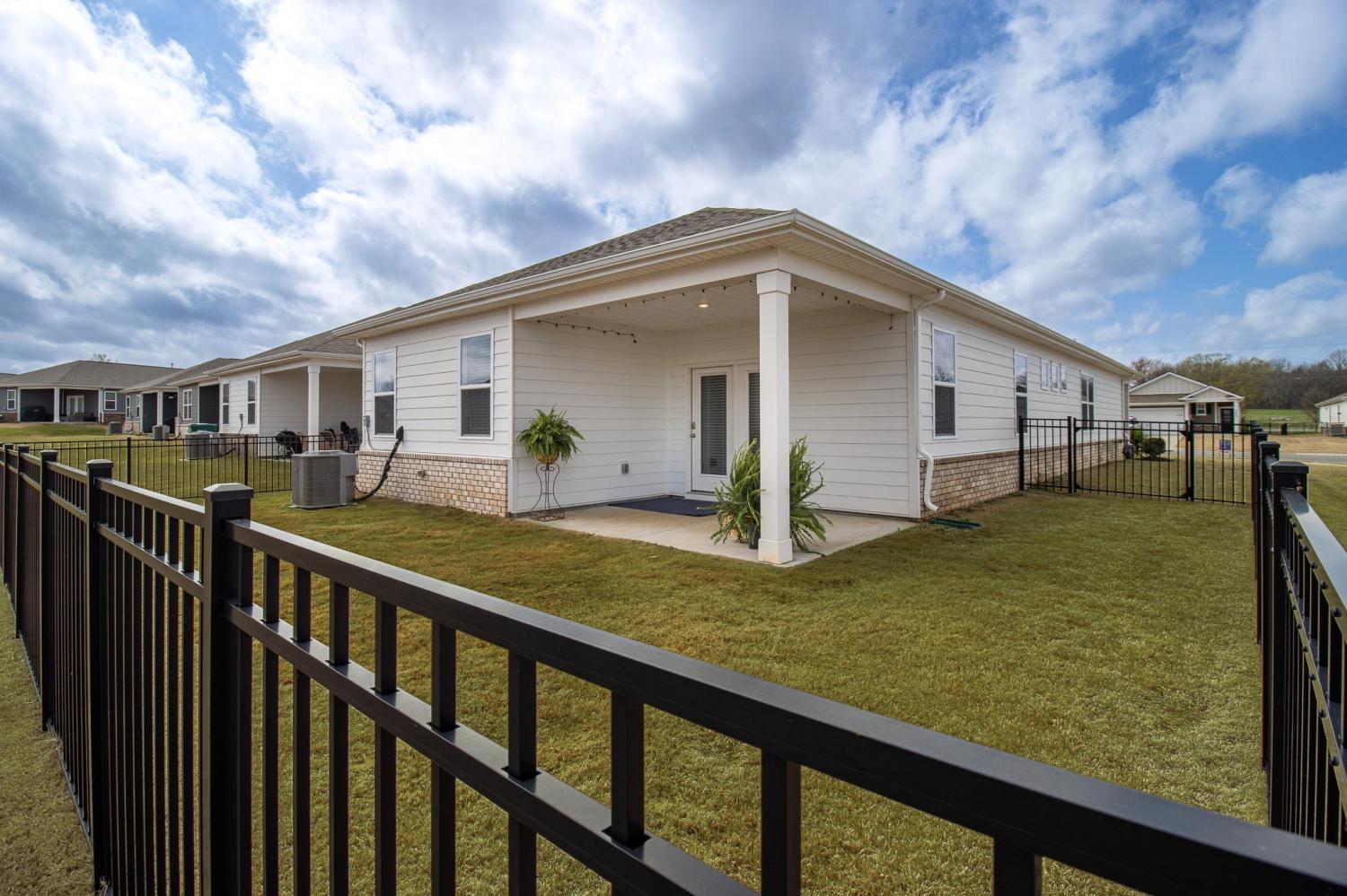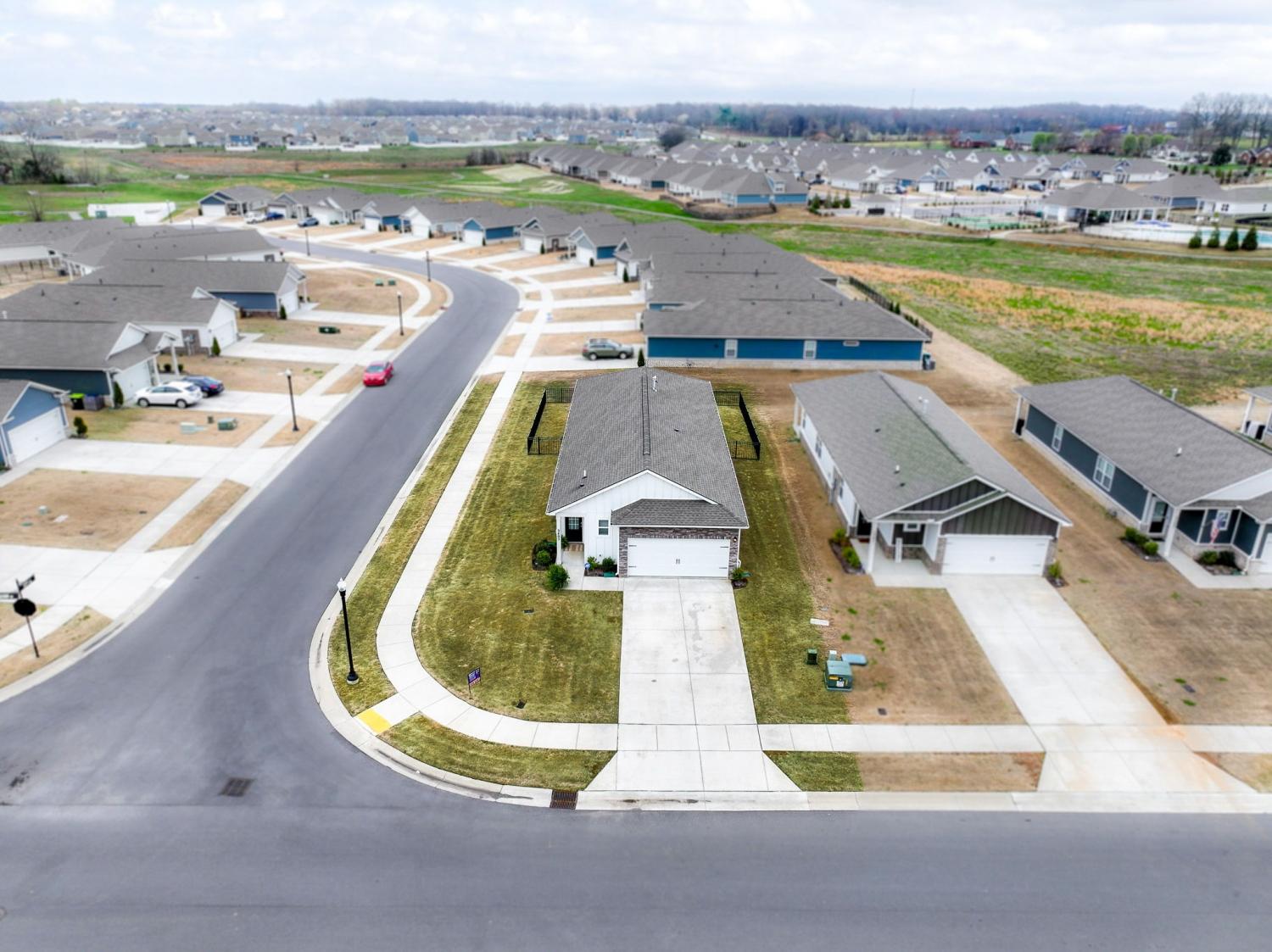 Seller will pay $5000 toward buyer's closing costs or rate buy-down with acceptable offer! Why buy new when you can have upgraded nearly new with all the first-year builder repairs completed? Perfectly maintained, gorgeous one-level home on the largest fenced corner lot available at Legacy Farms. The Desmond has an open-concept layout and tons of windows that fill the space with natural light. High ceilings and additional accent windows enhance the airy feel. Smart security system, programmable thermostats, and door cameras are state-of-the-art. The eat-in kitchen features stainless steel appliances, granite countertops, a spacious corner pantry, plenty of counter space, and extra seating at the large overhung island—perfect for family meals and gatherings. The spacious primary suite is in the back for quiet privacy and includes granite double vanities, separate water closet, and huge rainfall shower. High-end, durable, scratch-resistant, waterproof, easy-care LVP was used throughout. The spacious hall closet was converted into a small office/game room with a TV mount, high-speed internet access, and reactive lighting. Enjoy outdoor living on the covered front porch and large covered back patio overlooking the fully-fenced level lot. Lawn mowing is included to make life stress-free. This family-friendly neighborhood offers fantastic amenities: a resort pool, fire pit, walking trails, clubhouse, fitness center, and tennis/pickleball courts. Just a short drive to dining and shopping, and only 7 minutes to I-65, 15 minutes from the Kentucky line, and 35 minutes to Nashville International Airport. Originally designed as a 55+ community, now open to all, weekly and monthly gatherings and activities fill the shared calendar with meet-ups, movies, potlucks, game nights, and grilling invites. Nearby is an award-winning Dog Park, Library, new Recreation Center, History Museum, Municipal Park, Sports fields, and Splash Pad.