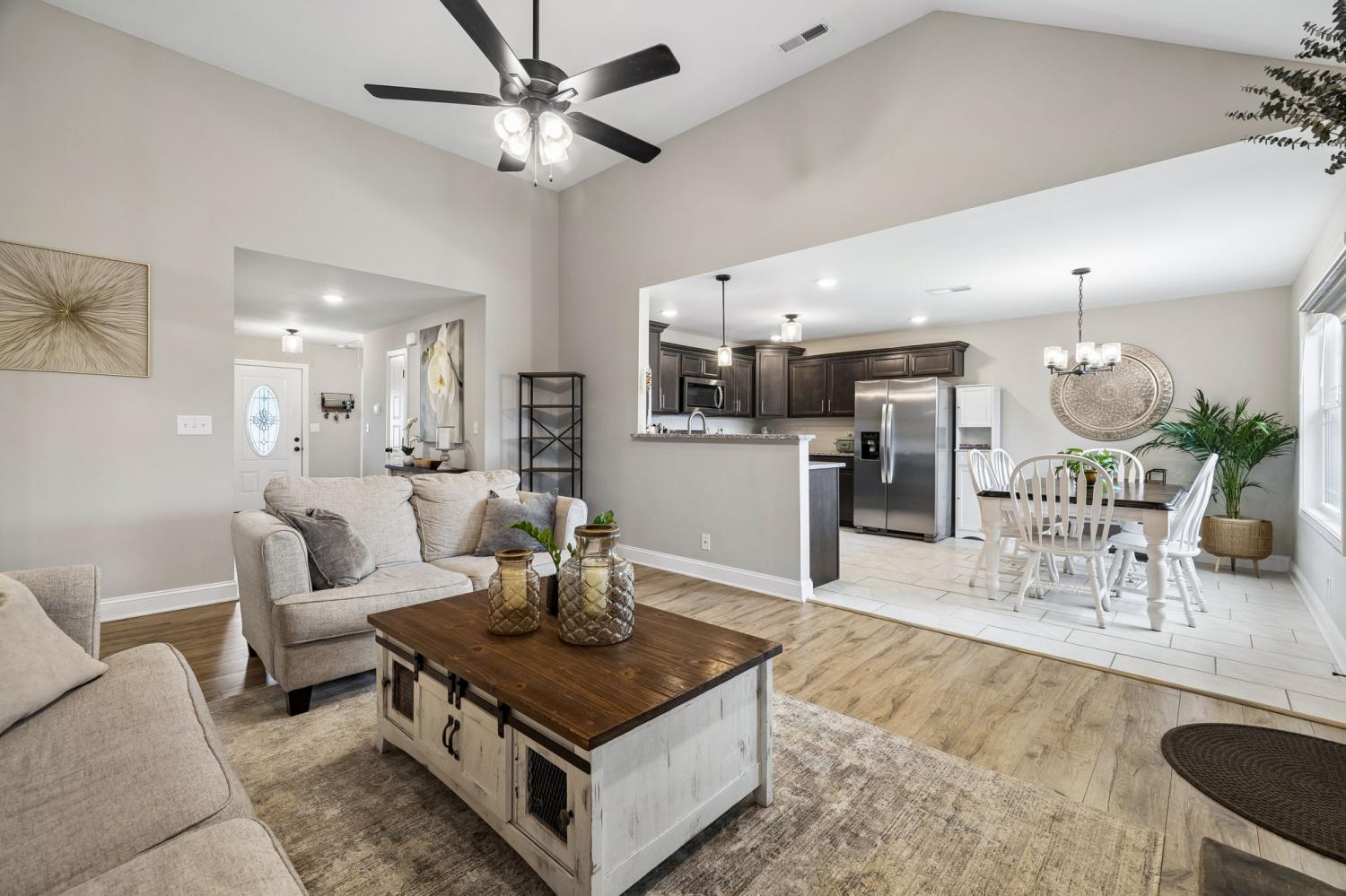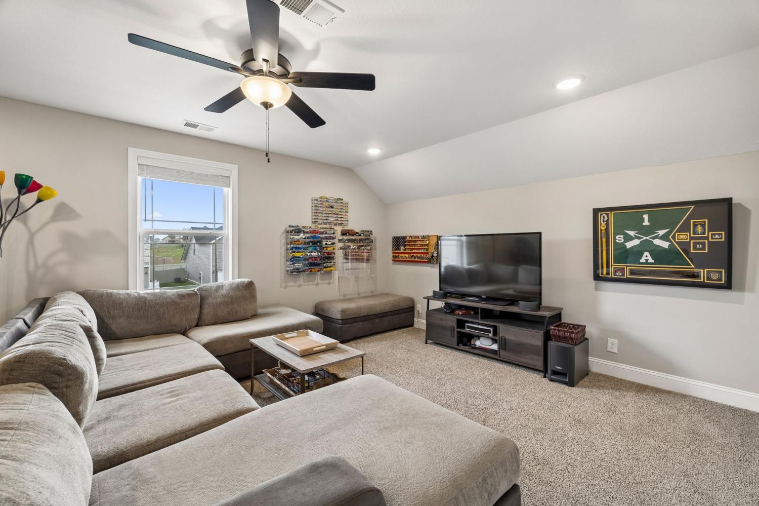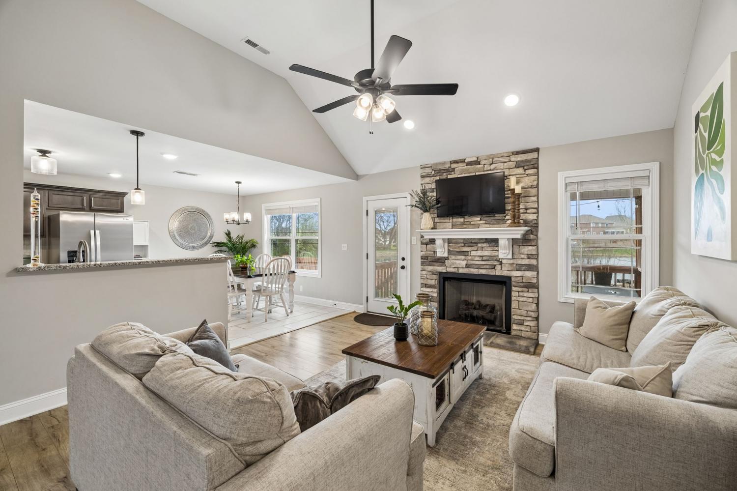 Welcome to this beautiful two story home designed with comfort, space, and functionality in mind. The open concept layout creates a bright and inviting atmosphere, making the home feel both spacious and welcoming. The property features four generously sized bedrooms, with three conveniently located on the main level. Upstairs you will find the fourth bedroom along with a large bonus room that offers flexible space for a home office, media room, playroom, game room, or additional living area. The living room serves as a central gathering space and showcases a stunning stone gas fireplace, creating a warm and inviting focal point that is perfect for relaxing evenings or seasonal traditions. The thoughtful layout allows for an easy flow between living areas while maintaining a comfortable and practical design. Step outside to enjoy peaceful pond views from the backyard, with no backyard neighbors adding to the sense of privacy. The pond is stocked with fish, offering a scenic and relaxing backdrop. The outdoor space includes a screened in porch, providing a comfortable place to unwind while taking in the views. The fenced backyard creates a secure and private setting that is well suited for outdoor enjoyment. Additional highlights include the refrigerator, washer, dryer, and all window treatments conveying with the home. The neighborhood also features a newly installed dedicated playground park completed in February 2026. The home is also conveniently located near Fort Campbell, making commuting easy while still enjoying a quiet neighborhood setting. With its functional layout, beautiful features, and scenic backyard setting, this home offers an exceptional opportunity to enjoy comfortable living in a welcoming environment.