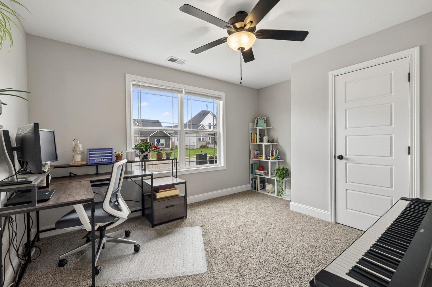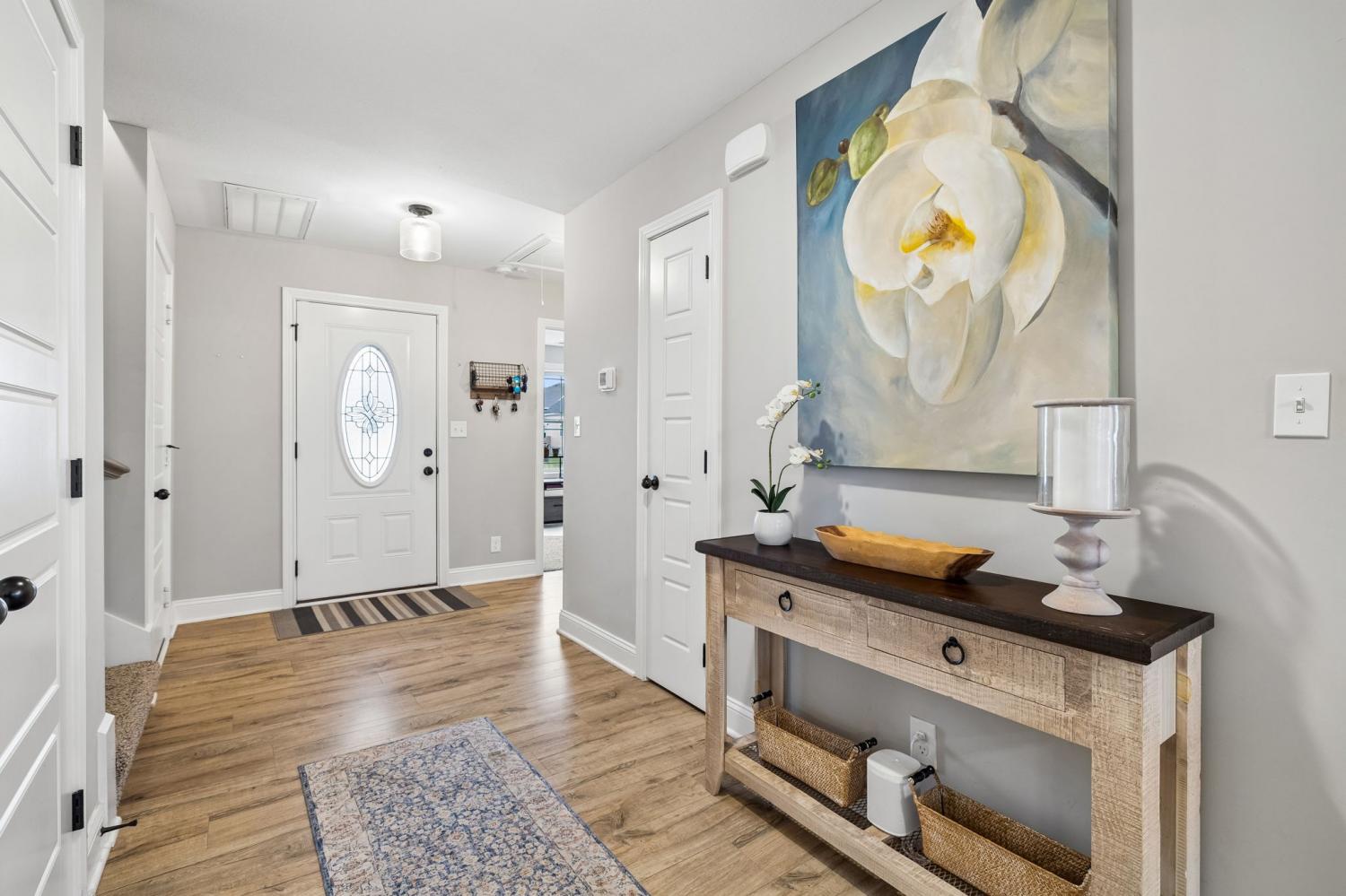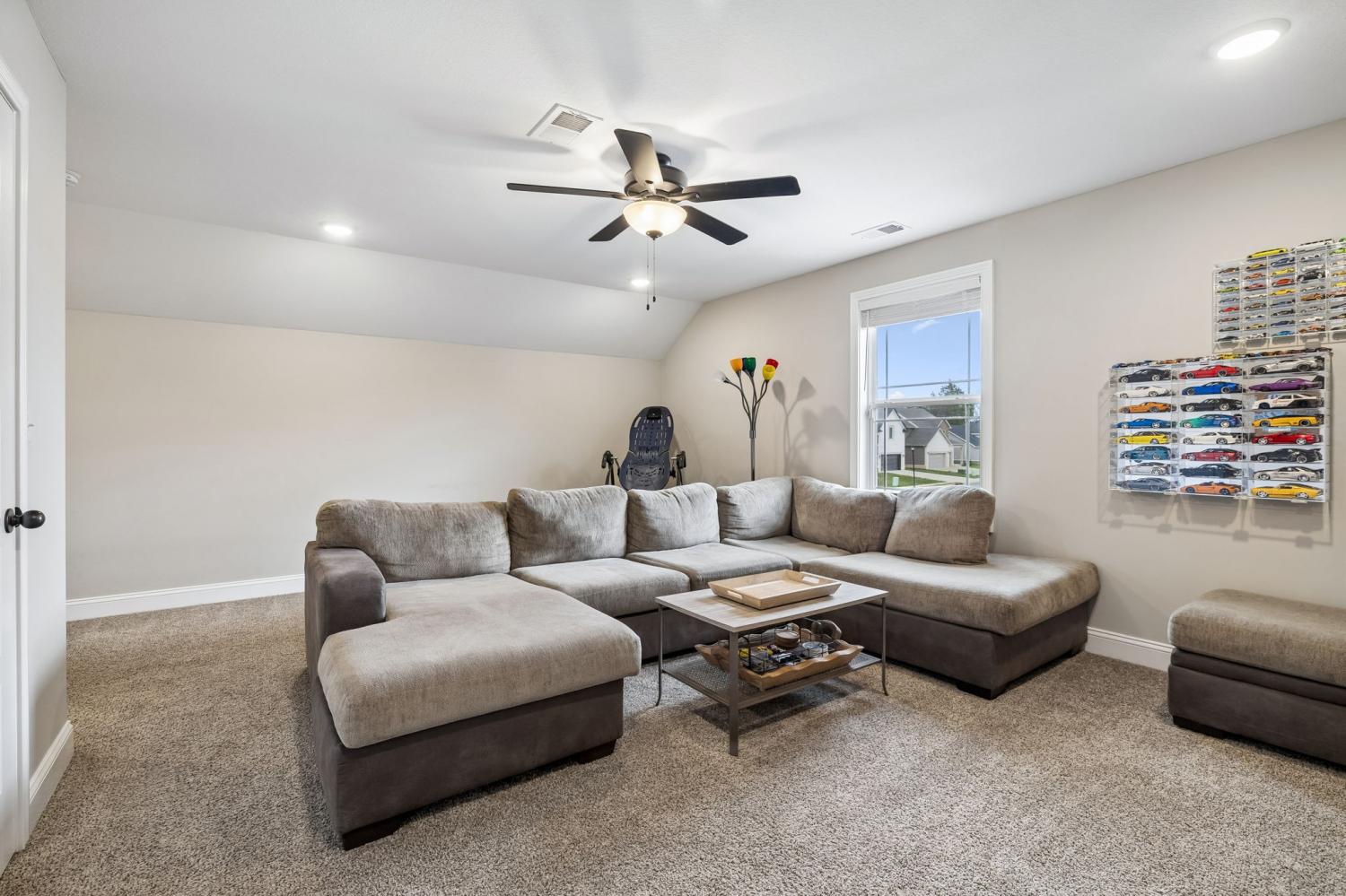 Welcome to this beautiful two story home designed with comfort, space, and functionality in mind. The open concept layout creates a bright and inviting atmosphere, making the home feel both spacious and welcoming. The property features four generously sized bedrooms, with three conveniently located on the main level. Upstairs you will find the fourth bedroom along with a large bonus room that offers flexible space for a home office, media room, playroom, game room, or additional living area. The living room serves as a central gathering space and showcases a stunning stone gas fireplace, creating a warm and inviting focal point that is perfect for relaxing evenings or seasonal traditions. The thoughtful layout allows for an easy flow between living areas while maintaining a comfortable and practical design. Step outside to enjoy peaceful pond views from the backyard, with no backyard neighbors adding to the sense of privacy. The pond is stocked with fish, offering a scenic and relaxing backdrop. The outdoor space includes a screened in porch, providing a comfortable place to unwind while taking in the views. The fenced backyard creates a secure and private setting that is well suited for outdoor enjoyment. Additional highlights include the refrigerator, washer, dryer, and all window treatments conveying with the home. The neighborhood also features a newly installed dedicated playground park completed in February 2026. The home is also conveniently located near Fort Campbell, making commuting easy while still enjoying a quiet neighborhood setting. With its functional layout, beautiful features, and scenic backyard setting, this home offers an exceptional opportunity to enjoy comfortable living in a welcoming environment.
