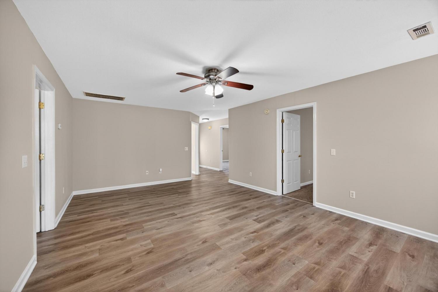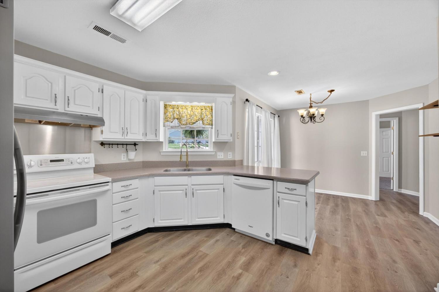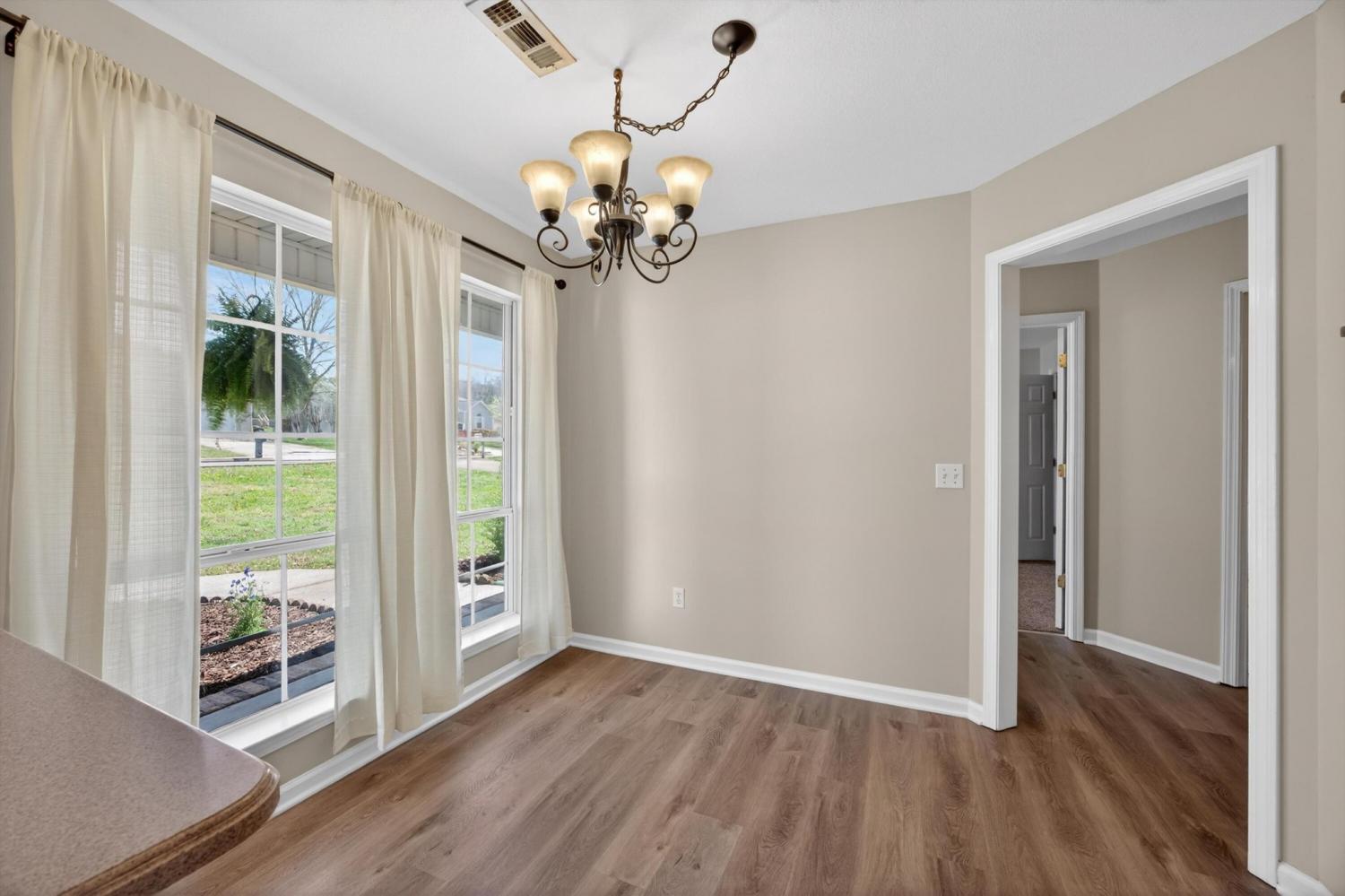Welcome to 50 Bartles Drive, a beautifully finished one level home that blends comfort, style, and space in all the right ways. From the moment you step inside, you'll appreciate the open feel and the gorgeous LVP flooring that runs throughout the entire home, creating a clean, modern look that is both stylish and low maintenance. The inviting living room greets you as you enter and is centered around a cozy fireplace, making it the perfect place to relax or gather with friends and family. Just off the living space, the kitchen features an eat in dining area ideal for everyday meals, while the separate dining room offers the perfect spot for hosting dinners, holidays, or entertaining guests. The spacious primary suite is designed for comfort and privacy, complete with its own en suite bathroom and a large walk in closet. One of the secondary bedrooms also features a walk in closet, offering excellent storage and flexibility for guests, family, or even a home office. Step outside and enjoy the charm of the covered front porch, perfect for morning coffee or relaxing evenings. In the back, a deck overlooks a generous open yard with plenty of space for outdoor entertaining, play, gardening, or simply enjoying the peaceful surroundings. A spacious two car garage provides additional storage and convenience, rounding out this well designed home. With its beautiful finishes, functional layout, and inviting outdoor space, this home checks all the boxes. Homes like this do not last long. Schedule your private showing today and come see what makes 50 Bartles Drive such a special place to call home!