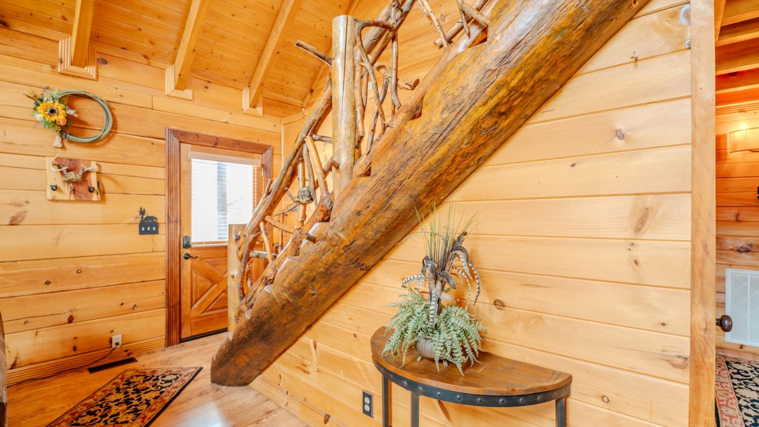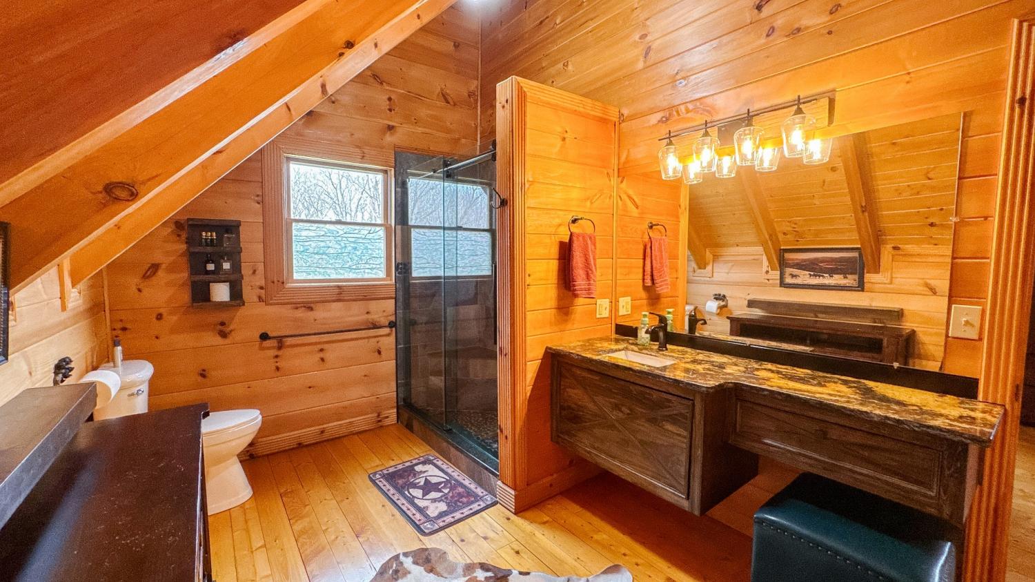 Escape to your private Tennessee paradise--a rare retreat with two cabins for a combined 3500+ sq ft! This property boasts over six acres, featuring a main cabin with over 2500 sq ft, 3 beds and 3 baths. The additional cabin is just over 1,000 sq ft, sleeps 3, and has 1 full bath! The proximity is great, being a short drive or hike away from Big South Fork and only minutes away from town! Nestled on a serene, wooded lot in the heart of Oneida! This one-of-a-kind property delivers the ultimate blend of peaceful seclusion, natural beauty, and income-producing versatility--all while being just minutes from the Tennessee's trails, rivers, and scenic wonders of Big South Fork National River and Recreation Area. Surrounded by nature at every turn, this fully furnished gem features two charming cabins and a well-kept four-stall barn. It's perfect for animal lovers, outdoor enthusiasts, savvy investors, multi-generational families, or anyone dreaming of their own slice of Tennessee living. Step inside the spacious main cabin and be instantly captivated by the dramatic open-concept great room. Its soaring cathedral ceilings flood the space with light, creating an inviting and welcoming feel. Complete with three generous bedrooms and three full baths, this home is move-in ready and ideal for comfortable everyday living or hosting friends and family. This home has been meticulously maintained, with a newly installed 2-stage, high efficiency, variable speed HVAC system! Just steps away sits the cozy guest house / in-law quarters--a warm, inviting retreat with two bedrooms, one bath, and a beautiful natural wood-burning fireplace that sets the mood for relaxing evenings.