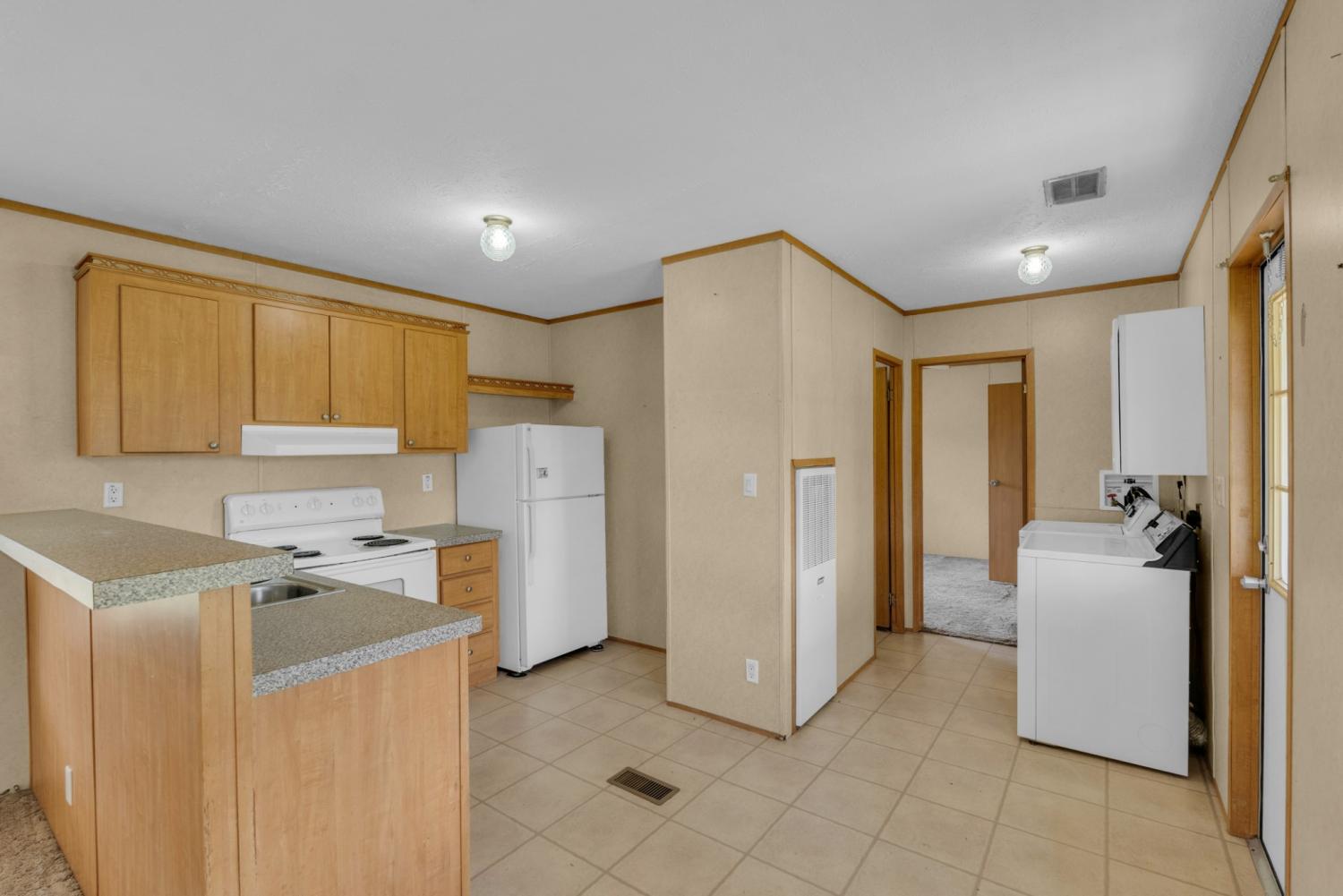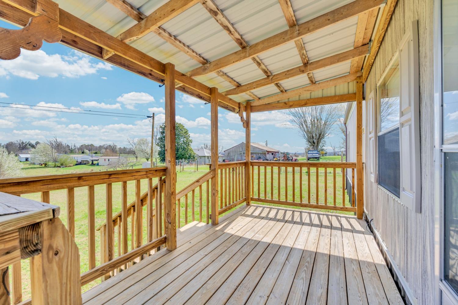 Enjoy peaceful country living with this 2 bedroom, 1 bath manufactured home situated on approximately .5 acres and surrounded by scenic pastureland. The property features covered front and rear porches, perfect for relaxing and enjoying the quiet rural setting. Concrete driveway leading to a 12x12 covered parking area with an attached 12x12 covered patio. Wooden ramp providing easy access to the front porch from covered carport area. When the home was new, an additional metal gable roof and gutters were installed along with extra insulation for improved energy efficiency. A small outbuilding offers extra storage space. Kitchen appliances along with the washer and dryer will remain, making this a move-in ready opportunity for simple country living.