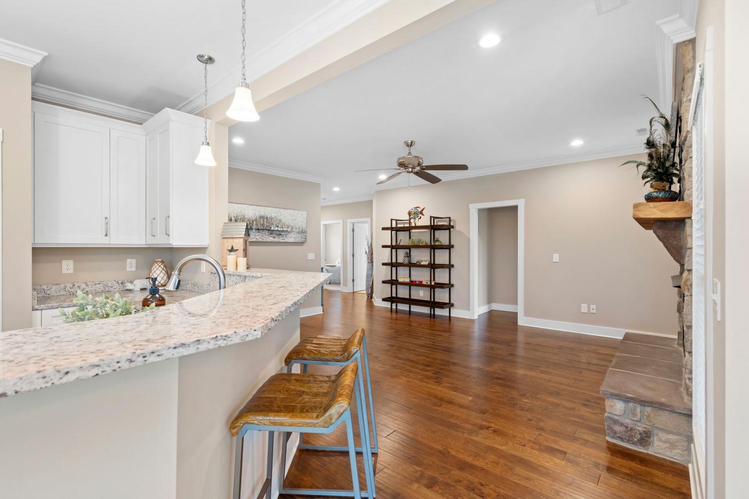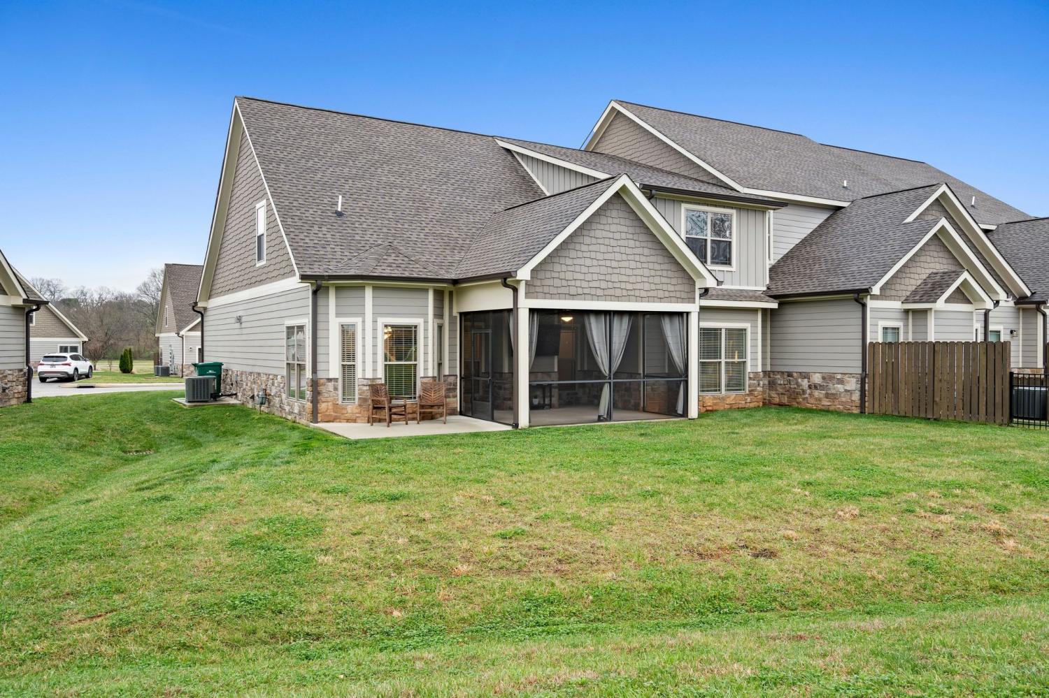 Welcome to lake living at its best in the highly sought-after Twin Creeks Village on Tims Ford Lake! This beautifully maintained townhome offers the perfect combination of comfort, style, and low-maintenance living in one of Winchester’s most desirable waterfront communities. Inside, you’ll find a bright open-concept layout with hardwood floors, a spacious living area anchored by a stunning stone fireplace, and a well-appointed kitchen featuring granite countertops, stainless appliances, and a large breakfast bar ideal for entertaining. The main-level primary suite provides a peaceful retreat with a spacious bedroom, double vanity, tiled walk-in shower, and large walk-in closet. Step outside and enjoy one of the home’s standout features—a large screened-in covered porch complete with ceiling fan and space for outdoor TV, perfect for relaxing evenings, watching the game, or enjoying the fresh Tennessee air year-round. The backyard offers open green space and additional patio seating for entertaining. Located just minutes from Twin Creeks Marina, Tims Ford Lake, walking trails, and community amenities, this home offers the perfect opportunity to enjoy lake life without the upkeep of a larger property. HOA fees cover all lawn care and maintenance for the townhomes. Whether you’re looking for a full-time residence, weekend retreat, or investment opportunity, this move-in ready townhome delivers comfort, convenience, and the lifestyle you’ve been looking for. Come experience why Twin Creeks Village is one of the most desirable communities on Tims Ford Lake!
