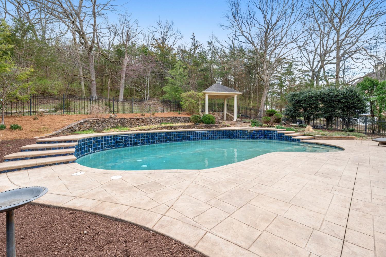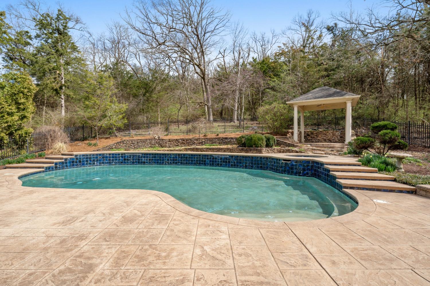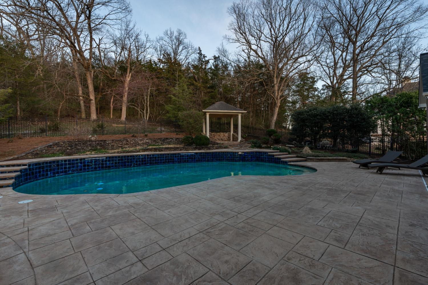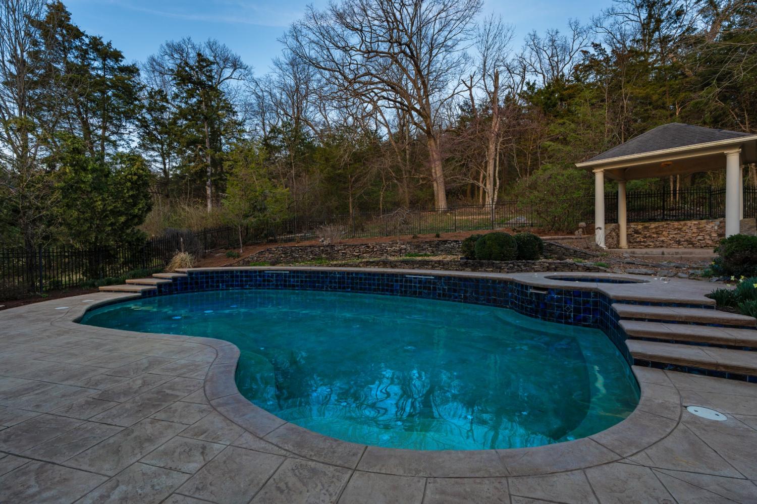 Set on one of only 16 estate lots in Brentwood's hilltop enclave of Chevoit Hills, this custom all-brick residence offers timeless elegance and exceptional indoor-outdoor living on 1 acre. The main level showcases a spacious primary retreat with a beautifully updated spa-inspired bath featuring quartz countertops, a soaking tub, and separate walk-in closets. Each additional bedroom offers its own private ensuite bath, providing comfort and privacy for family and guests alike. Designed for both everyday living and entertaining, the chef’s kitchen is appointed with a Sub-Zero refrigerator, Wolf 5-burner gas cooktop, new microwave, abundant white cabinetry, and granite countertops. The adjoining breakfast nook features custom built-in cabinetry and a wet bar for added convenience. Dual staircases offer both a grand front staircase and a secondary rear staircase for everyday functionality. Sophisticated architectural details including crown molding and plantation shutters are found throughout the home, while the expansive living room offers a warm gathering space centered around a gas fireplace.The fully finished basement provides additional living and recreation space, complete with a second gas fireplace and pool table area. The saltwater pool and hot tub create a private backyard retreat, enhanced by multiple recent upgrades to the pool’s mechanical systems. Additional highlights include a spacious three-car garage, central vacuum system, and a convenient dumbwaiter connecting the garage to the main floor laundry room. New roof (2023), new HVAC (2022) and tankless hot water heater. Most windows & exterior doors have been replaced. HOA is $150/year.