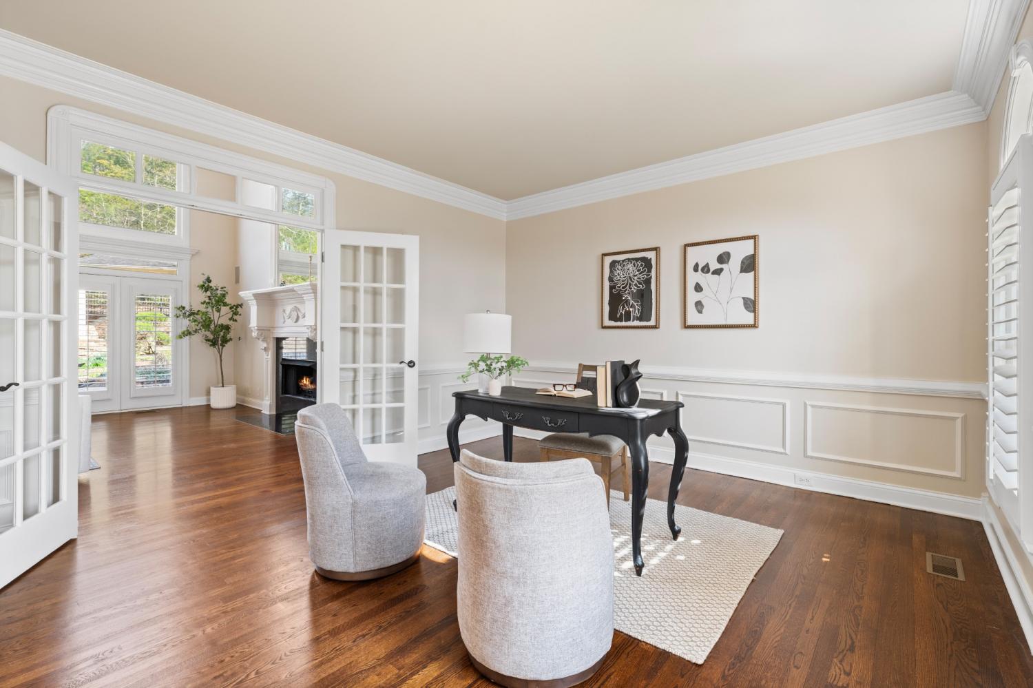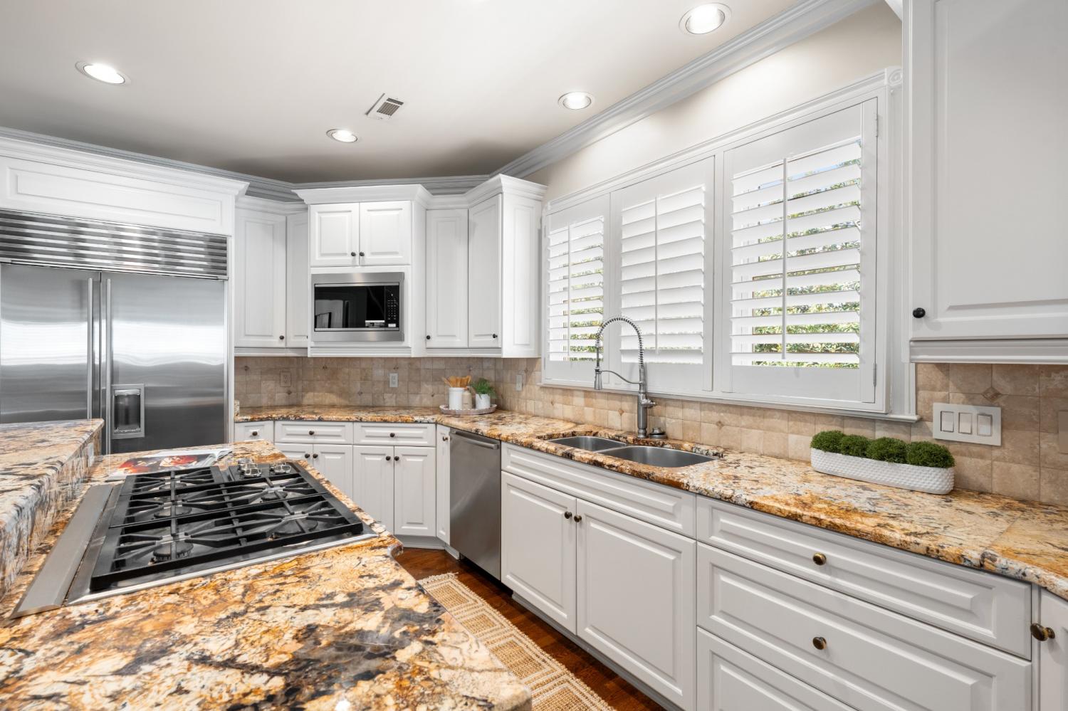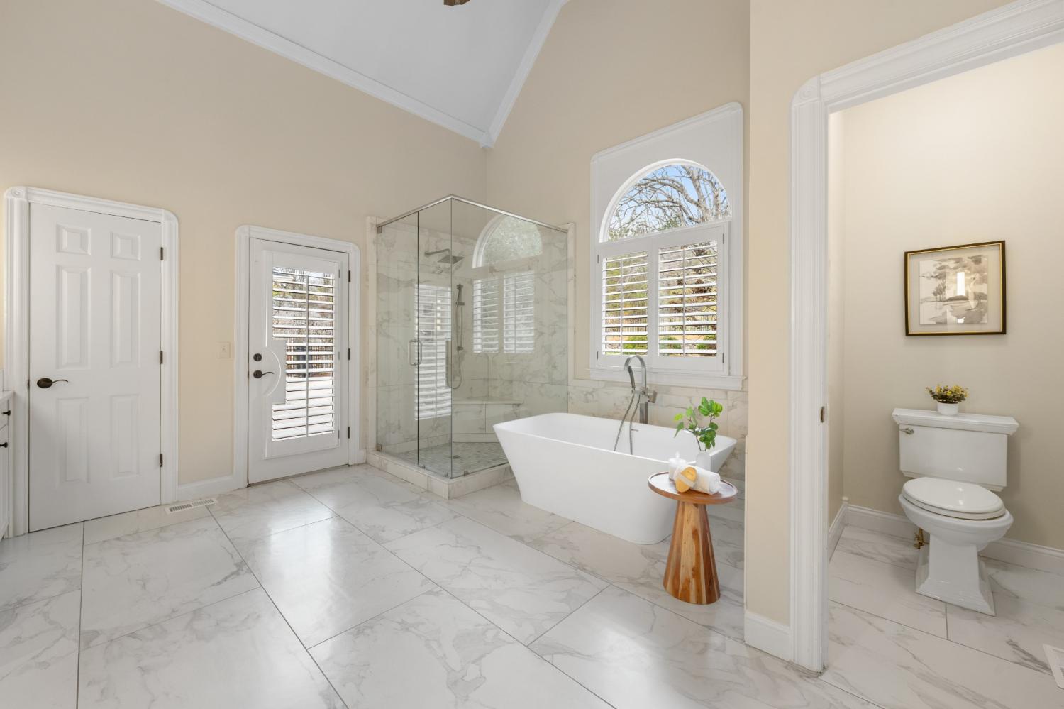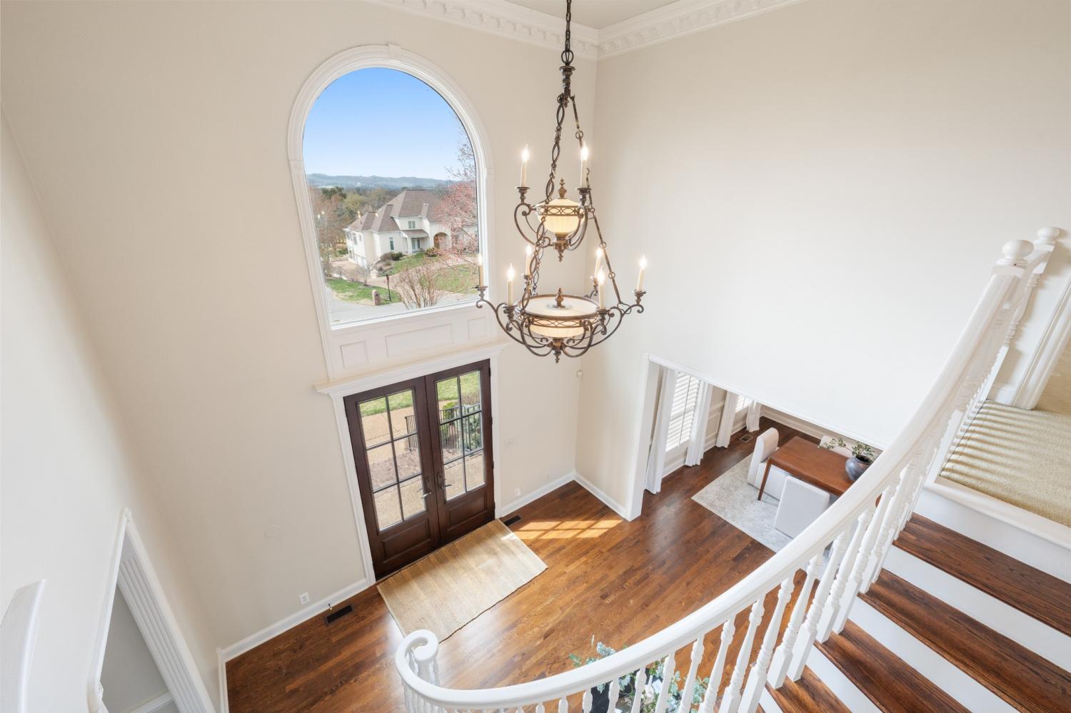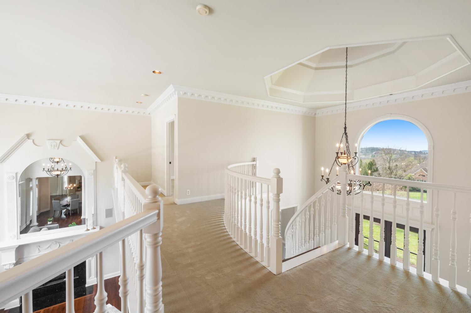 Set on one of only 16 estate lots in Brentwood's hilltop enclave of Chevoit Hills, this custom all-brick residence offers timeless elegance and exceptional indoor-outdoor living on 1 acre. The main level showcases a spacious primary retreat with a beautifully updated spa-inspired bath featuring quartz countertops, a soaking tub, and separate walk-in closets. Each additional bedroom offers its own private ensuite bath, providing comfort and privacy for family and guests alike. Designed for both everyday living and entertaining, the chef’s kitchen is appointed with a Sub-Zero refrigerator, Wolf 5-burner gas cooktop, new microwave, abundant white cabinetry, and granite countertops. The adjoining breakfast nook features custom built-in cabinetry and a wet bar for added convenience. Dual staircases offer both a grand front staircase and a secondary rear staircase for everyday functionality. Sophisticated architectural details including crown molding and plantation shutters are found throughout the home, while the expansive living room offers a warm gathering space centered around a gas fireplace.The fully finished basement provides additional living and recreation space, complete with a second gas fireplace and pool table area. The saltwater pool and hot tub create a private backyard retreat, enhanced by multiple recent upgrades to the pool’s mechanical systems. Additional highlights include a spacious three-car garage, central vacuum system, and a convenient dumbwaiter connecting the garage to the main floor laundry room. New roof (2023), new HVAC (2022) and tankless hot water heater. Most windows & exterior doors have been replaced. HOA is $150/year.