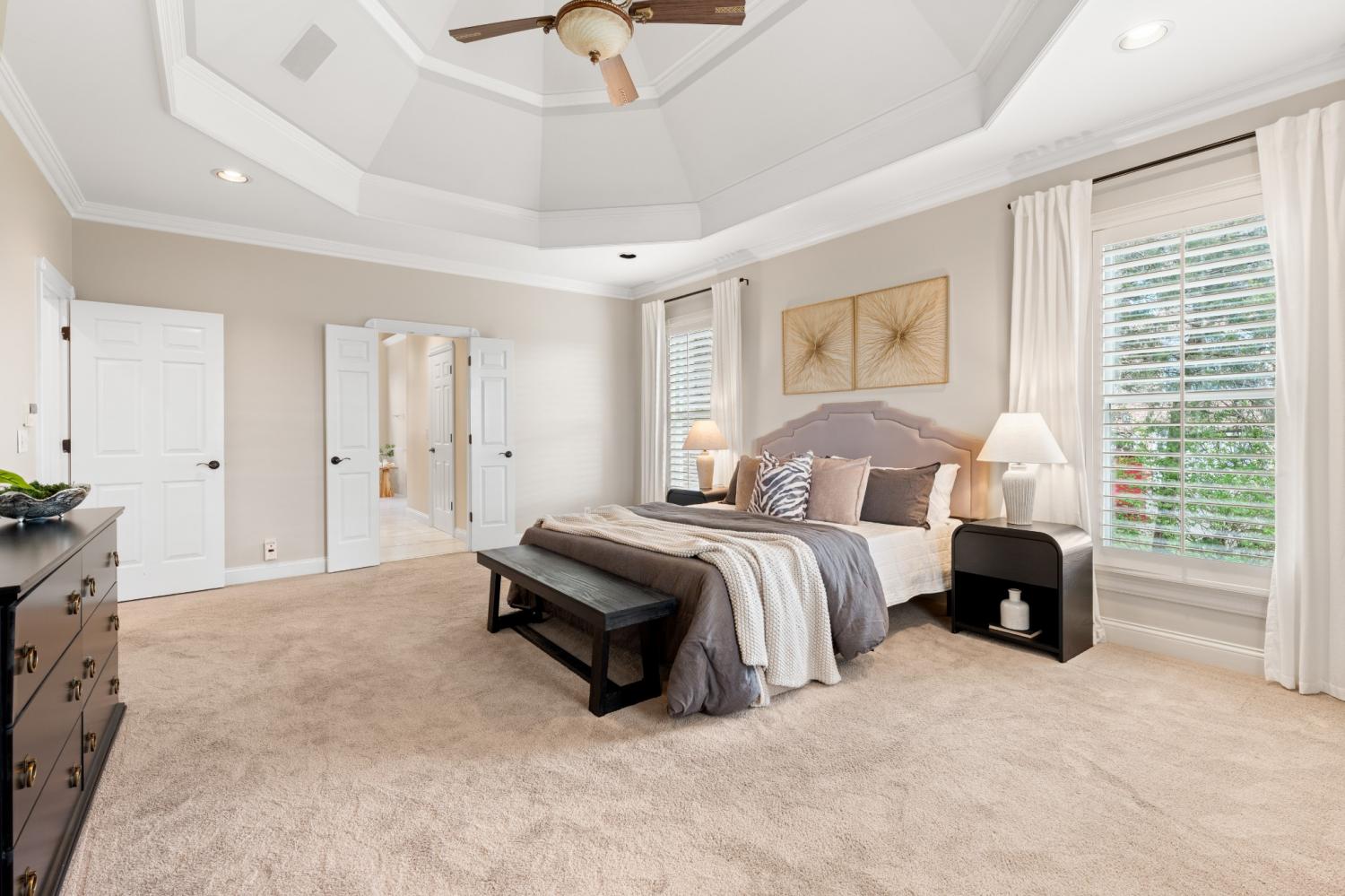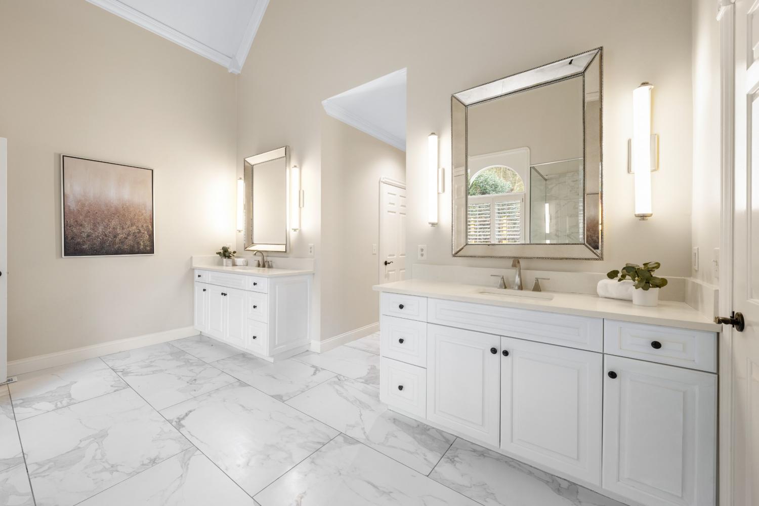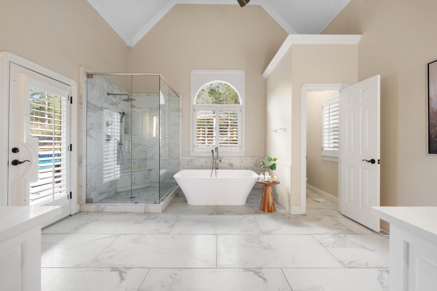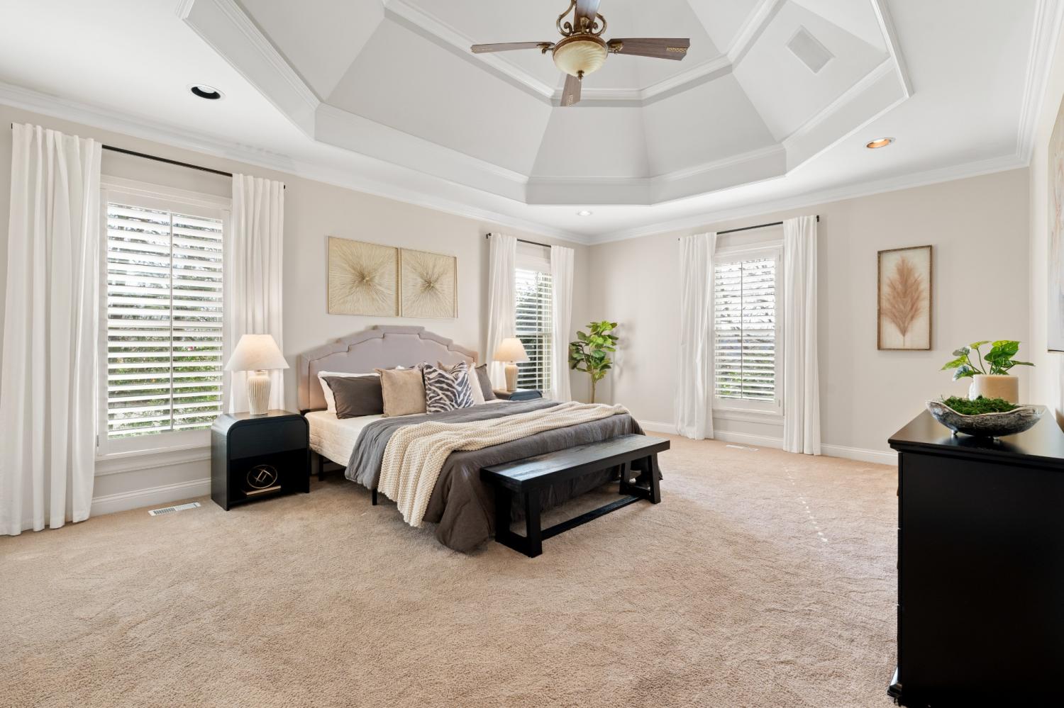Set on one of only 16 estate lots in Brentwood's hilltop enclave of Chevoit Hills, this custom all-brick residence offers timeless elegance and exceptional indoor-outdoor living on 1 acre. The main level showcases a spacious primary retreat with a beautifully updated spa-inspired bath featuring quartz countertops, a soaking tub, and separate walk-in closets. Each additional bedroom offers its own private ensuite bath, providing comfort and privacy for family and guests alike. Designed for both everyday living and entertaining, the chef’s kitchen is appointed with a Sub-Zero refrigerator, Wolf 5-burner gas cooktop, new microwave, abundant white cabinetry, and granite countertops. The adjoining breakfast nook features custom built-in cabinetry and a wet bar for added convenience. Dual staircases offer both a grand front staircase and a secondary rear staircase for everyday functionality. Sophisticated architectural details including crown molding and plantation shutters are found throughout the home, while the expansive living room offers a warm gathering space centered around a gas fireplace.The fully finished basement provides additional living and recreation space, complete with a second gas fireplace and pool table area. The saltwater pool and hot tub create a private backyard retreat, enhanced by multiple recent upgrades to the pool’s mechanical systems. Additional highlights include a spacious three-car garage, central vacuum system, and a convenient dumbwaiter connecting the garage to the main floor laundry room. New roof (2023), new HVAC (2022) and tankless hot water heater. Most windows & exterior doors have been replaced. HOA is $150/year.