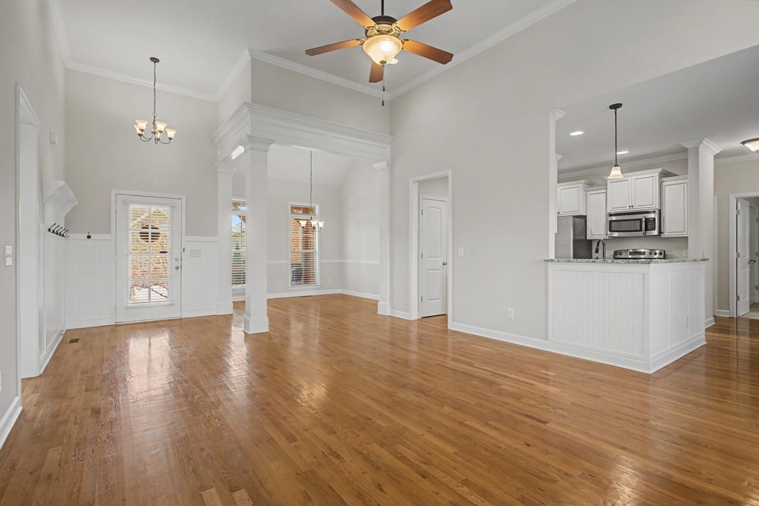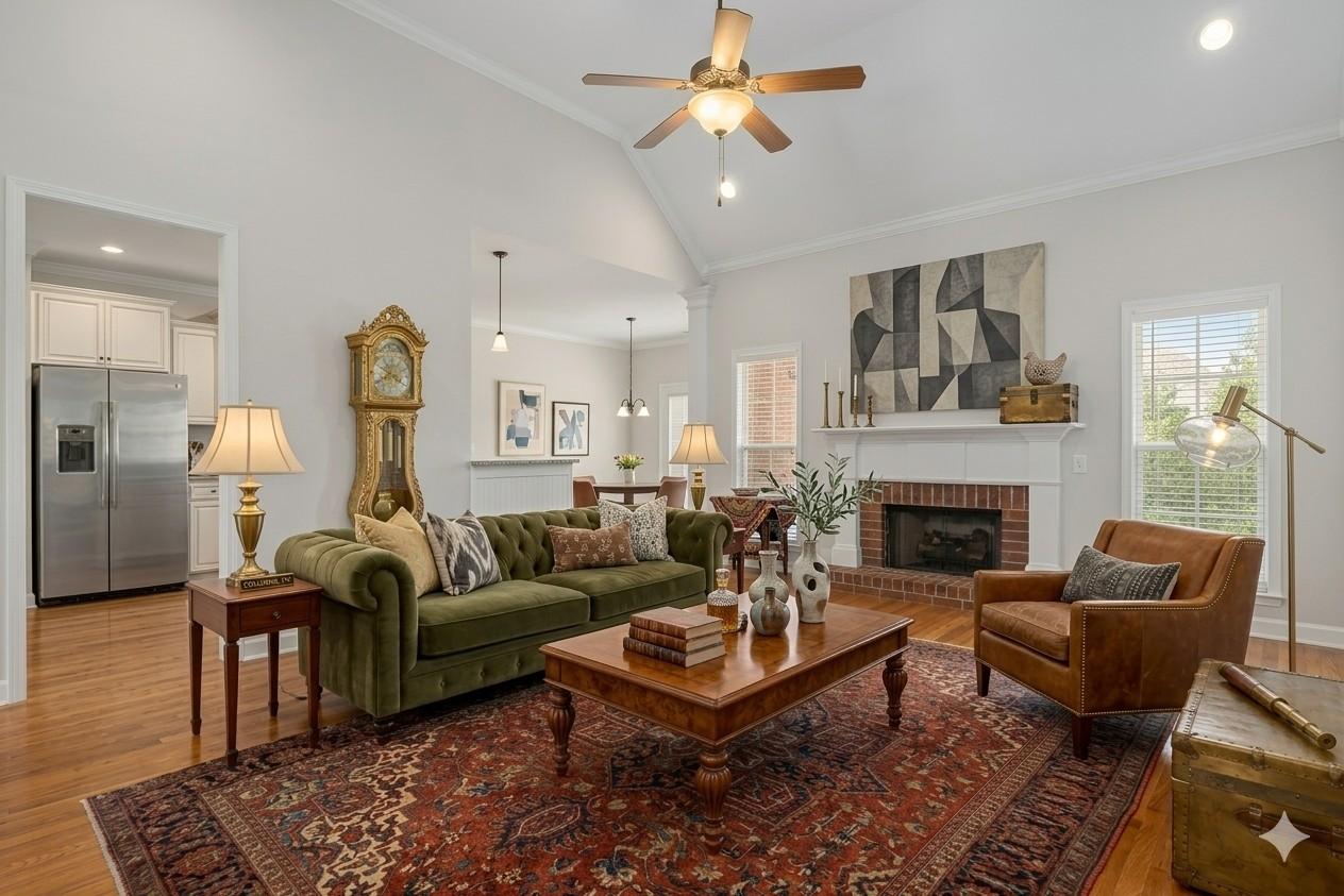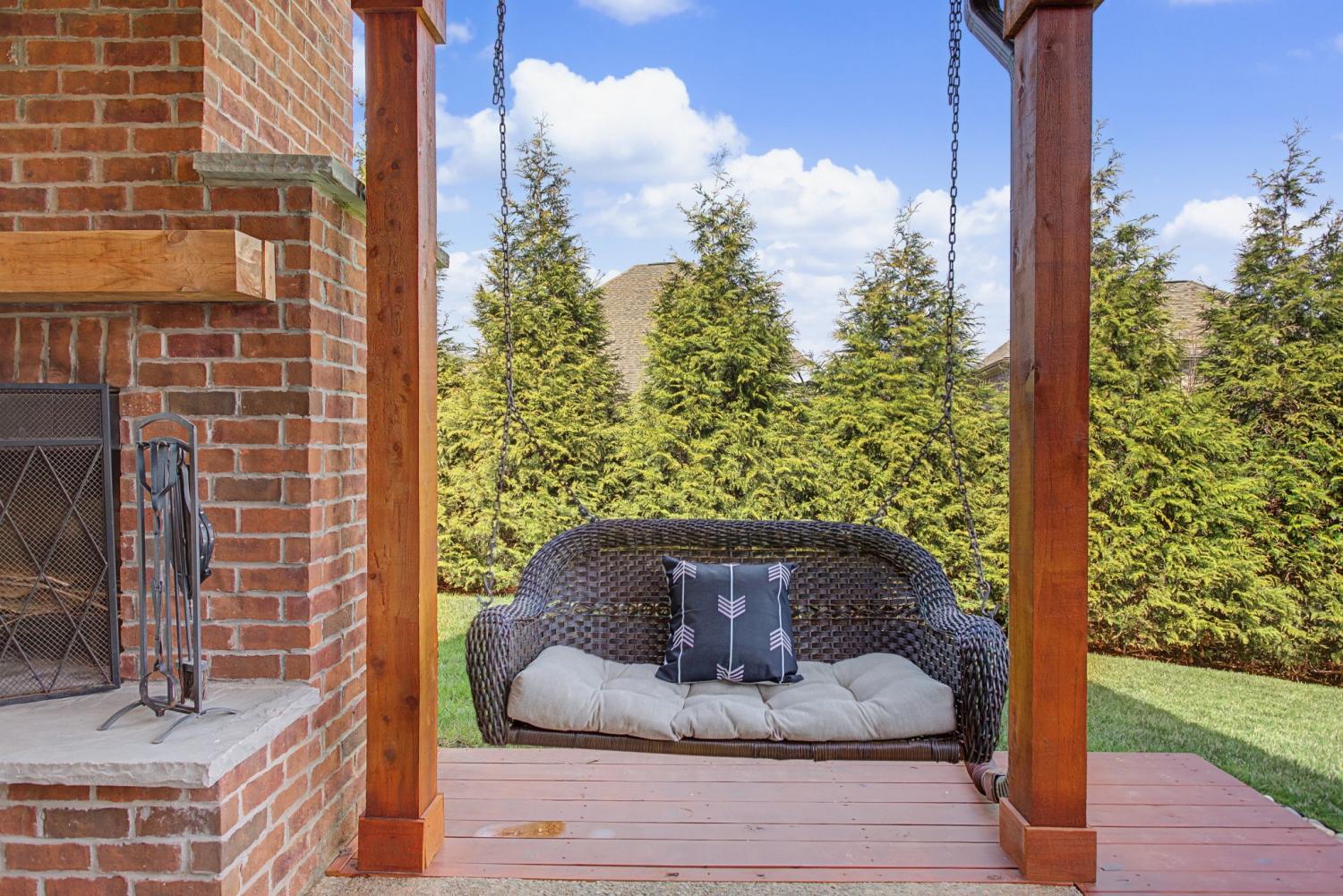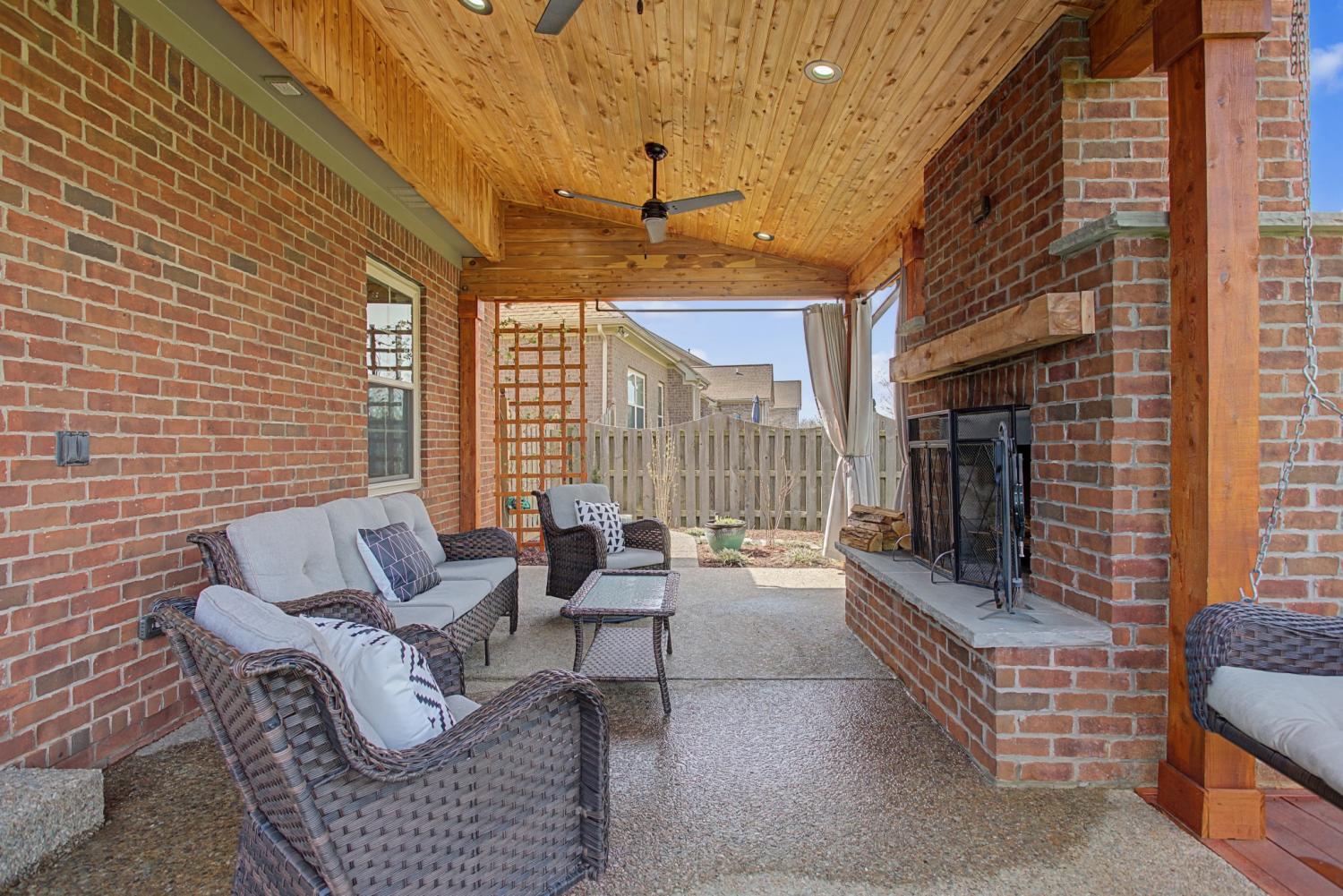 Wonderful 3 Br / 2 Bath Ranch Home in the desired Williamson County, Spring Hill neighborhood of Wades Grove. This home features: All-brick construction, architectural gables, and professional landscaping. Inside you’ll find high a vaulted ceiling giving generous natural lighting, stunning columned entryway, classic crown molding, hardwood flooring, wainscoting, and premium cabinetry with stainless steel appliances. Freshly Painted, Carpet is 2 years new in all the bedrooms and huge bonus room. The covered porch out back features: a luxury wood-planked ceiling, a floor-to-ceiling masonry fireplace with custom timber mantel, dual integrated fans and recessed lighting. The backyard is fully fenced, includes some privacy landscaping and has a sidewalk just outside the fence, joining the backyard to the front. (No need to walk through wet grass) Front parking includes an oversized aggregate-finish driveway for enhanced durability and style.1-Year, 2-10 Home Warranty to be transferred to Buyers upon closing. Furniture on the Back Patio to stay with the Property.
