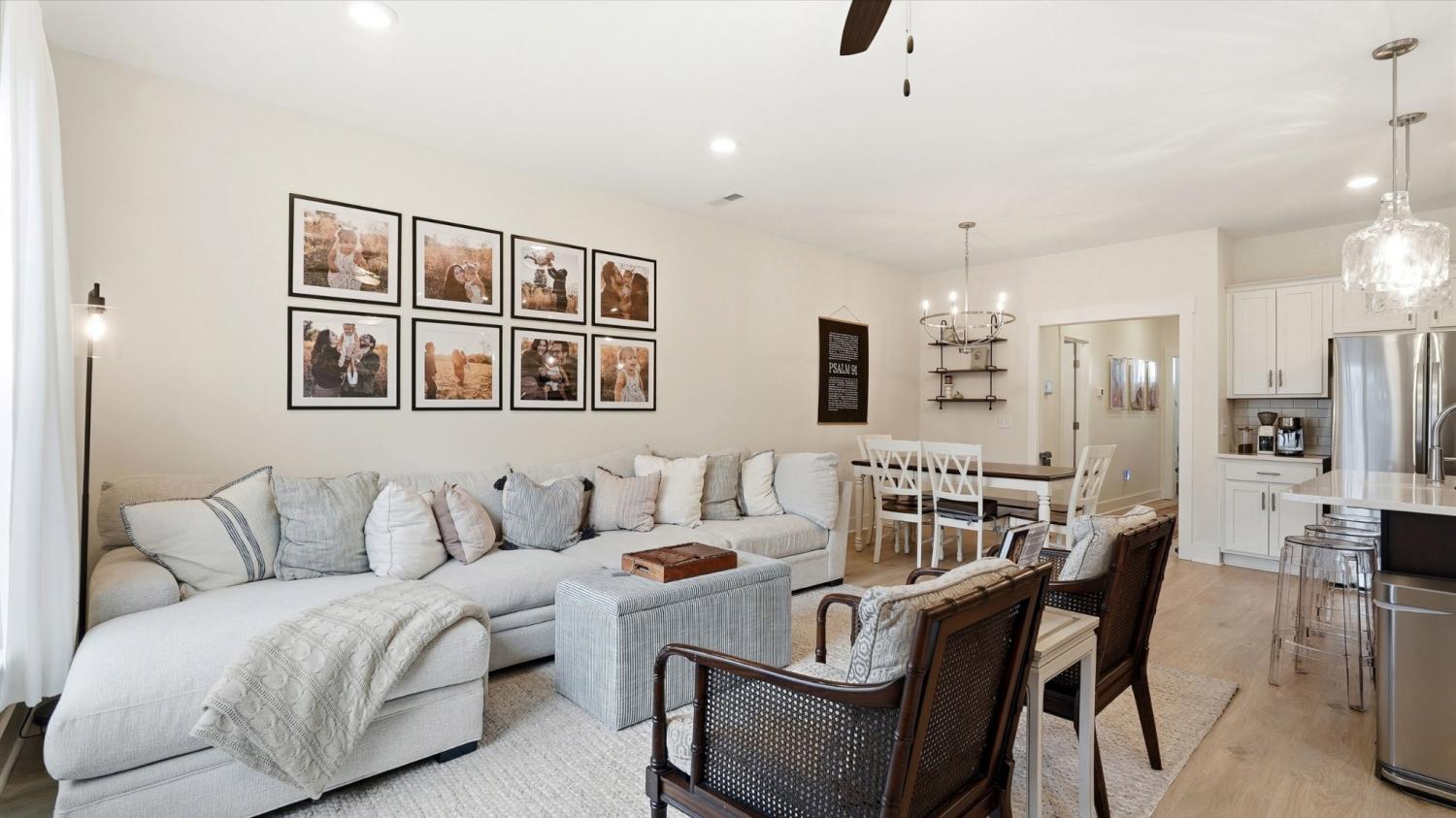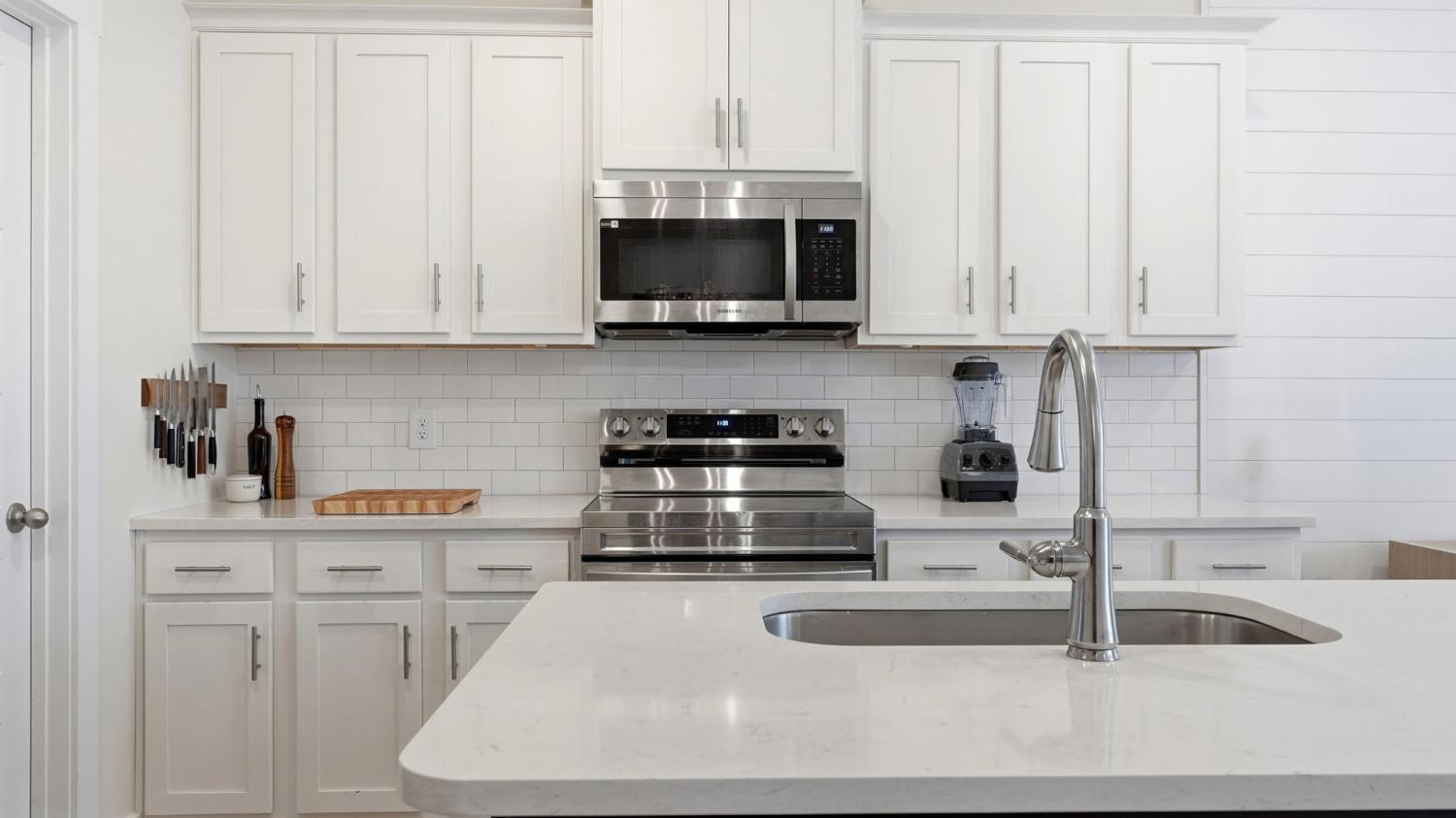 Welcome to 1330 Halter Park Dr, where comfort, style, and location come together perfectly. Step inside to an open floor plan where the living room, dining room, and kitchen flow seamlessly together, filled with natural light. The living room makes a statement with a charming shiplap accent wall, adding warmth and character to the heart of the home. Upstairs, you'll find three spacious bedrooms, providing you with an option for a home office or guest suite. The primary suite features a walk-in closet, double sinks, and a beautifully updated walk-in shower. Out back, enjoy your private patio, ideal for grilling and relaxing with the added bonus of a double tree line providing exceptional privacy. A one-car garage rounds out the home's practical features. Located near the entrance of the neighborhood for easy in-and-out access, and just mins from the lake, this home puts everything at your fingertips. Just minutes from grocery stores, restaurants, trails, and public parks with a neighborhood pool, park, and gym right at your doorstep.
