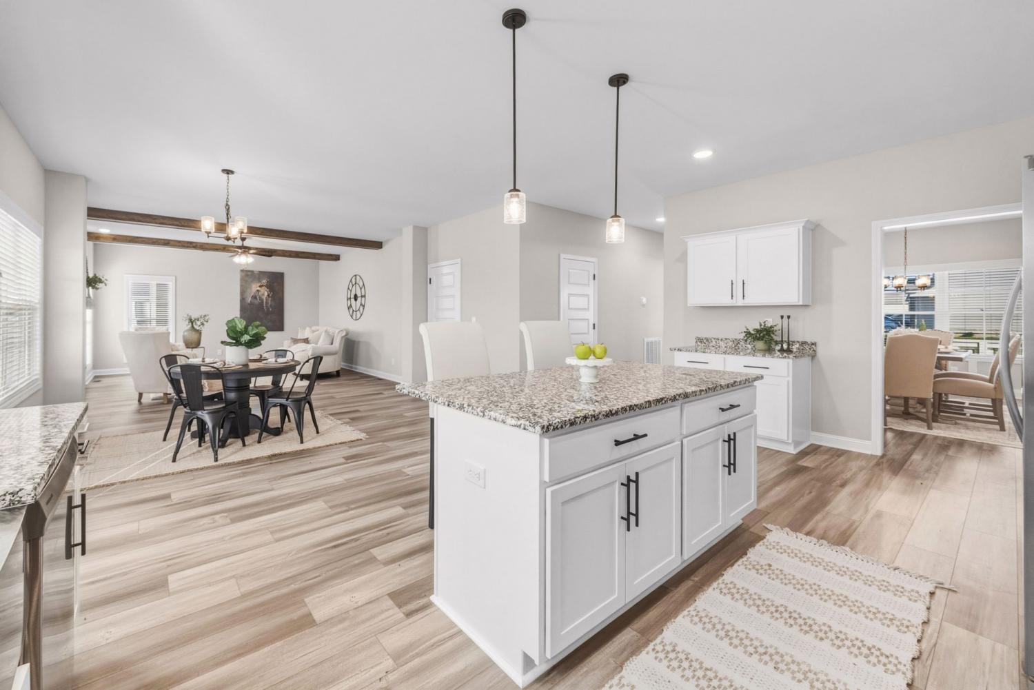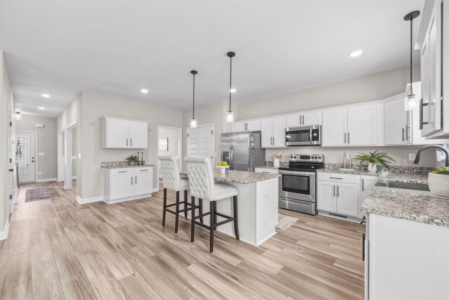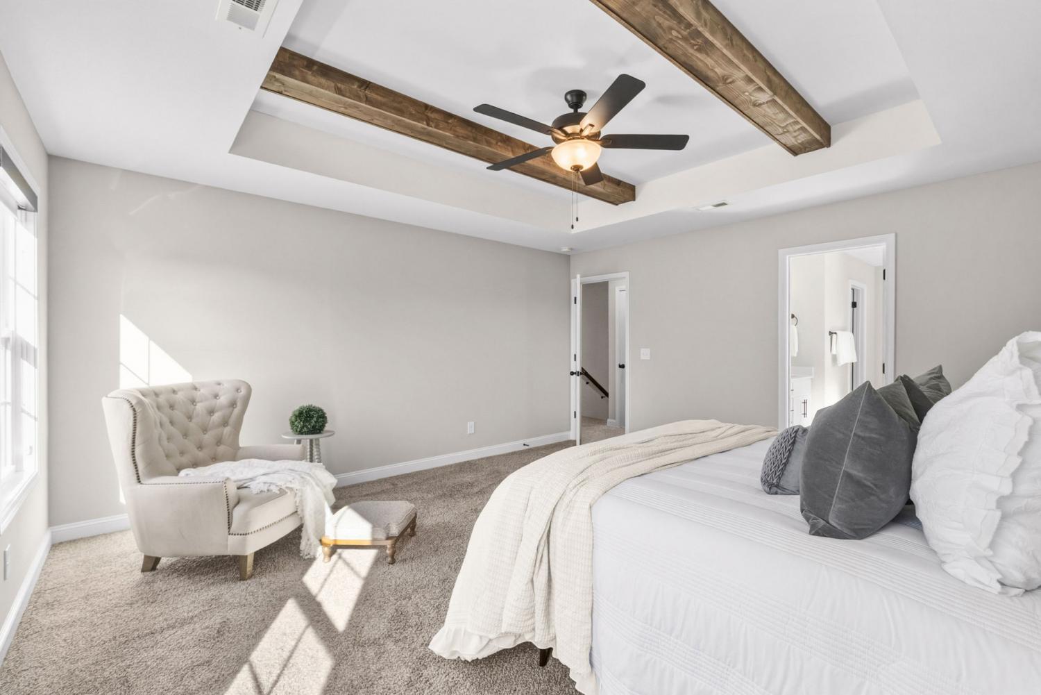 This #SHOWSTOPPER is better than NEW!! TO DIE FOR floorplan w/ 4 Beds + 3.5 Baths! 2 MEGA sized #PRIMARY bedrooms w/ full baths & #Walk In Closets! Stunning details EVERYWHERE! FRESH PAINT~ Agreeable grey on walls with LVP throughout main level! Craftsman style beams in living room, stone to the ceiling on the fireplace LED recessed lighting. Upgraded lighting throughout & craftsman style interior doors. Formal dining room w/ decorative Wainscoting. Immaculate Kitchen features White shaker cabinets*ISLAND*PANTRY*Coffee bar*Granite countertops*Stainless appliances*Tile backsplash*Farmhouse sink*Pulldown faucet! All bedrooms have WIC! Primary bedroom features Craftsman beams in ceiling, 2 WIC! NO REAR neighbors, treelined backyard w/covered back deck!