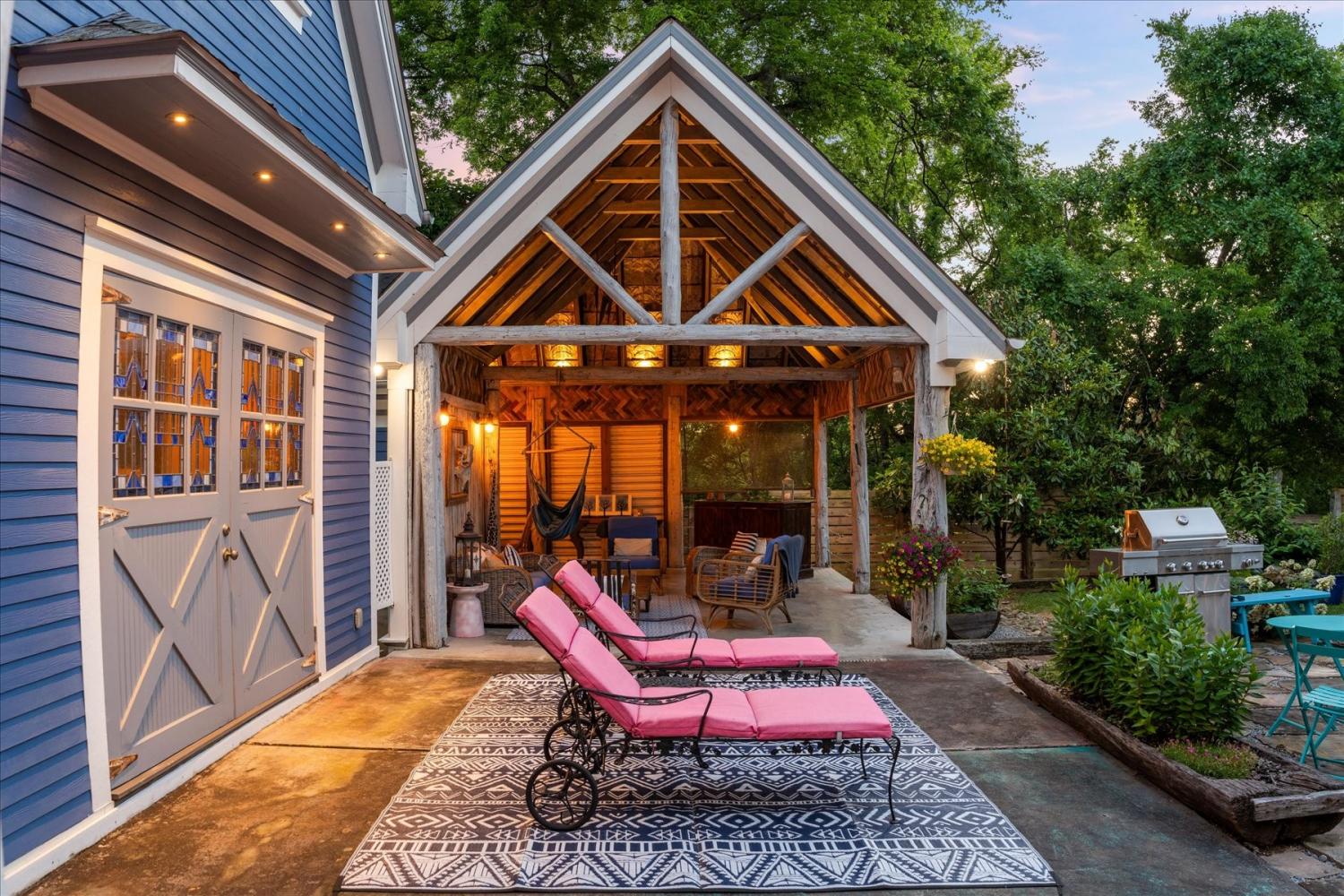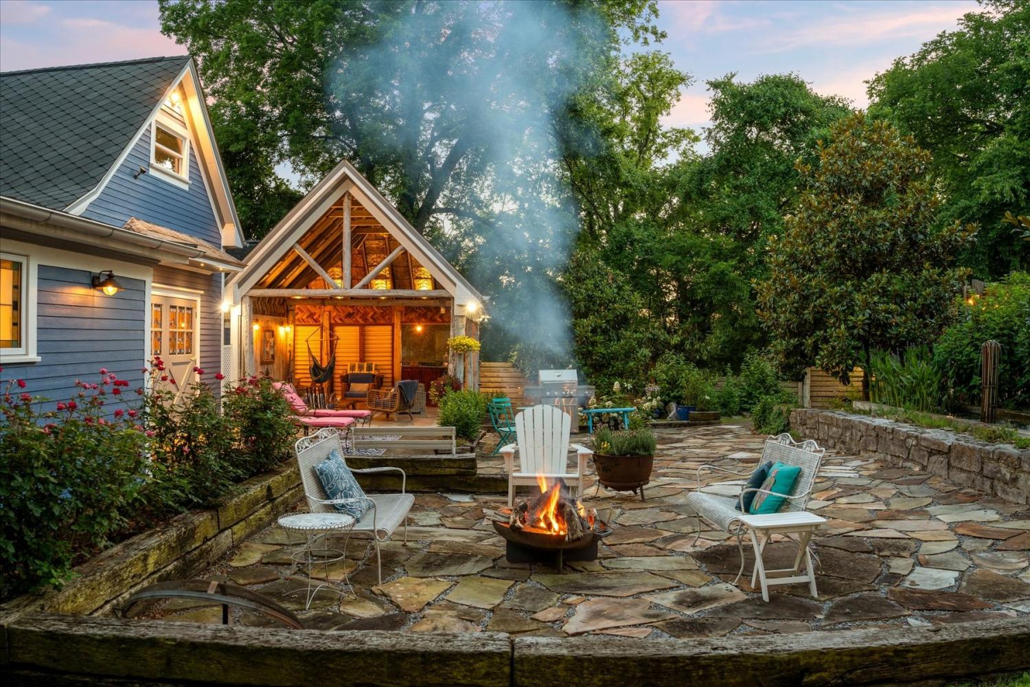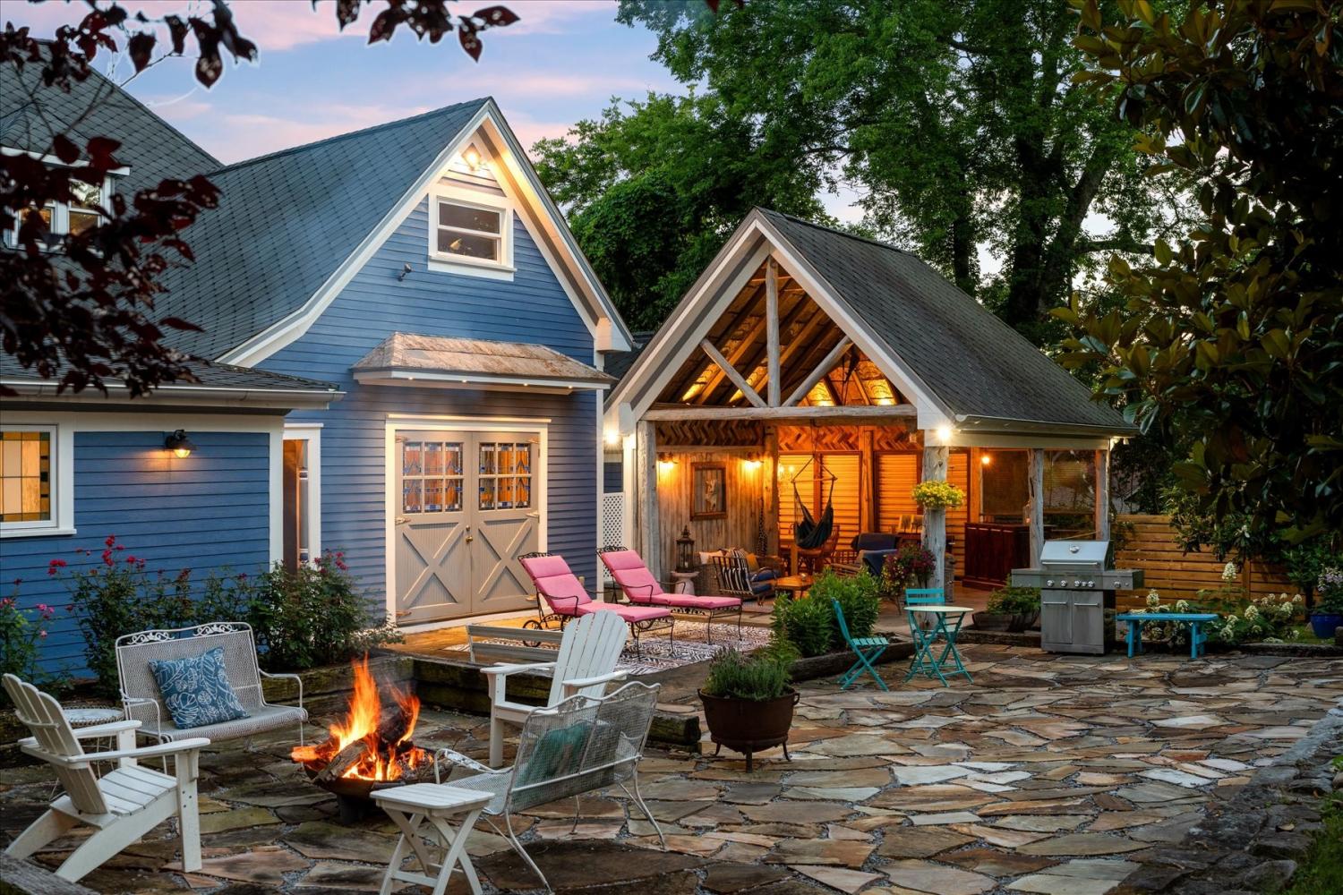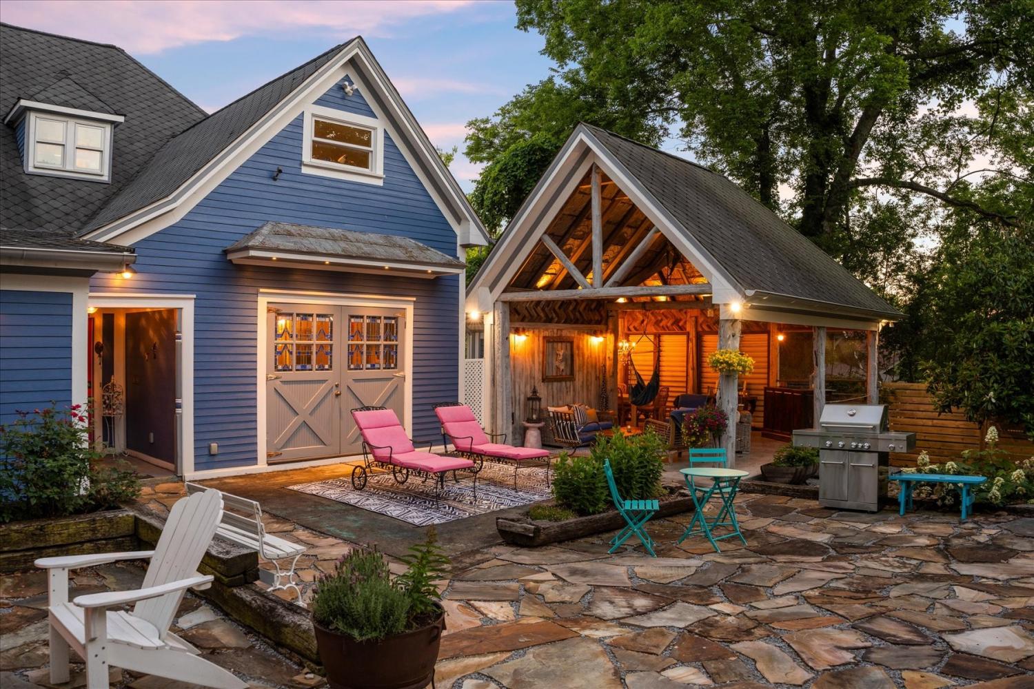 Historic Charm Meets Modern Luxury in the Heart of Wartrace Welcome to 207 Main St E, Wartrace, TN, a beautifully preserved 1908 historic home located in the charming Wartrace Historic District. This Main Street property blends timeless architectural character with thoughtful modern upgrades, offering a rare opportunity to own a piece of Tennessee history. An iron-gated entrance opens to a classic stone walkway leading to the inviting wraparound front porch, perfect for enjoying peaceful mornings or relaxing evenings in this walkable small-town setting. Inside, the home showcases soaring ceilings, crown molding, spacious rooms, and multiple original fireplaces that highlight its historic craftsmanship. The library features built-in bookcases and a restored wood-burning fireplace, creating a warm and inviting space for reading or gathering. The family room centers around an original oak-mantled fireplace, while the chef’s kitchen has been beautifully updated with a striking blue granite island, white quartz countertops, and premium KitchenAid appliances. A well-appointed butler’s pantry includes a wine cooler and dual Electrolux French-door refrigerator/freezer, making entertaining effortless. The formal dining room features French doors and stained glass accents that open to a secluded backyard retreat. The primary suite offers spa-like comfort with Italian glass vanities and a luxurious marble walk-in shower. Step outside to a private backyard sanctuary featuring a terrace crafted from reclaimed 18th-century cottage beams, Italian-style jacuzzi, fire pit, outdoor shower, and charming guest house—perfect for guests, a studio, or additional living space. Located in the picturesque town of Wartrace, known for its historic charm and Tennessee Walking Horse heritage, this property offers historic elegance, modern comfort, and exceptional character all in one.