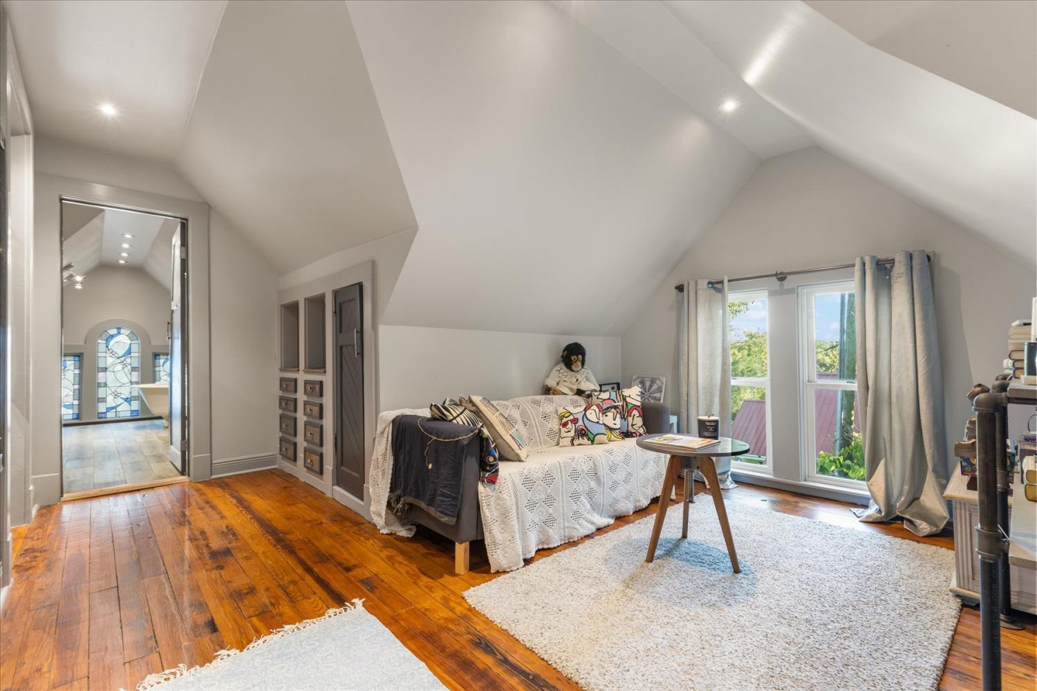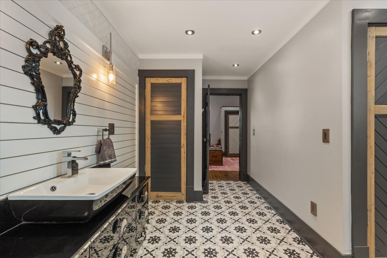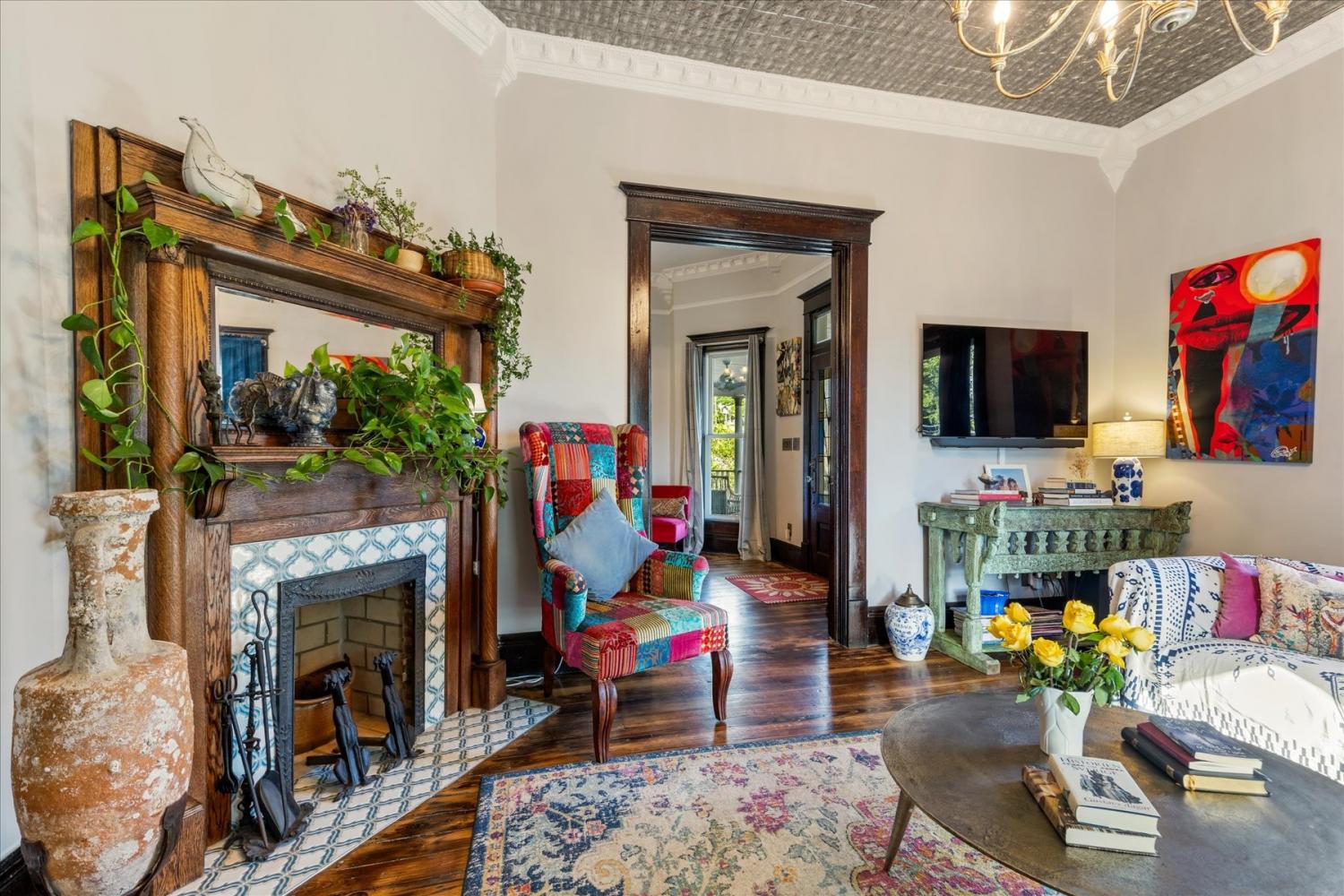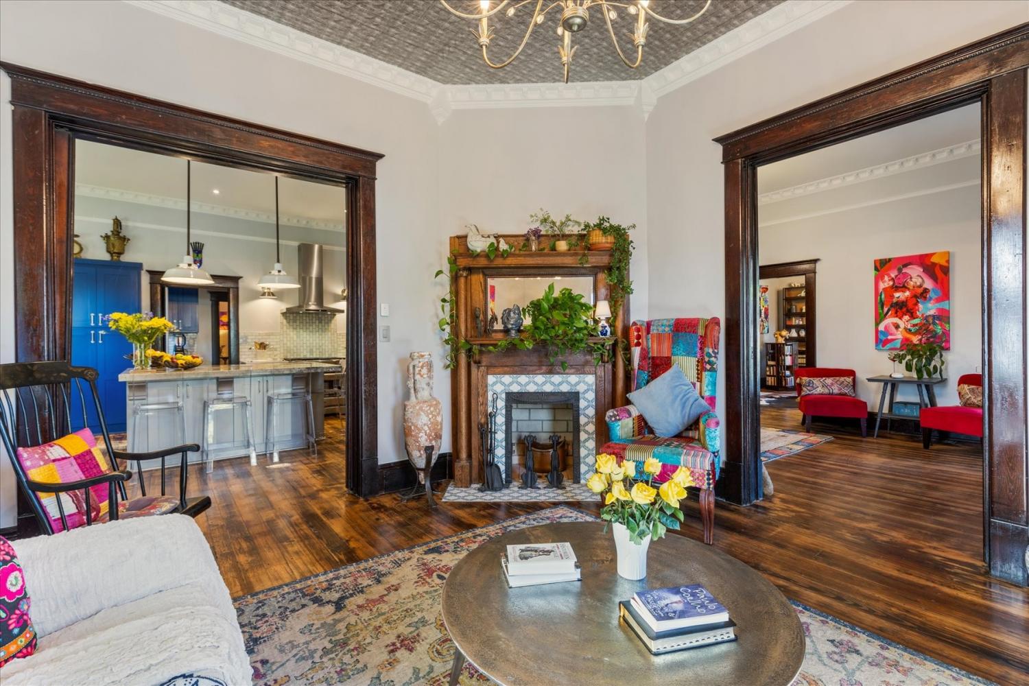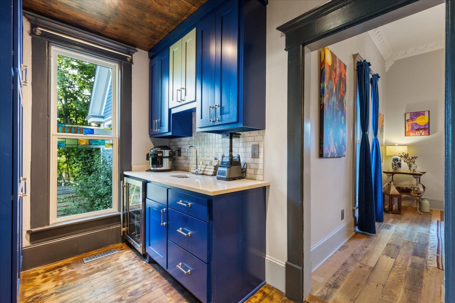 Historic Charm Meets Modern Luxury in the Heart of Wartrace Welcome to 207 Main St E, Wartrace, TN, a beautifully preserved 1908 historic home located in the charming Wartrace Historic District. This Main Street property blends timeless architectural character with thoughtful modern upgrades, offering a rare opportunity to own a piece of Tennessee history. An iron-gated entrance opens to a classic stone walkway leading to the inviting wraparound front porch, perfect for enjoying peaceful mornings or relaxing evenings in this walkable small-town setting. Inside, the home showcases soaring ceilings, crown molding, spacious rooms, and multiple original fireplaces that highlight its historic craftsmanship. The library features built-in bookcases and a restored wood-burning fireplace, creating a warm and inviting space for reading or gathering. The family room centers around an original oak-mantled fireplace, while the chef’s kitchen has been beautifully updated with a striking blue granite island, white quartz countertops, and premium KitchenAid appliances. A well-appointed butler’s pantry includes a wine cooler and dual Electrolux French-door refrigerator/freezer, making entertaining effortless. The formal dining room features French doors and stained glass accents that open to a secluded backyard retreat. The primary suite offers spa-like comfort with Italian glass vanities and a luxurious marble walk-in shower. Step outside to a private backyard sanctuary featuring a terrace crafted from reclaimed 18th-century cottage beams, Italian-style jacuzzi, fire pit, outdoor shower, and charming guest house—perfect for guests, a studio, or additional living space. Located in the picturesque town of Wartrace, known for its historic charm and Tennessee Walking Horse heritage, this property offers historic elegance, modern comfort, and exceptional character all in one.