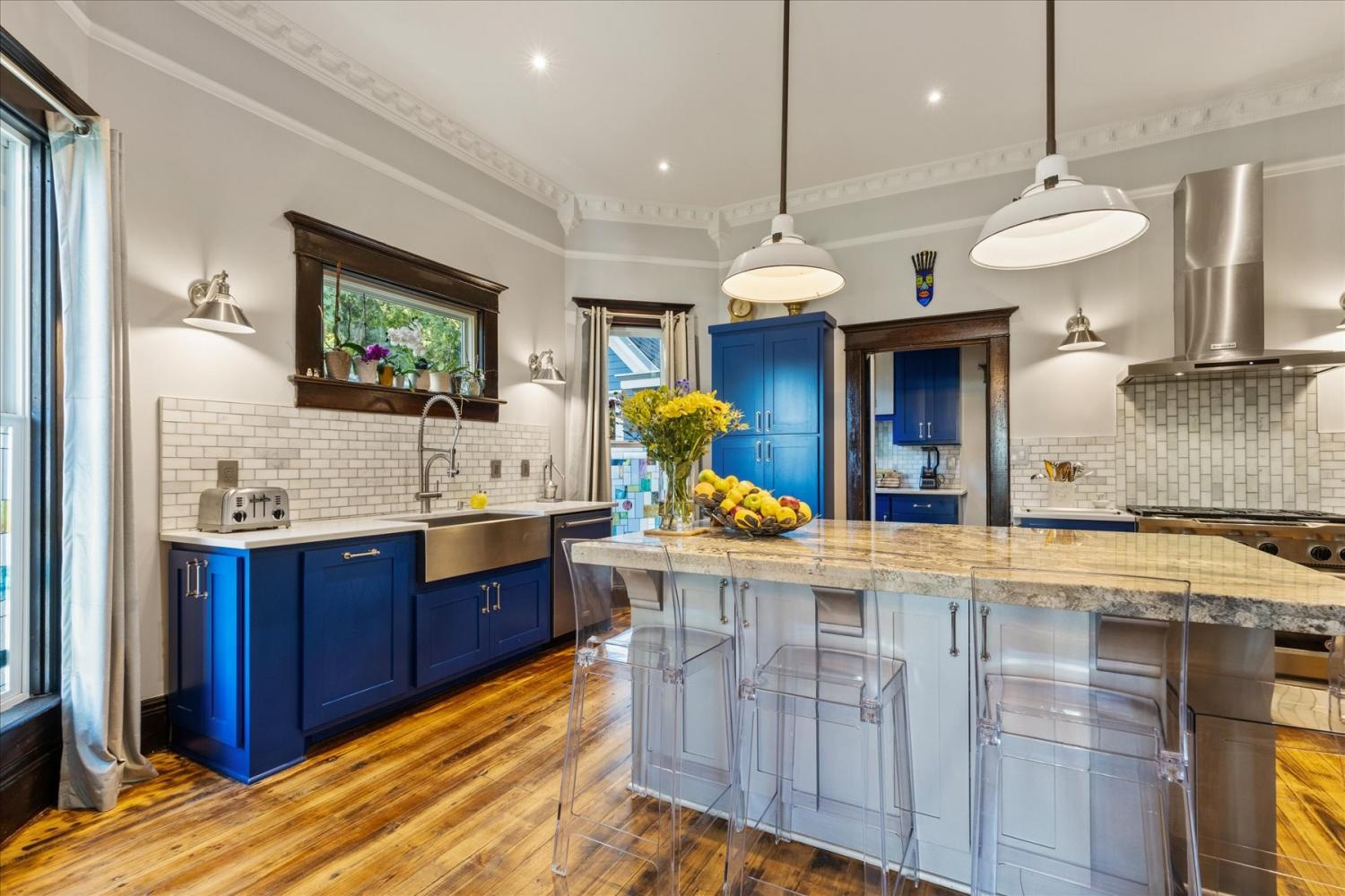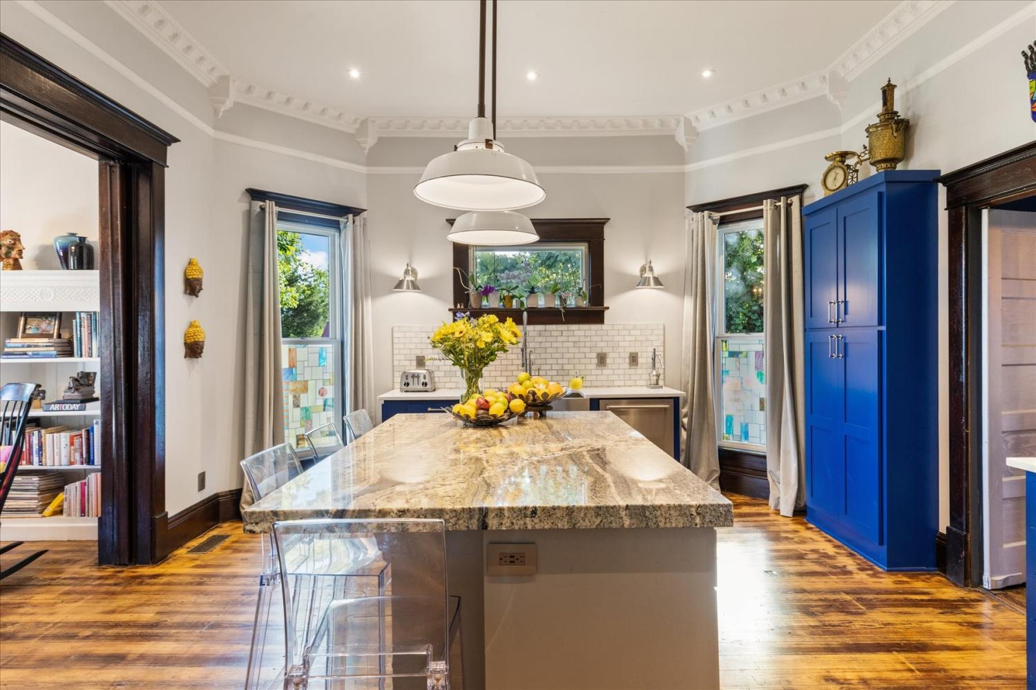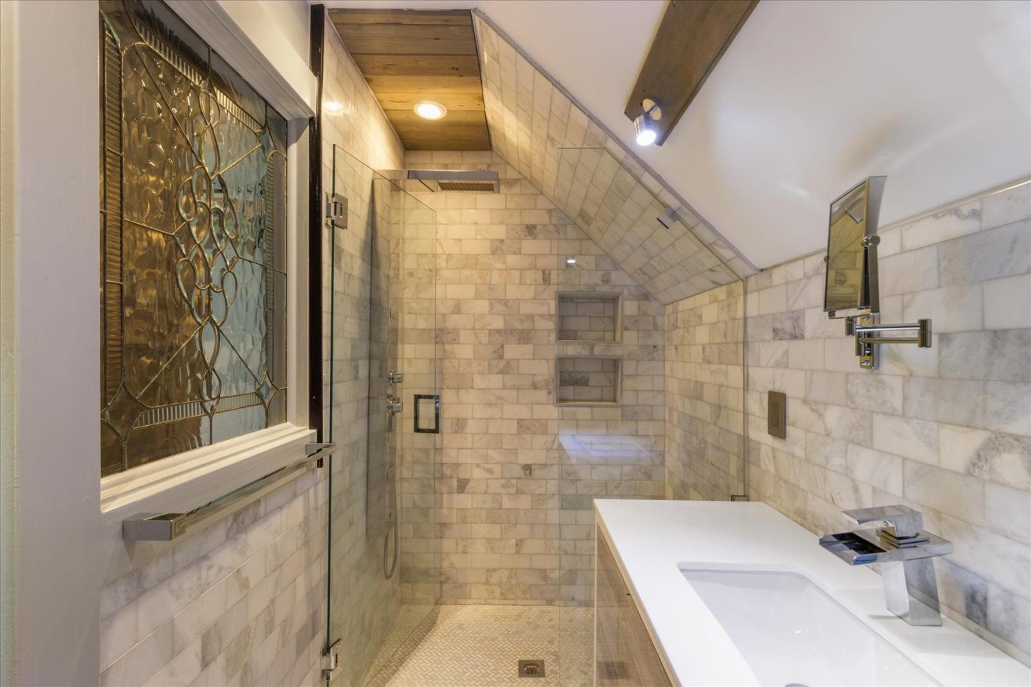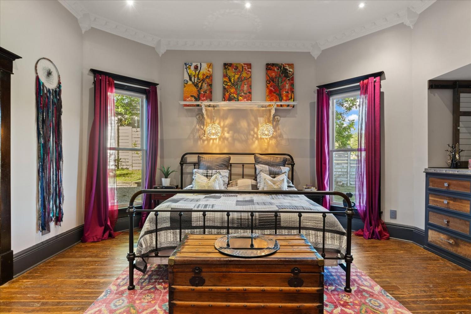 Historic Charm Meets Modern Luxury in the Heart of Wartrace Welcome to 207 Main St E, Wartrace, TN, a beautifully preserved 1908 historic home located in the charming Wartrace Historic District. This Main Street property blends timeless architectural character with thoughtful modern upgrades, offering a rare opportunity to own a piece of Tennessee history. An iron-gated entrance opens to a classic stone walkway leading to the inviting wraparound front porch, perfect for enjoying peaceful mornings or relaxing evenings in this walkable small-town setting. Inside, the home showcases soaring ceilings, crown molding, spacious rooms, and multiple original fireplaces that highlight its historic craftsmanship. The library features built-in bookcases and a restored wood-burning fireplace, creating a warm and inviting space for reading or gathering. The family room centers around an original oak-mantled fireplace, while the chef’s kitchen has been beautifully updated with a striking blue granite island, white quartz countertops, and premium KitchenAid appliances. A well-appointed butler’s pantry includes a wine cooler and dual Electrolux French-door refrigerator/freezer, making entertaining effortless. The formal dining room features French doors and stained glass accents that open to a secluded backyard retreat. The primary suite offers spa-like comfort with Italian glass vanities and a luxurious marble walk-in shower. Step outside to a private backyard sanctuary featuring a terrace crafted from reclaimed 18th-century cottage beams, Italian-style jacuzzi, fire pit, outdoor shower, and charming guest house—perfect for guests, a studio, or additional living space. Located in the picturesque town of Wartrace, known for its historic charm and Tennessee Walking Horse heritage, this property offers historic elegance, modern comfort, and exceptional character all in one.
