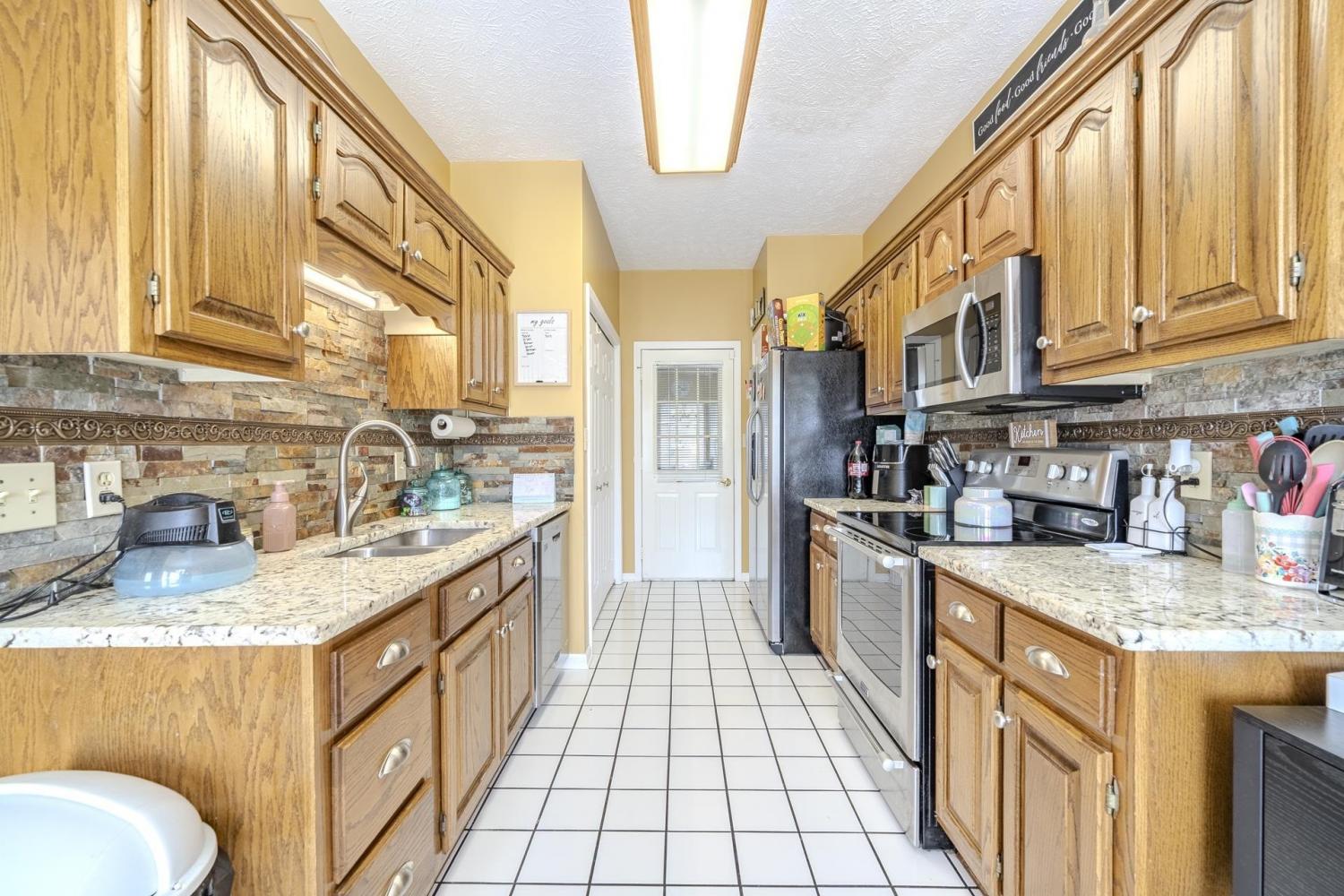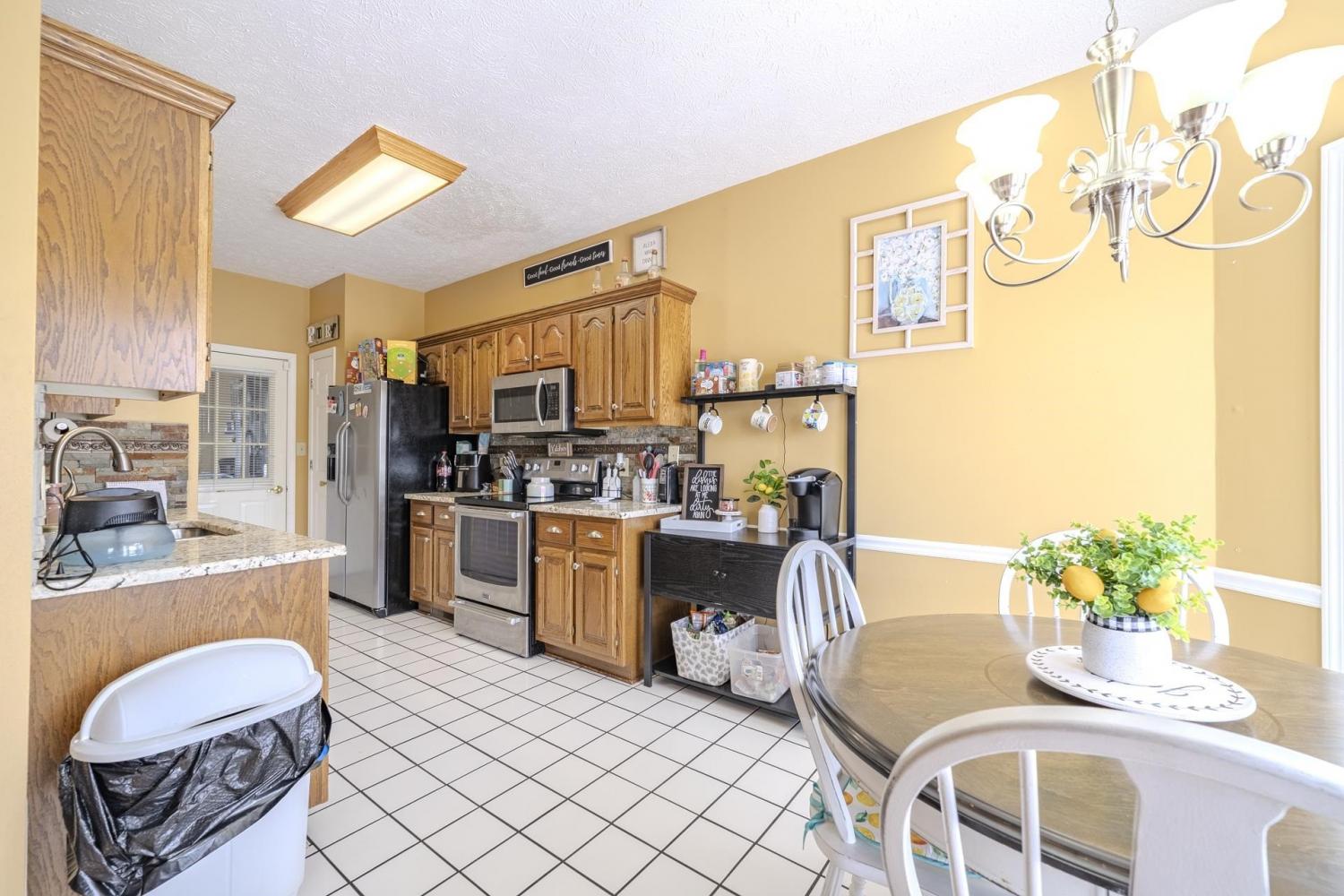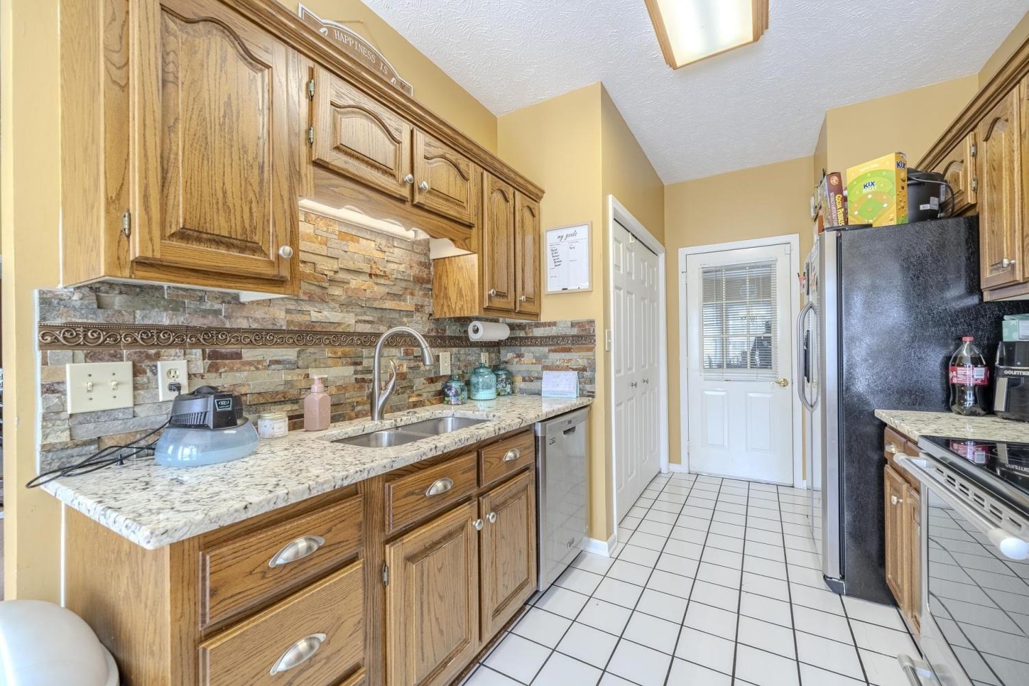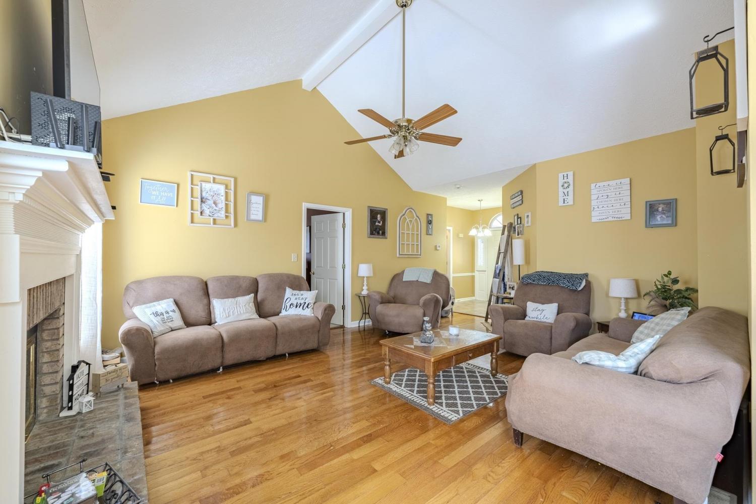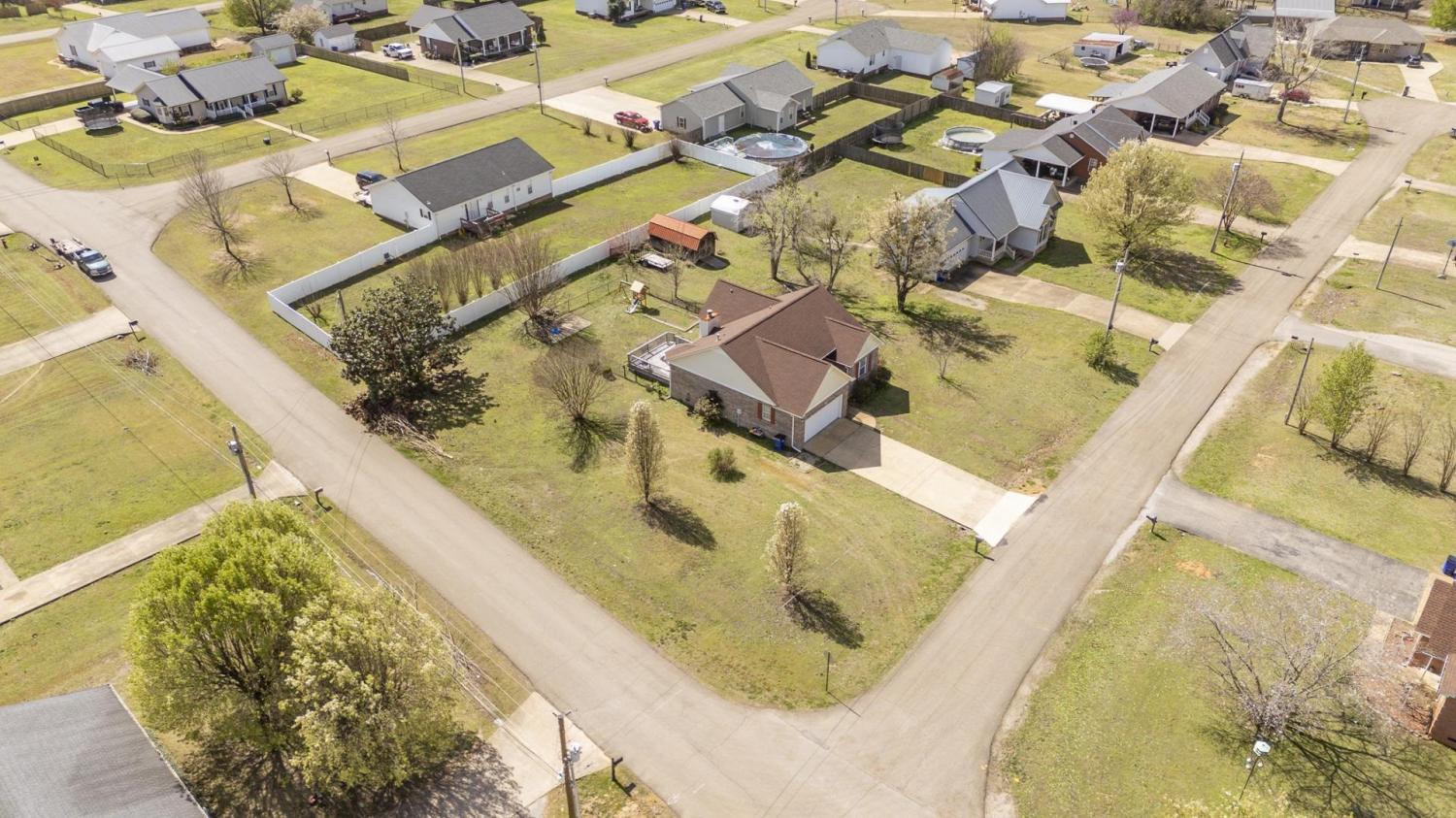 Charming brick home situated on a spacious 0.47-acre corner lot in a great neighborhood just minutes from town. This 3 bedroom, 2 bathroom home offers approximately 1,258 square feet with a comfortable and functional layout. The living room features vaulted ceilings and a cozy fireplace, creating a bright and inviting space to relax or entertain. The kitchen includes granite countertops and stainless steel appliances, blending style and convenience. The primary bedroom (15x11) offers a large bathroom with double sinks. Hardwood and tile flooring run through the main living areas, with carpet in the bedrooms for added comfort. Step outside to the back deck overlooking the yard, perfect for enjoying the outdoors, along with a storage shed for additional storage. A great opportunity to own a well-kept home in a desirable location close to town.