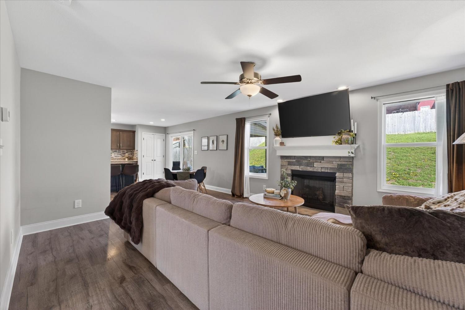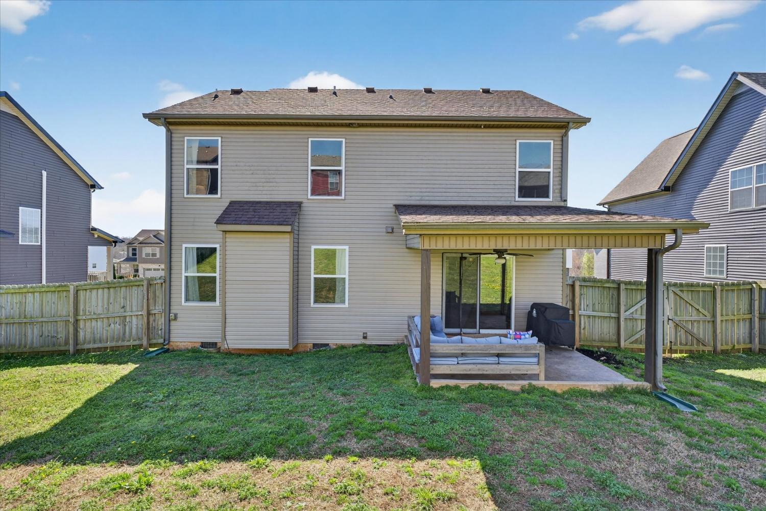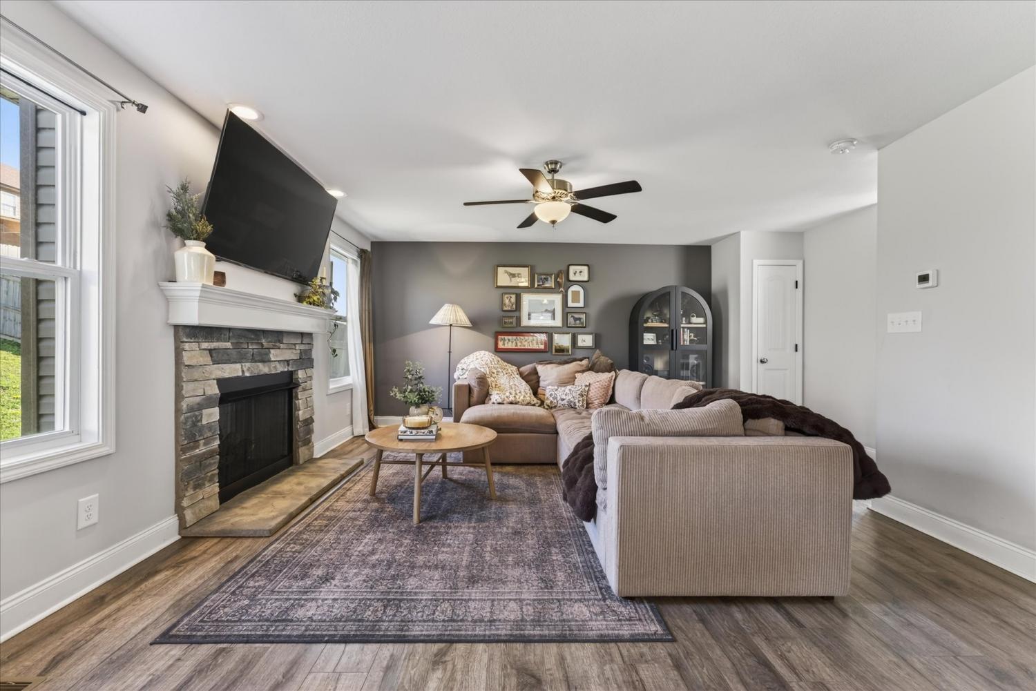 Welcome to this well-maintained, one-owner home in a highly desirable Clarksville neighborhood with sidewalks and no HOA. Offering 1,869 square feet, this 3-bedroom, 2.5-bath home also features an enormous bonus room above the garage - perfect as a fourth bedroom, media room, office, or playroom. Inside, you'll find a bright open layout ideal for everyday living and entertaining. The living space is highlighted by a stylish accent wall and flows seamlessly into the dining area and kitchen. The kitchen features stainless steel appliances and a center island that provides extra counter space and storage, making meal prep and entertaining easy. The home has thoughtfully upgraded white bathroom cabinetry and the primary suite features hardwood flooring, double vanities, a soaking tub and a separate shower for a spa-like feel. Upstairs, all bedrooms are generously sized along with a conveniently located laundry room, making everyday living easier. The professionally cleaned carpet throughout the home makes it truly move-in ready. One of the bedrooms showcases unique wallpaper, adding personality and charm. Step outside to enjoy the fully fenced backyard, offering plenty of space for pets, play, or outdoor gatherings. Located just minutes from Fort Campbell, shopping, restaurants and schools. Homes in this neighborhood are highly sought after for their convenience and community feel. Priced at $324,900, this home offers incredible space, location and value - don’t miss your chance to make it yours.