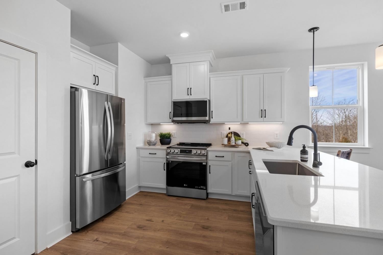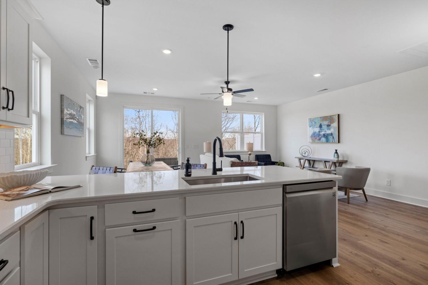 FINAL PHASE! END UNIT NEAR CUL-DE-SAC — Gatlinburg-style views just 20 minutes from West End Ave! Welcome to Ridgecrest at Riverwalk, a stunning new construction community perched on a scenic ridge overlooking the Harpeth River. These luxury townhomes feature an expansive owner’s suite with a large walk-in closet and oversized tile shower, a beautiful kitchen with quartz countertops, soft-close dovetail cabinetry made in Tennessee, and plenty of counter space overlooking the open living and dining areas. Enjoy beautiful hard-surface flooring, natural light throughout, and an attached painted and insulated garage. Flexible floor plan offers space for a home office or reading nook. Community amenities include three pools, walking trails, playground, and access to the Harpeth River greenway. Ridgecrest at Riverwalk combines elevated design, scenic beauty, and convenience—just minutes to shopping, restaurants, and parks in Bellevue. Come experience the best new townhomes Bellevue has to offer!