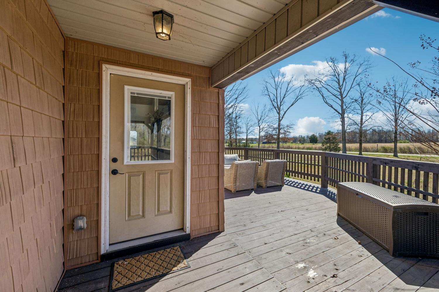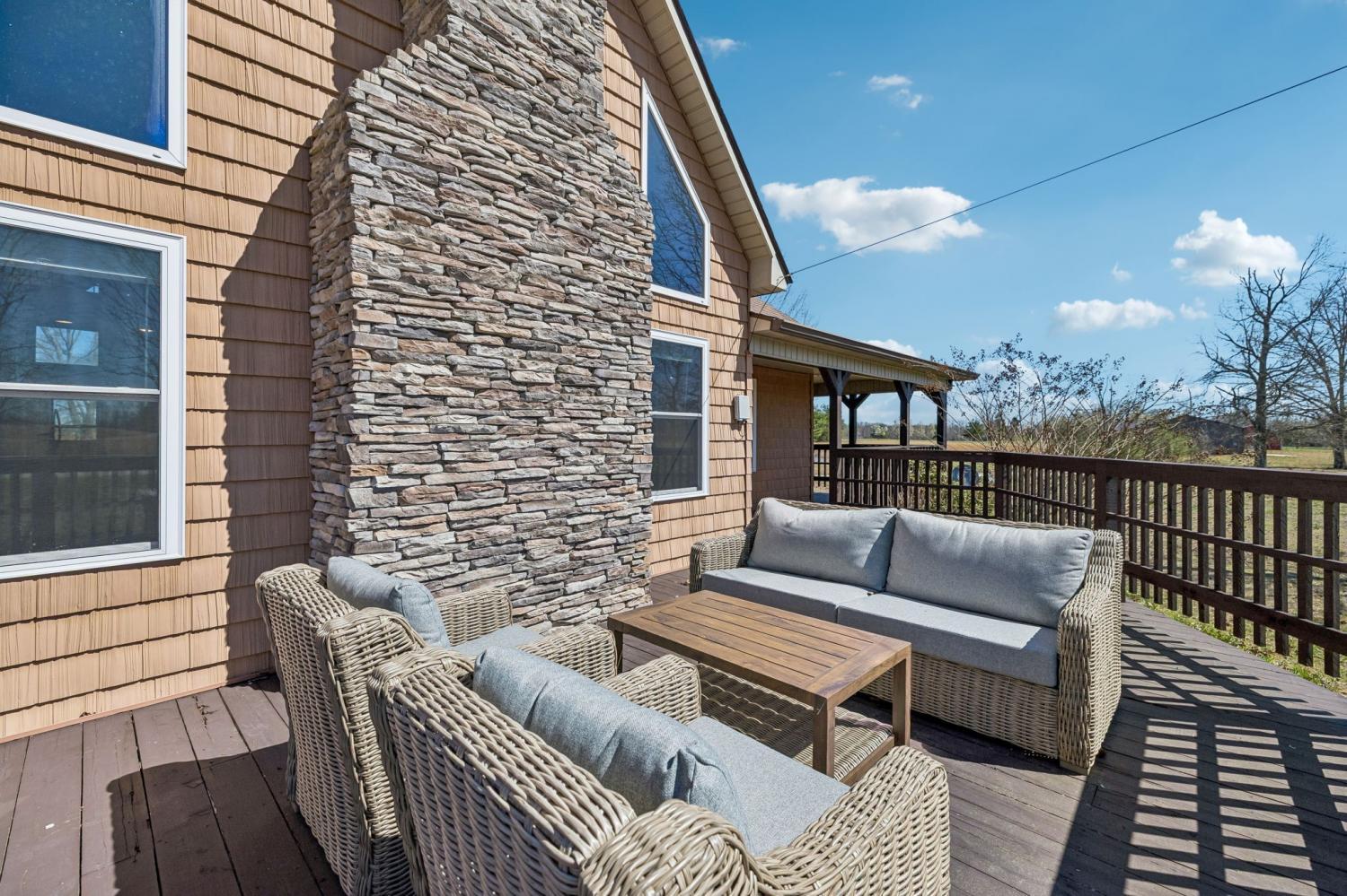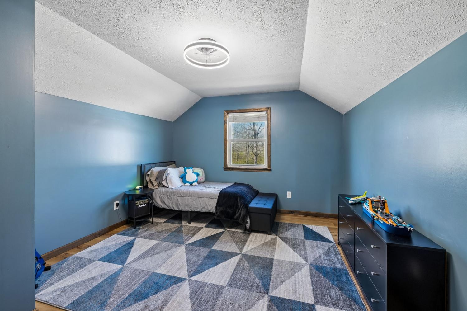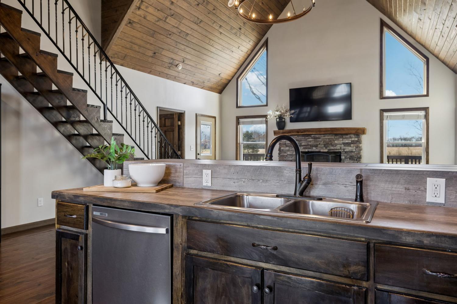 Private retreat with a stocked pond, creek, wraparound porch, and multiple workshop buildings in the desirable High Forest area. This sun filled home offers soaring ceilings and expansive windows that create a bright, open living space with peaceful views of the surrounding trees and countryside. The layout blends comfort and flexibility with four bedrooms and multiple indoor and outdoor gathering spaces. The main level features two bedrooms, including a spacious primary suite with soaking tub, separate shower, and double vanities. A second bedroom with its own en suite bath provides an ideal guest suite or second primary option. Two additional bedrooms upstairs offer great space for family, guests, or home office needs. Outdoor living is a highlight of the property. The large wraparound porch is mostly covered for year round enjoyment, with a portion open for sun and fresh air. A separate deck provides a perfect setting for outdoor dining, entertaining, or relaxing evenings overlooking the property. Nature lovers will appreciate the private stocked pond that belongs entirely to the property, complete with a bench for fishing or enjoying the quiet setting. A creek runs through the land, adding to the scenic beauty and peaceful atmosphere. The property also includes two detached shops, providing exceptional space for hobbies, storage, or business use. A 24 by 30 red garage and a 40 by 40 gray shop with a 16 foot lean to feature 220 volt electric and a two post lift. Inside you will find beautiful wood flooring, custom wainscoting, additional cabinetry, and a built in coffee bar that adds both charm and functionality. Blackberry bushes and open outdoor space complete the setting, offering a wonderful opportunity to enjoy the best of Tennessee countryside living.