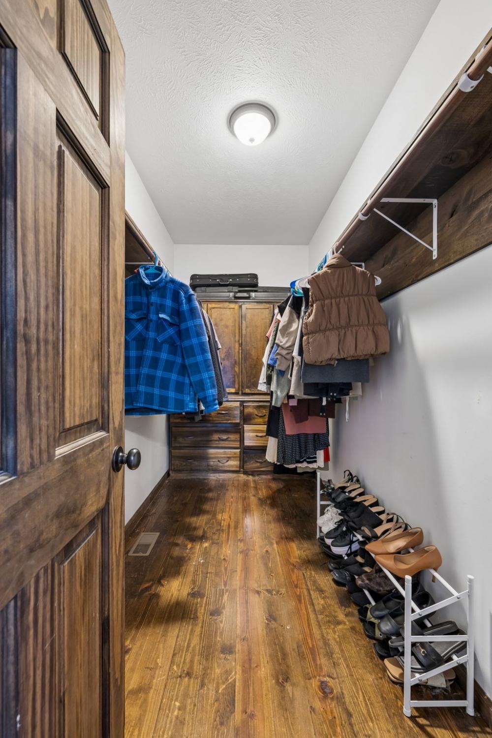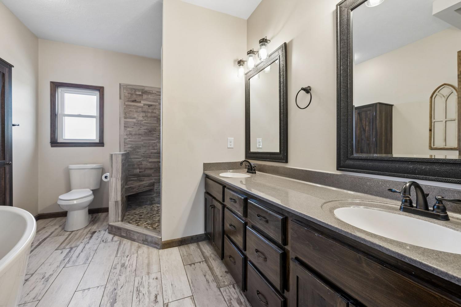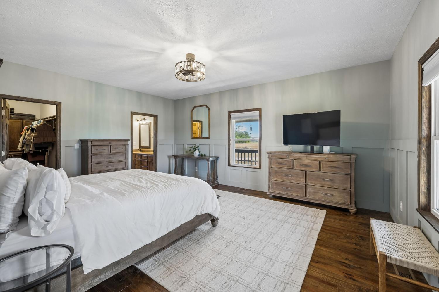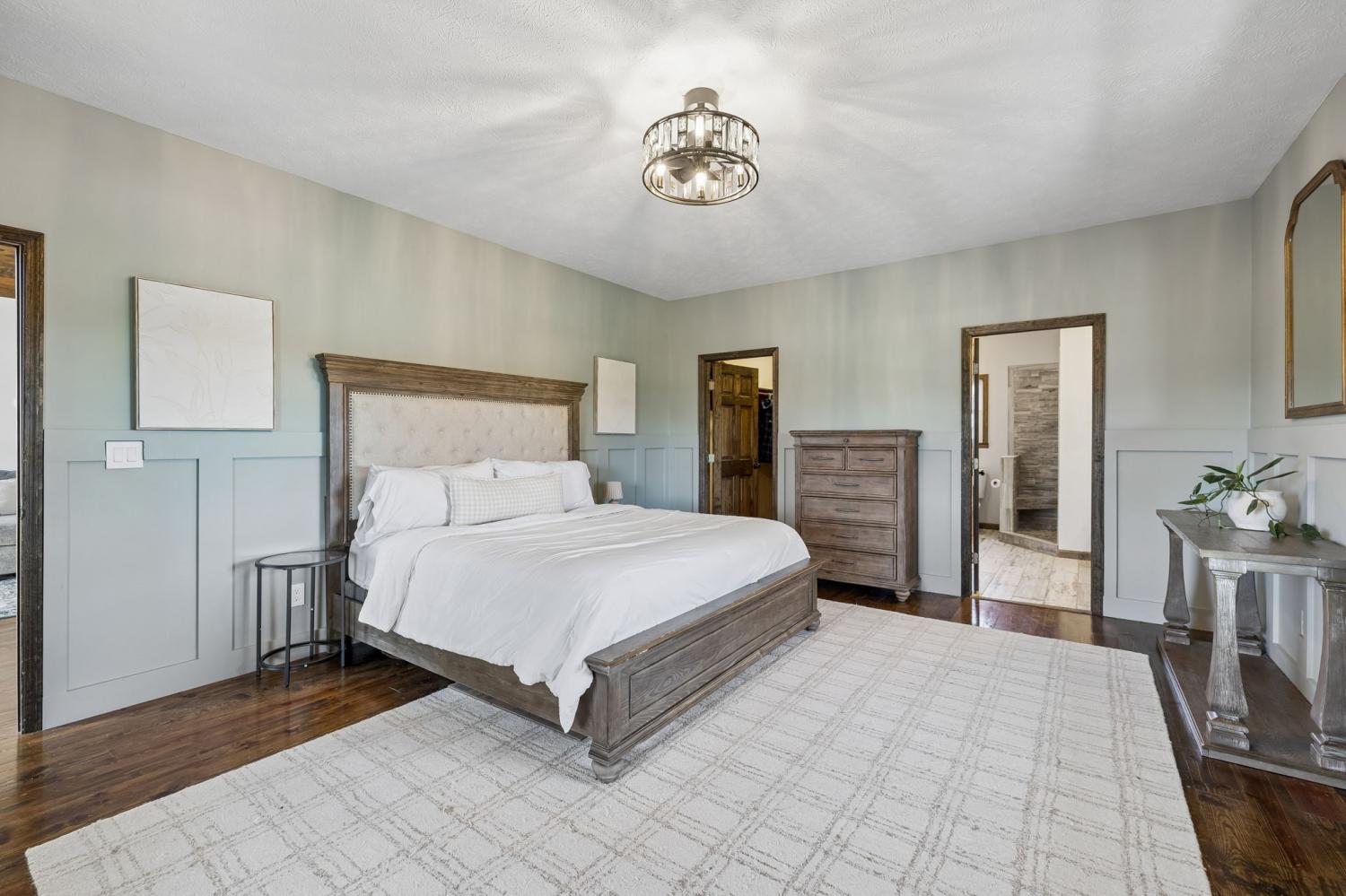 Private retreat with a stocked pond, creek, wraparound porch, and multiple workshop buildings in the desirable High Forest area. This sun filled home offers soaring ceilings and expansive windows that create a bright, open living space with peaceful views of the surrounding trees and countryside. The layout blends comfort and flexibility with four bedrooms and multiple indoor and outdoor gathering spaces. The main level features two bedrooms, including a spacious primary suite with soaking tub, separate shower, and double vanities. A second bedroom with its own en suite bath provides an ideal guest suite or second primary option. Two additional bedrooms upstairs offer great space for family, guests, or home office needs. Outdoor living is a highlight of the property. The large wraparound porch is mostly covered for year round enjoyment, with a portion open for sun and fresh air. A separate deck provides a perfect setting for outdoor dining, entertaining, or relaxing evenings overlooking the property. Nature lovers will appreciate the private stocked pond that belongs entirely to the property, complete with a bench for fishing or enjoying the quiet setting. A creek runs through the land, adding to the scenic beauty and peaceful atmosphere. The property also includes two detached shops, providing exceptional space for hobbies, storage, or business use. A 24 by 30 red garage and a 40 by 40 gray shop with a 16 foot lean to feature 220 volt electric and a two post lift. Inside you will find beautiful wood flooring, custom wainscoting, additional cabinetry, and a built in coffee bar that adds both charm and functionality. Blackberry bushes and open outdoor space complete the setting, offering a wonderful opportunity to enjoy the best of Tennessee countryside living.