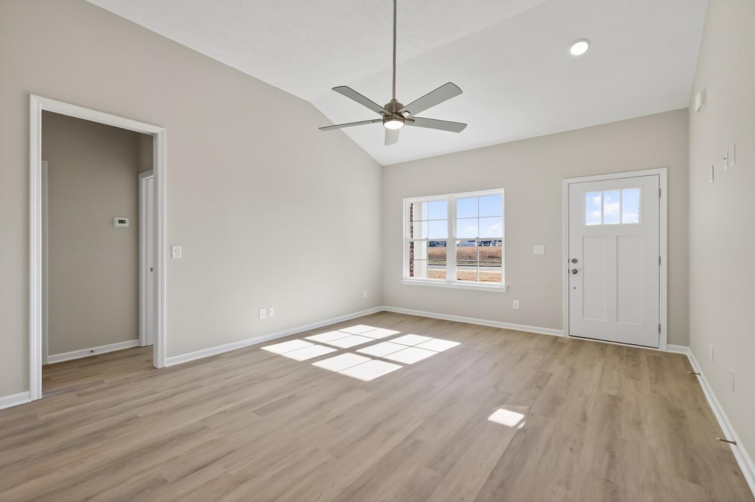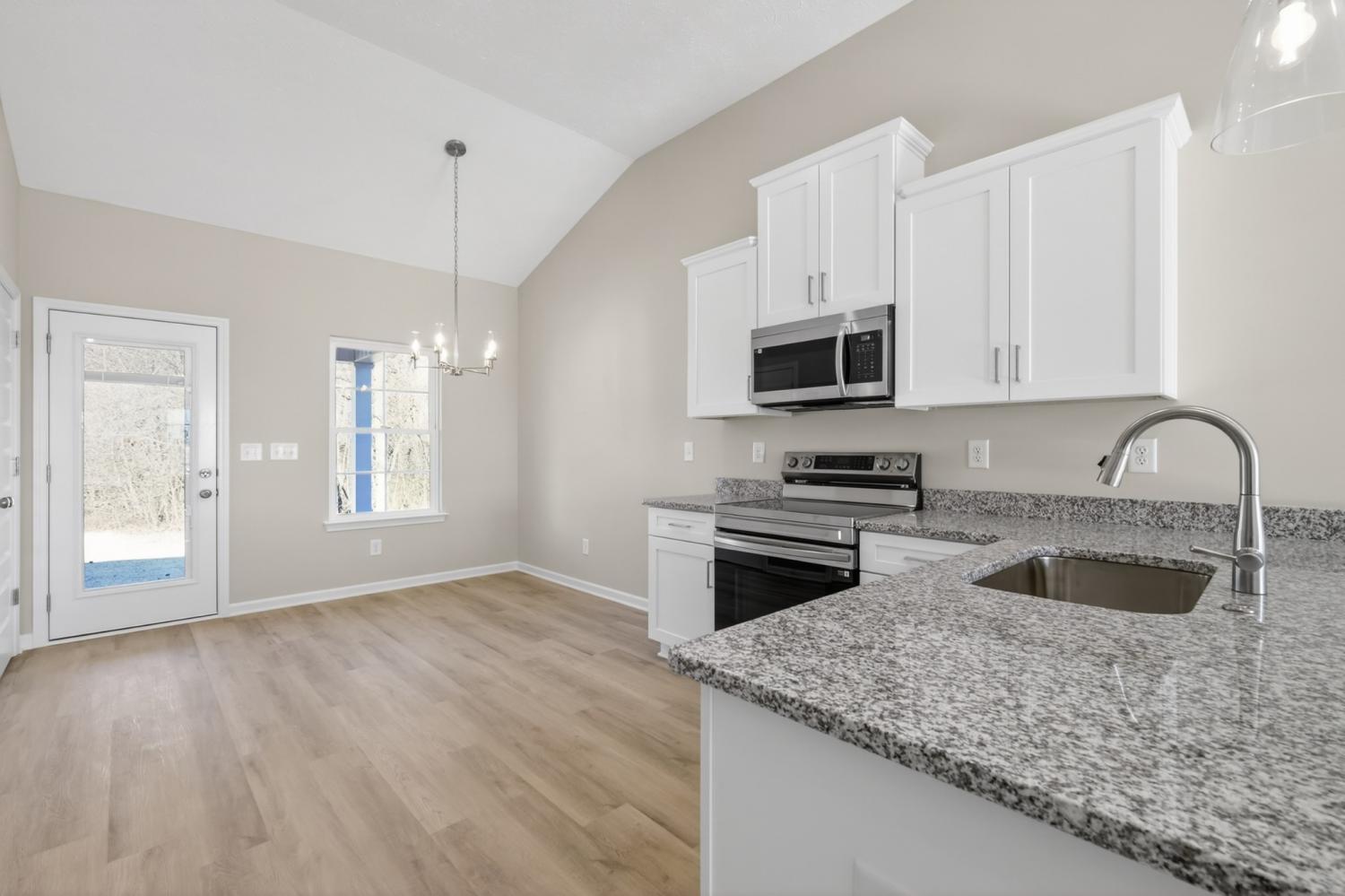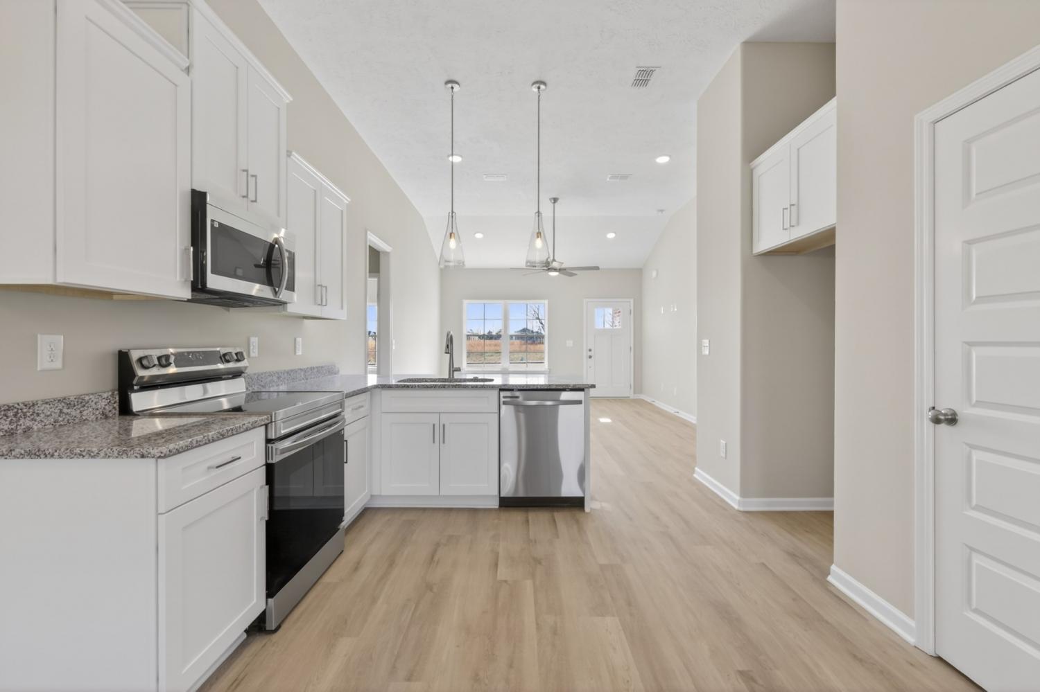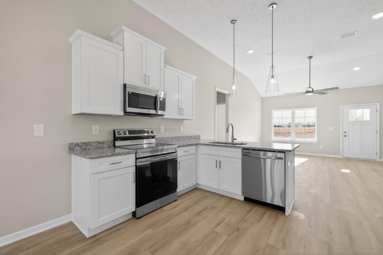 Builder Incentive: **APRIL SPECIAL** Builder offering a 5 year arm FHA (4.375%) while rates apply OR rates as low as 4.99% OR the builder will cover ALL closing costs with use of the preferred lender and title company! The Harrison Plan – This beautiful ranch-style home offers 3 bedrooms, 2 bathrooms, and a modern, efficient layout. The kitchen features granite countertops and stainless steel appliances (refrigerator not included). The 1-car garage includes epoxy floors, adding durability and a polished finish, while a tankless water heater provides on-demand hot water and energy efficiency. The exterior showcases a fully sodded and landscaped front yard, giving the home immediate curb appeal.